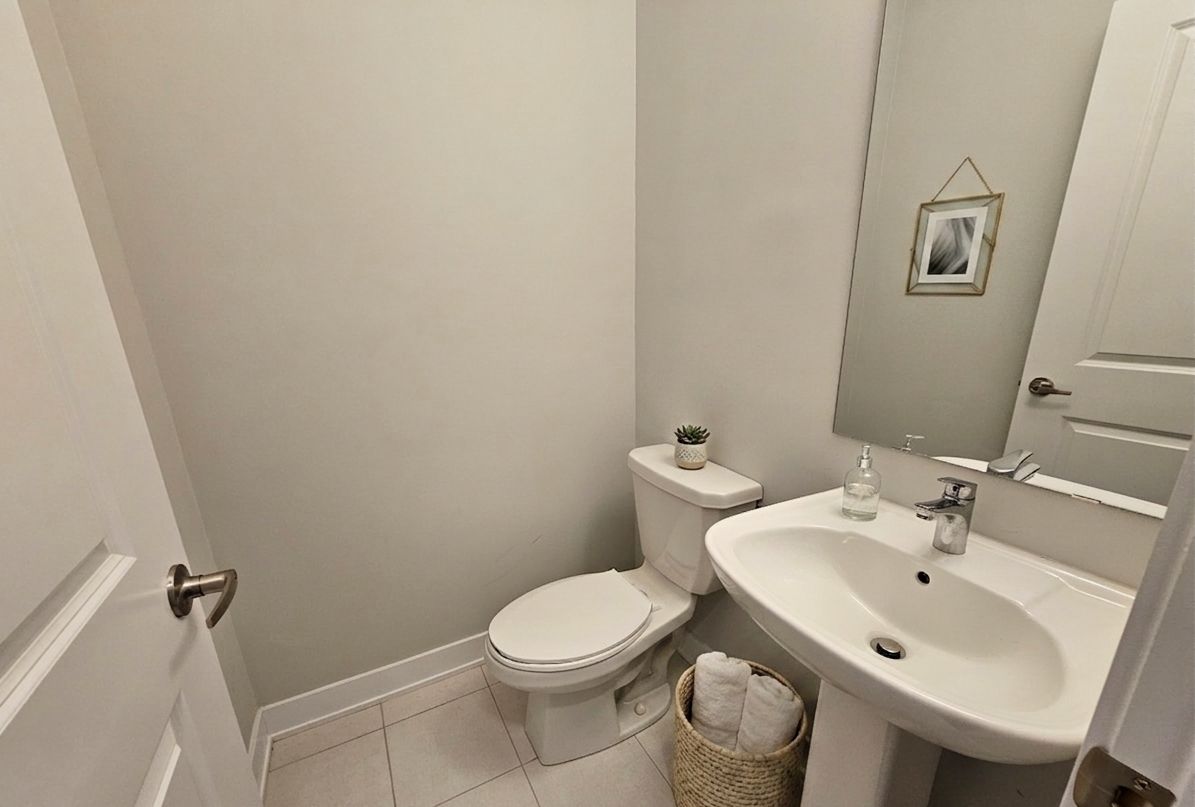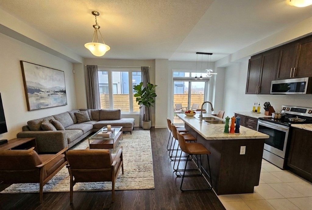 Freehold townhouse in north oshawa! Welcome to this stunning 2011 sqft freehold townhouse nestled in the heart of north oshawa's fastest-growing neighborhood adjacent to tranquil green space and designed with the modern family in mind. This 3-bedroom, 3-bathroom home offers an elegant open-concept layout, featuring a spacious foyer with high ceilings, setting the stage for the beauty within. The main floor boasts hardwood flooring and a smooth 9-ft ceiling, enhancing the home's modern appeal. The primary bedroom is complete with his-and-her closets and a 4-piece ensuite. Two additional spacious bedrooms and a full bath complete the upper level. The finished basement adds versatile living space with a large recreation room and a dedicated storage area. Laundry conveniently located on the main floor. This exceptional townhouse is your opportunity to join an exciting community with all the amenities you need at your doorstep. Next to hwy 407 & minutes from durham college. Close to all amenities, shopping, restaurants, schools, parks, trails, major highways & much more. This is freehold property, no maintenance or potl fee.