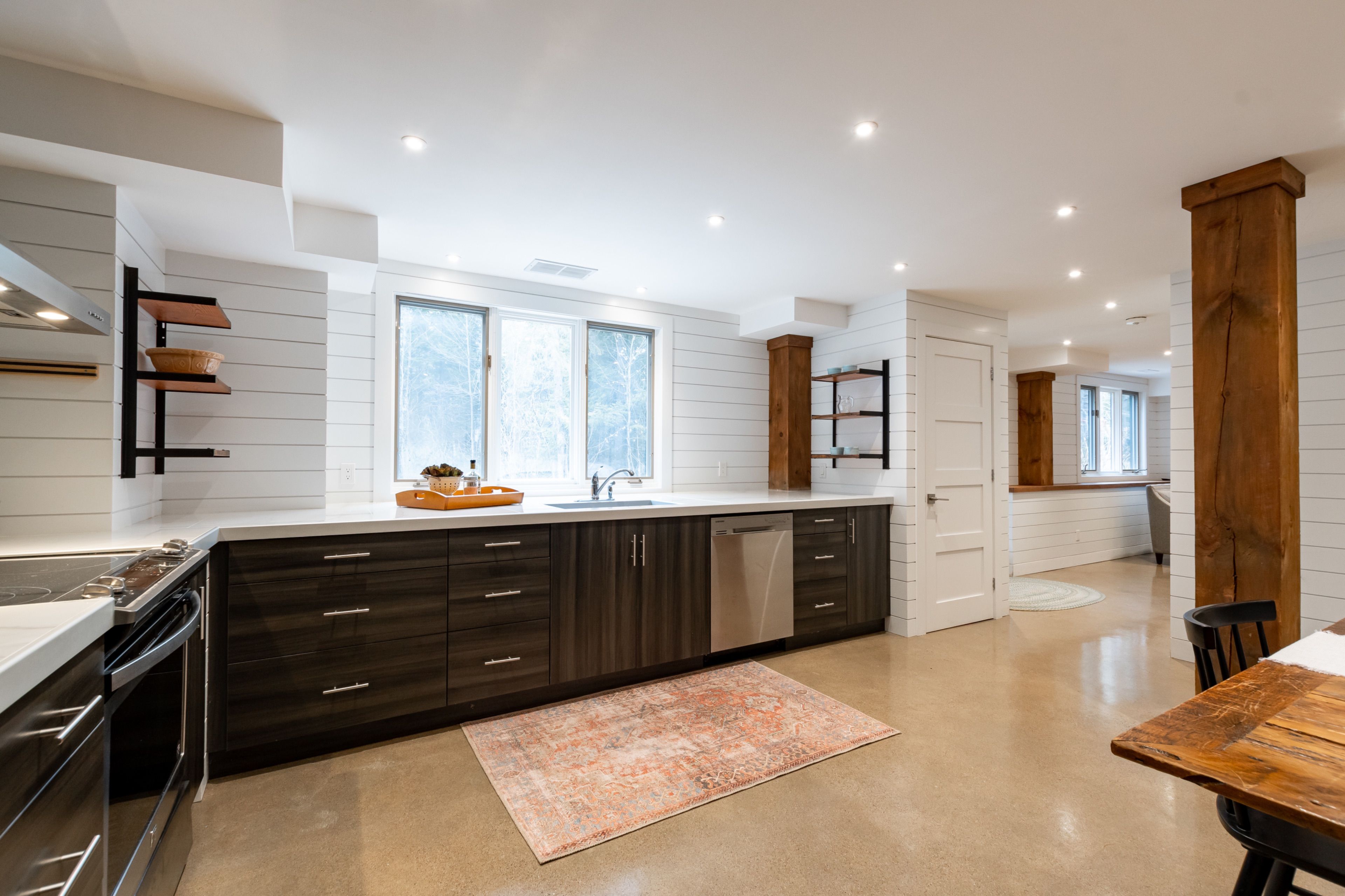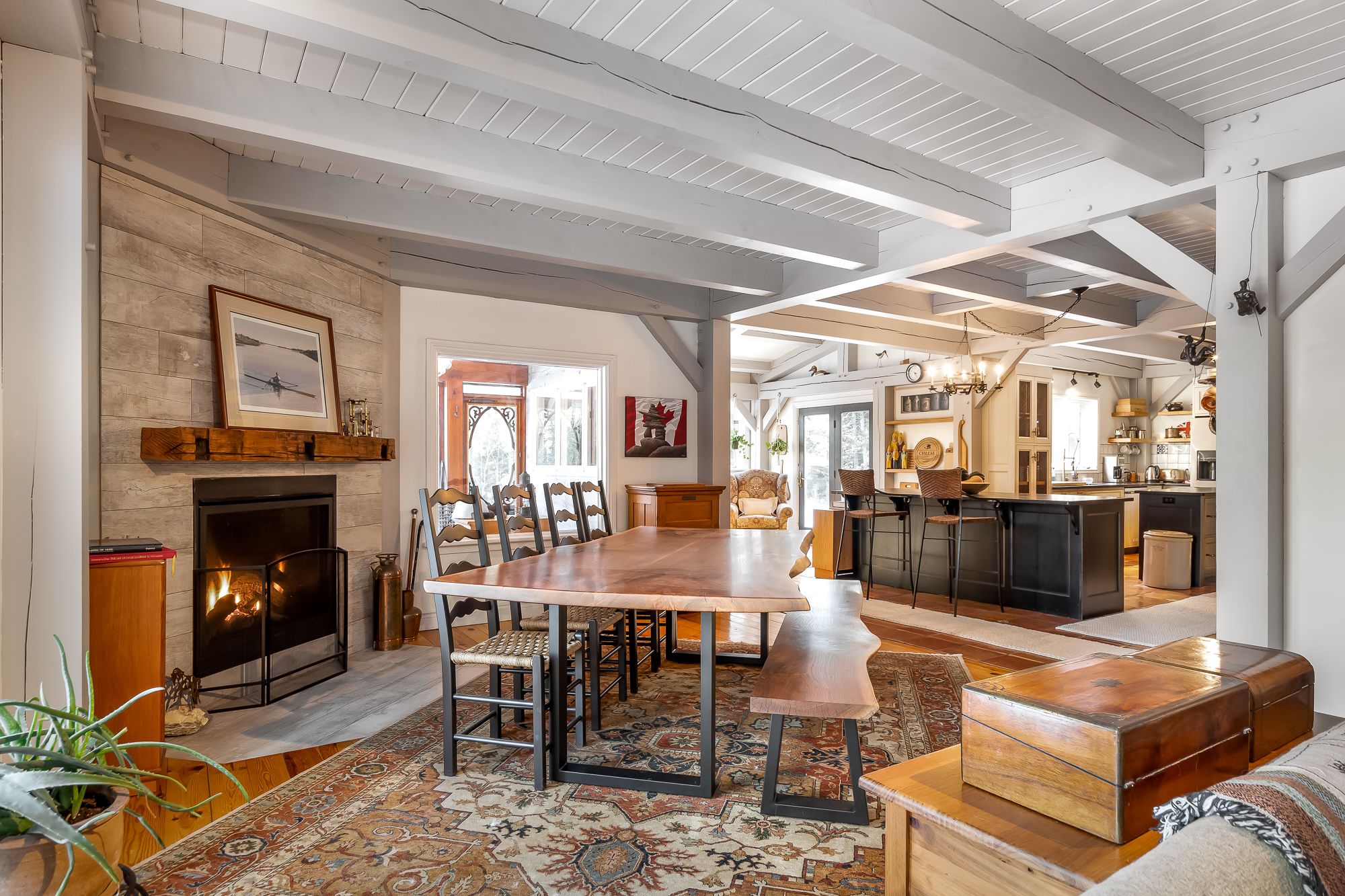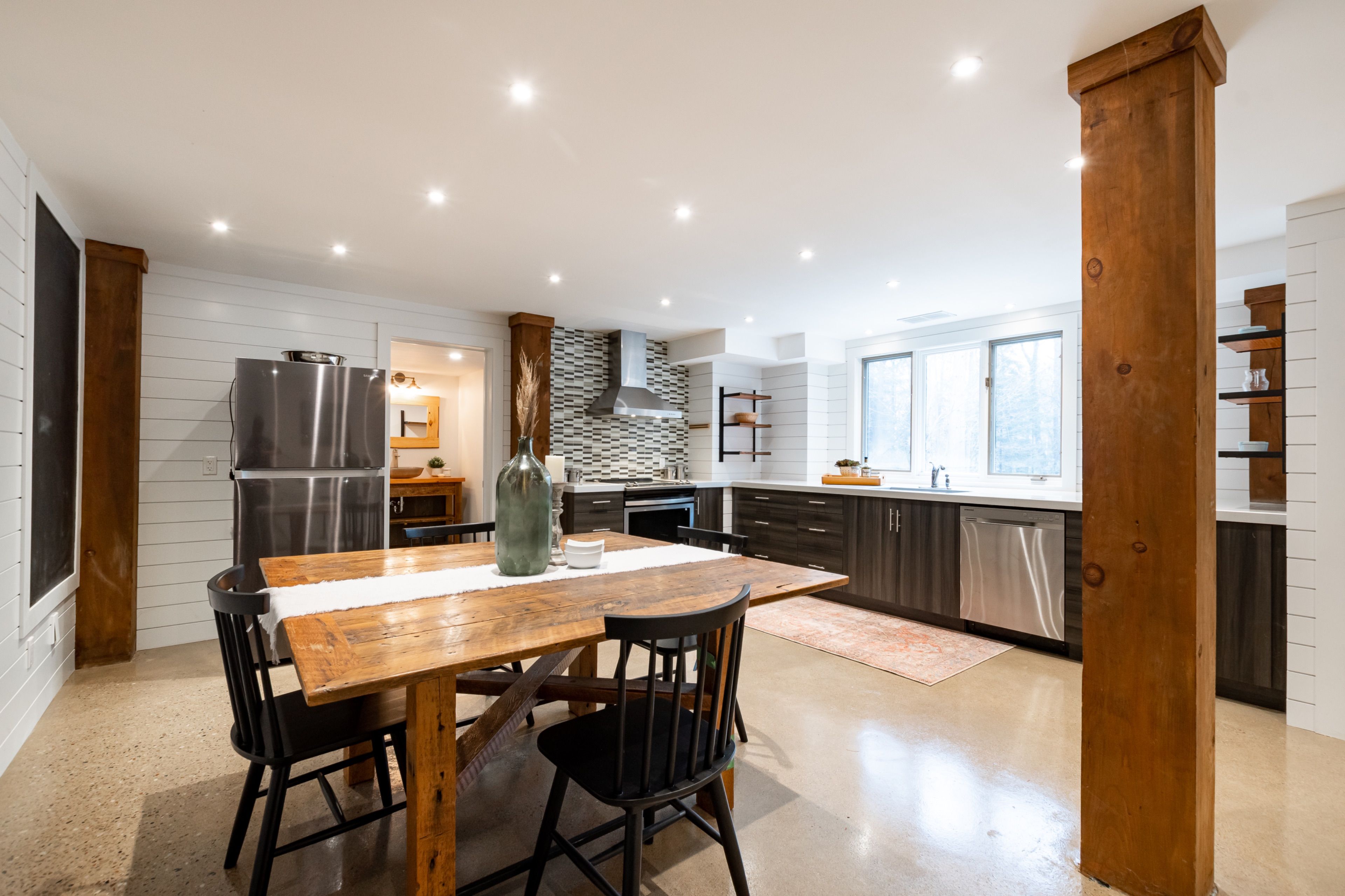 Ultimate privacy awaits! The driveway winds through the trees, revealing a home set on 5+ acres of mixed woods & beaver meadow, abutting a year-round creek that adds a gentle soundtrack to daily life. Though the pace of town feels far away, huntsville's hospital & everyday essentials are just 10 minutes down the road. Expansive windows throughout the house draw your eye outward, framing shifting light & the forest edge. The main floor centres around a kitchen built for people who cook, & for those who love to gather around them. Two oversized islands, dual stoves, & abundant storage make the kitchen equally practical & social, complemented by a pantry & a convenient 2-pc bath just off the space. Meals flow naturally into the bright dining area or the screened muskoka room, where the sounds of nature accompany quiet mornings or late-night conversations. A cozy reading nook sits off the kitchen, while beyond the dining area, an additional living space offers room to relax. The primary suite, also on the main floor, features a 3-pc ensuite with a glass walk-in shower & built-in bench. Upstairs, 2 guest bedrooms each bring their own appeal: one with a heated-floor ensuite, the other steps from a 4-pc bath with a deep soaker tub. Laundry on this level adds everyday convenience. The lower level houses an in-law suite, complete with a full eat-in kitchen, cozy living room with electric fireplace, bedroom, & 3-pc bath, ideal for extended family or guests. A spacious storage room keeps seasonal essentials organized & out of sight. Practical features include a forced-air propane furnace, central air, drilled well, septic, wired-in generator, & curbside waste collection. For water enthusiasts, the big east river is a short walk away for paddling or fishing, & a public boat launch on harp lake is just 2 minutes by car. This property blends quiet moments, nature's rhythm, & the comfort of nearby amenities, offering effortless muskoka living in an exceptionally private setting.