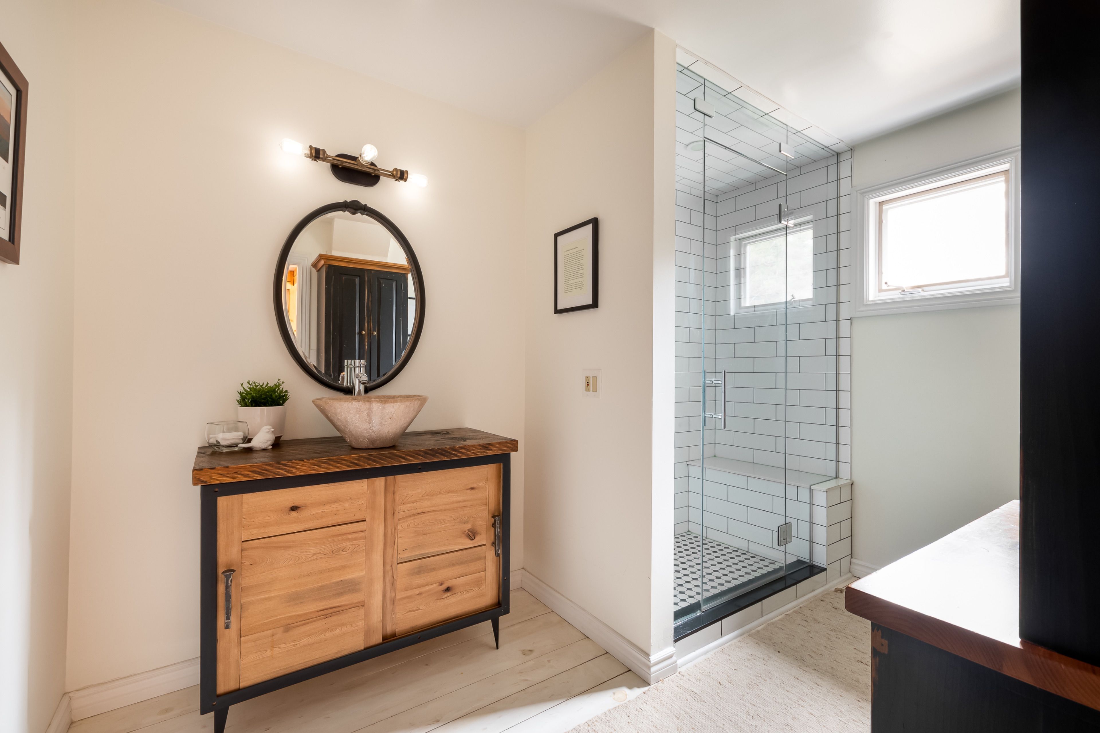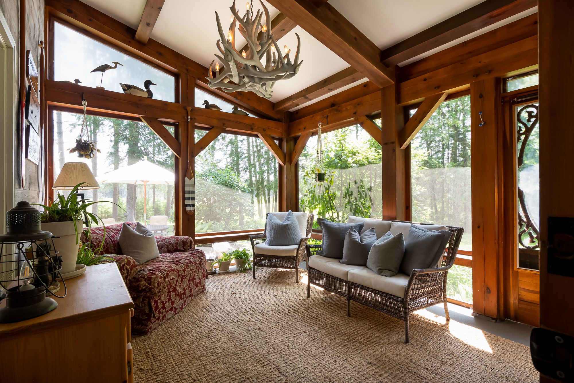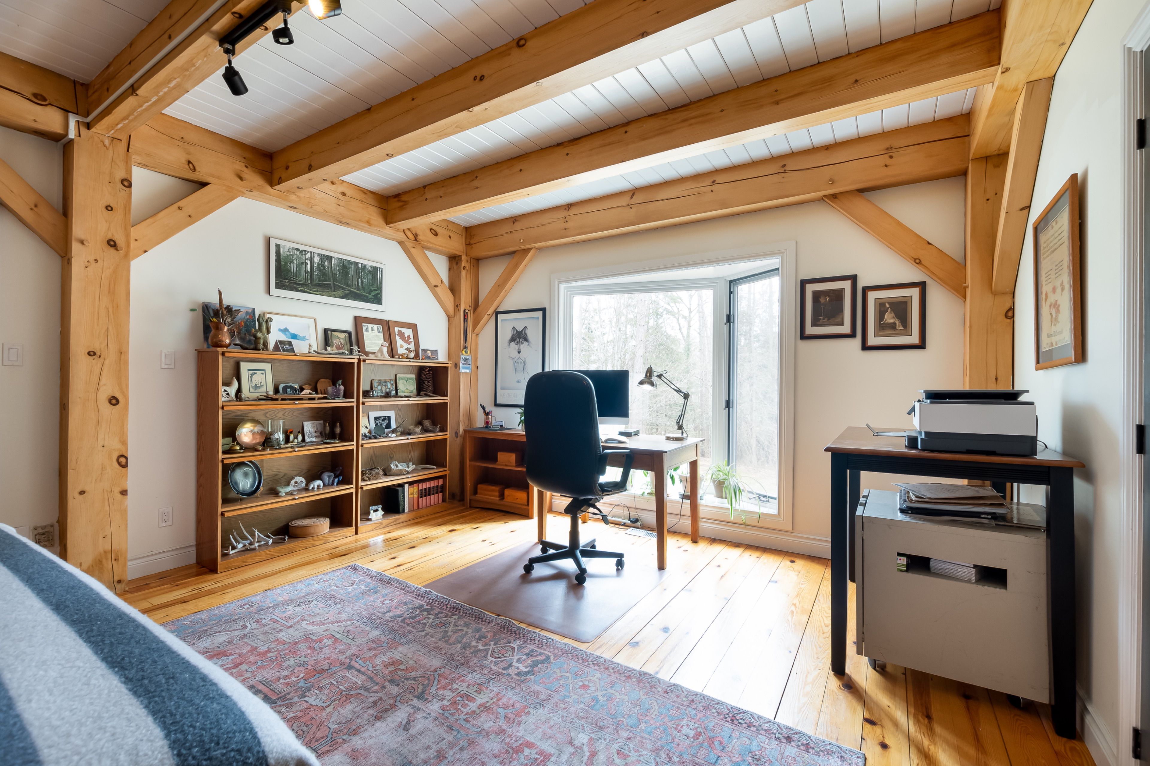 Ultimate privacy awaits! The driveway winds through the trees, revealing a home set on 5+ acres of mixed woods & beaver meadow, abutting a year-round creek that adds a gentle soundtrack to daily life. Though the pace of town feels far away, huntsville's hospital & everyday essentials are just 10 minutes down the road. Expansive windows throughout the house draw your eye outward, framing shifting light & the forest edge. The main floor centres around a kitchen built for people who cook, & for those who love to gather around them. Two oversized islands, dual stoves, & abundant storage make the kitchen equally practical & social, complemented by a pantry & a convenient 2-pc bath just off the space. Meals flow naturally into the bright dining area or the screened muskoka room, where the sounds of nature accompany quiet mornings or late-night conversations. A cozy reading nook sits off the kitchen, while beyond the dining area, an additional living space offers room to relax. The primary suite, also on the main floor, features a 3-pc ensuite with a glass walk-in shower & built-in bench. Upstairs, 2 guest bedrooms each bring their own appeal: one with a heated-floor ensuite, the other steps from a 4-pc bath with a deep soaker tub. Laundry on this level adds everyday convenience. The lower level houses an in-law suite, complete with a full eat-in kitchen, cozy living room with electric fireplace, bedroom, & 3-pc bath, ideal for extended family or guests. A spacious storage room keeps seasonal essentials organized & out of sight. Practical features include a forced-air propane furnace, central air, drilled well, septic, wired-in generator, & curbside waste collection. For water enthusiasts, the big east river is a short walk away for paddling or fishing, & a public boat launch on harp lake is just 2 minutes by car. This property blends quiet moments, nature's rhythm, & the comfort of nearby amenities, offering effortless muskoka living in an exceptionally private setting.