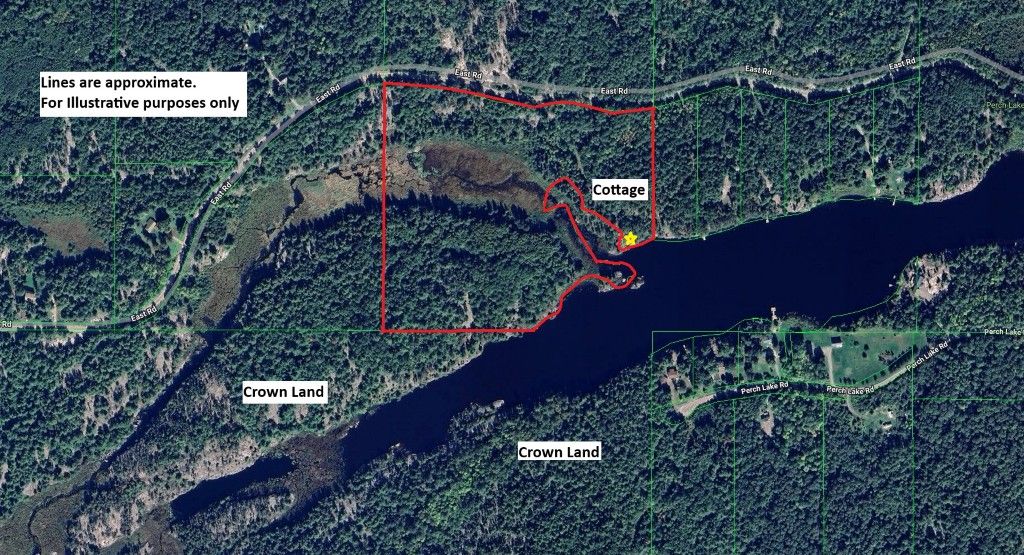 A place of solitude, simplicity and space! If you are looking for a cottage with waterfront and acreage than this, is it! We know how rare it is to have both! Presenting you with your own private cottage on 28 acres of land and approximately 1700 ft of waterfrontage on perch lake. Escape the noise and come to the country! Its is so calm and quiet you will only hear the gentle hum of the nature surrounding you. This rustic, woodland retreat has the cutest, cozy cottage nestled on acres and acres of towering pines and open blue sky. We are located on a year-round road, just 15 minutes to amenities. Pull off the main road onto your private, meandering driveway and let the magic begin! Perched solidly on rock, our cottage resides providing the most spectacular view of the perch lake channel. Perch lake is a smaller lake that is always calm and great for swimming, kayaking or canoeing. We are a classic, wood frame cottage that is open concept in design. There is a sweet kitchen with hand-built wood cabinets, a propane stove, electric fridge and sink. Our living space hosts a wood stove, multiple seating areas and a table overlooking the large window providing a spectacular view of the lake! There is one official bedroom and multiple single beds that pull out. We have hydro service and an outdoor loo! We do not have running water at this time, it could easily be pumped in from the lake! There is a front storage & mudroom that is perfect to safely store your belongings. We are a modest cottage but a mighty land offering! There is lots of room to build another cottage or year-round home! If you are a nature lover, this could be your place of peace. Maybe you enjoy hunting? The area hosts very large parcels of crown lands near by! The french river & lake nipissing are just a short drive away for hours of boating enjoyment! There are also multiple provincial parks with great hiking!