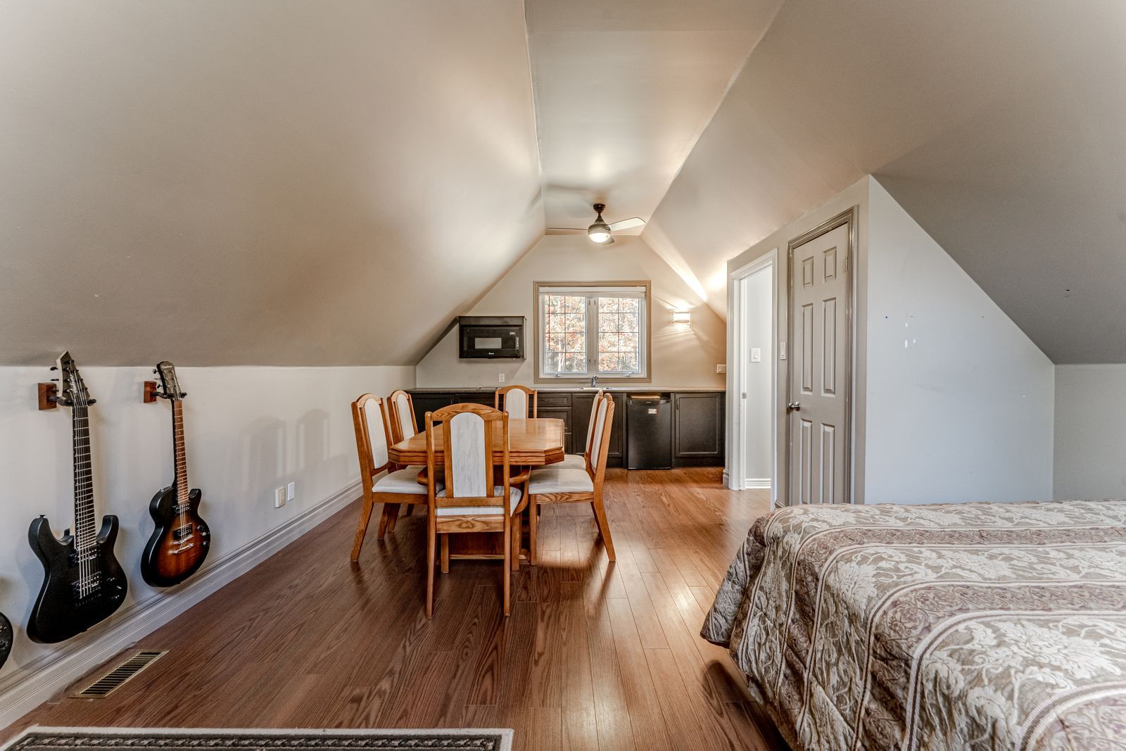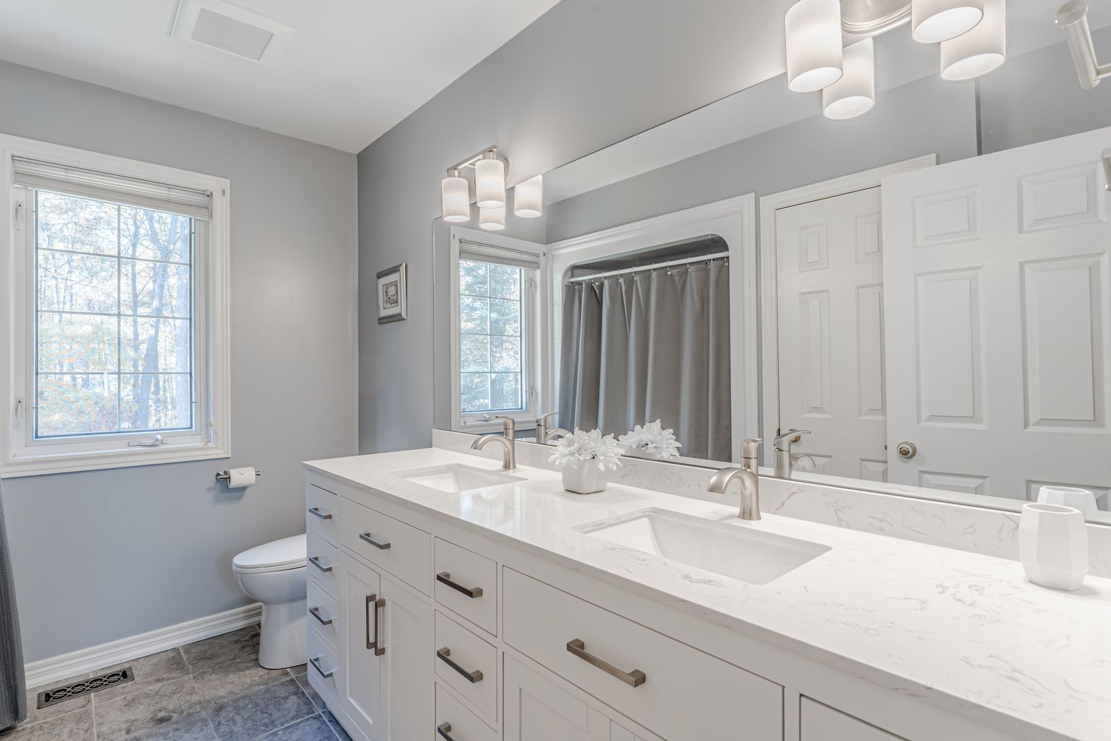 Distinctive 3,400+ sq ft family home offering outstanding curb appeal & versatile living spaces on over half an acre! Some homes simply have presence, and this one knows how to make an entrance. Set on just over half an acre of tree-lined privacy, 1096 sunnidale rd pairs timeless character with thoughtful design. The paved driveway leads to dormer windows, lush gardens, and a welcoming front porch that sets the tone for this inviting property. Offering over 3,400 sq ft of well-maintained living space, it showcases thoughtful updates and impressive functionality throughout. The renovated kitchen features white shaker cabinetry, bold black stone countertops, a gas stove, and a window framing the view beyond the sink, while the adjoining breakfast area includes a built-in desk, abundant pantry storage, and a walkout to the deck. The sunken family room offers a gas fireplace and a second walkout, and a separate living room with crown moulding and a bay window adds classic charm. A combined mudroom and laundry room provides garage access, a separate front entry, heated floors, a washer and dryer on pedestals, and ample cabinetry for added storage. The primary suite offers a walk-in closet and a 4-piece ensuite with heated floors, a freestanding tub, and a glass-walled shower, while the two additional bedrooms share a 5-piece bathroom with a dual vanity. The finished basement adds flexibility with a kitchenette, recreation room, 3-piece bath, and a fourth bedroom ideal for extended family or in-law potential. A heated and insulated double garage is paired with a loft above, featuring a kitchenette and games area for added versatility. Outdoors, the private backyard is designed for year-round enjoyment with a hot tub, patio, fire pit, storage shed, and newly updated decks, bordered by a recently improved fence along one side. Every detail has been cared for, offering a rare combination of space, character, and versatility in one of springwater's most desirable settings!