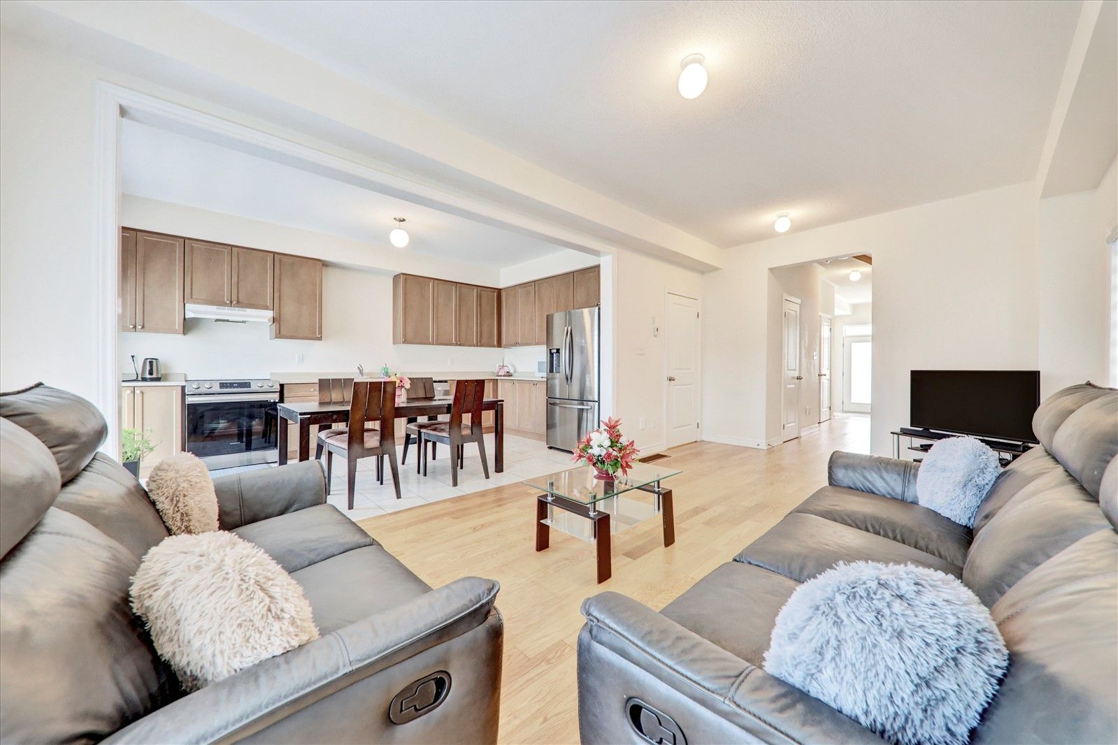 • Open-concept design with upgraded kitchen and stainless steel appliances.