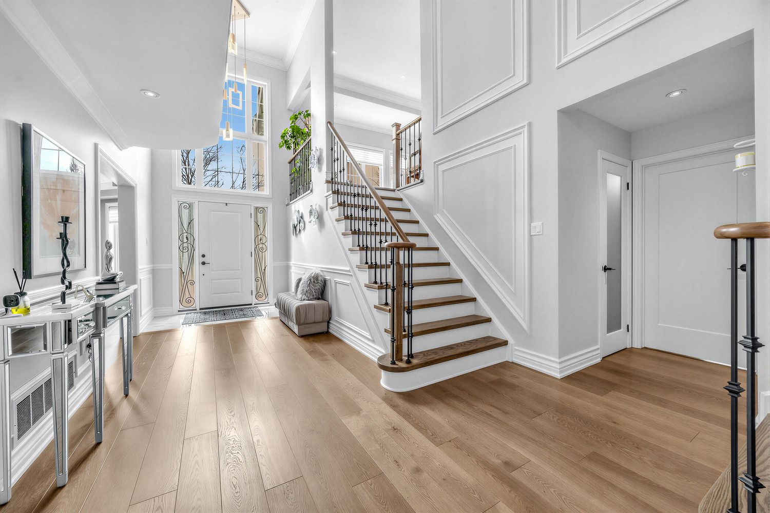 • High ceilings and a grand foyer create a welcoming atmosphere.