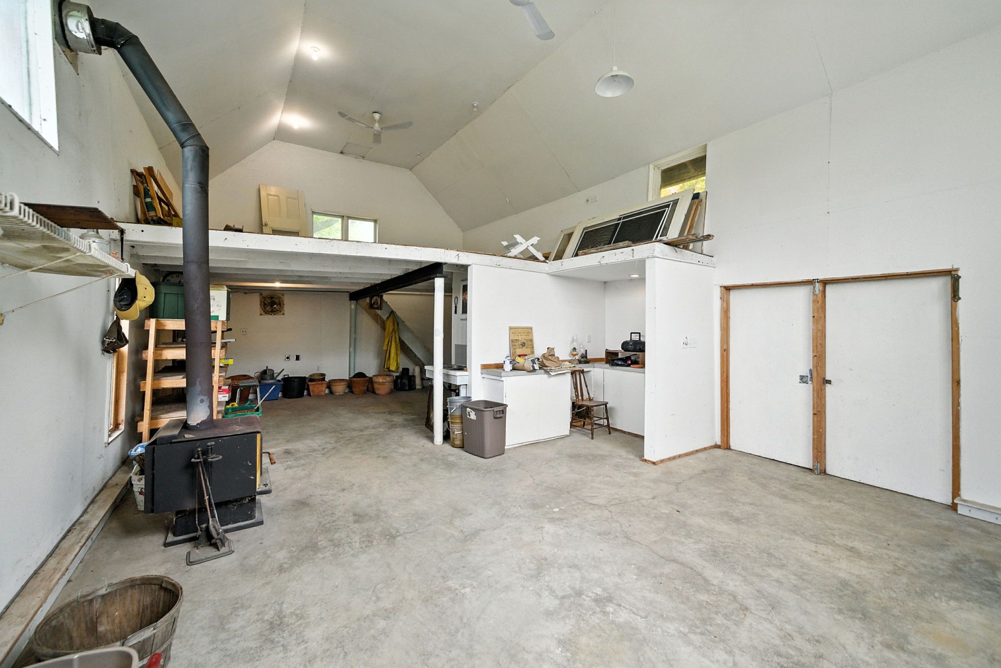 • Large workshop building with heating and water, perfect for various projects.