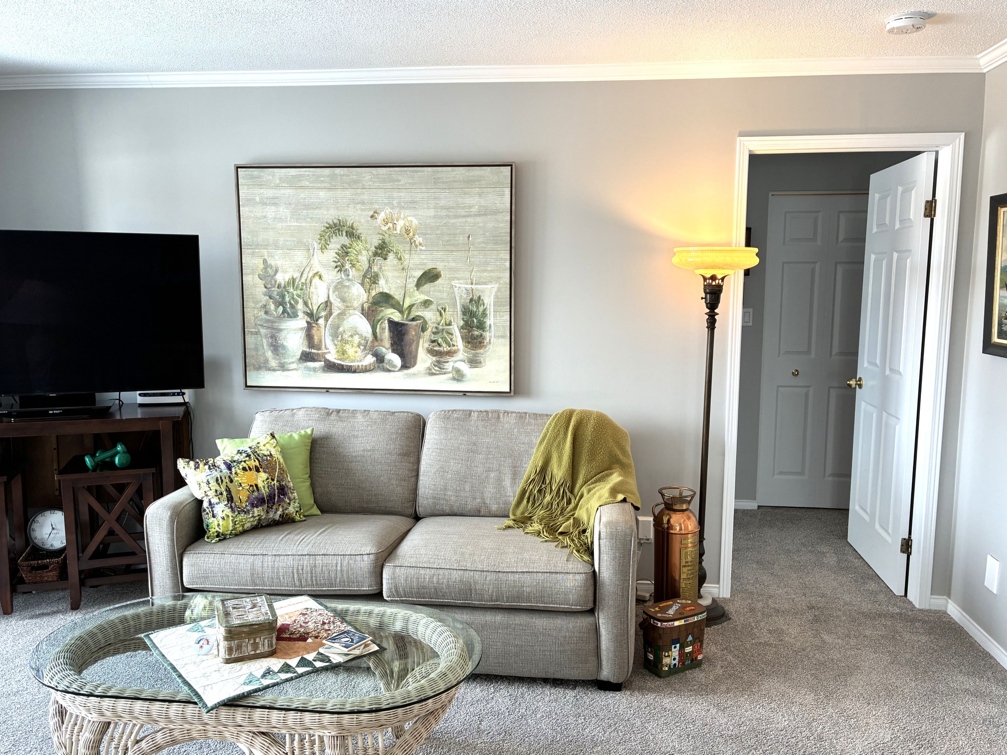 • Private covered balcony overlooking green space for relaxation.