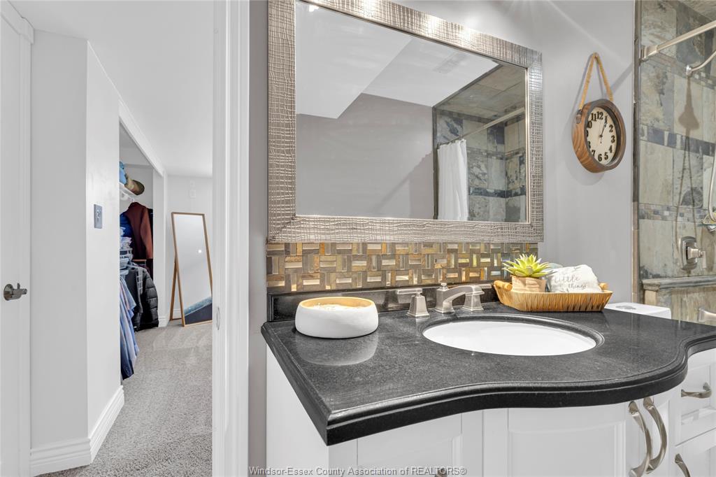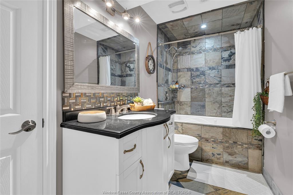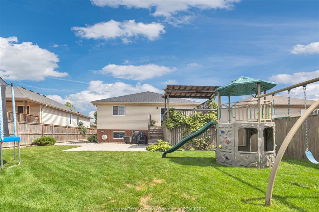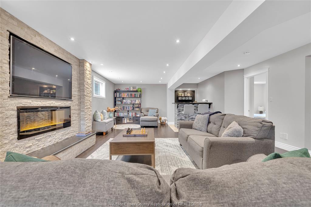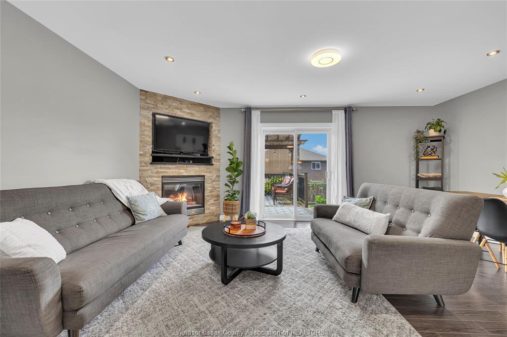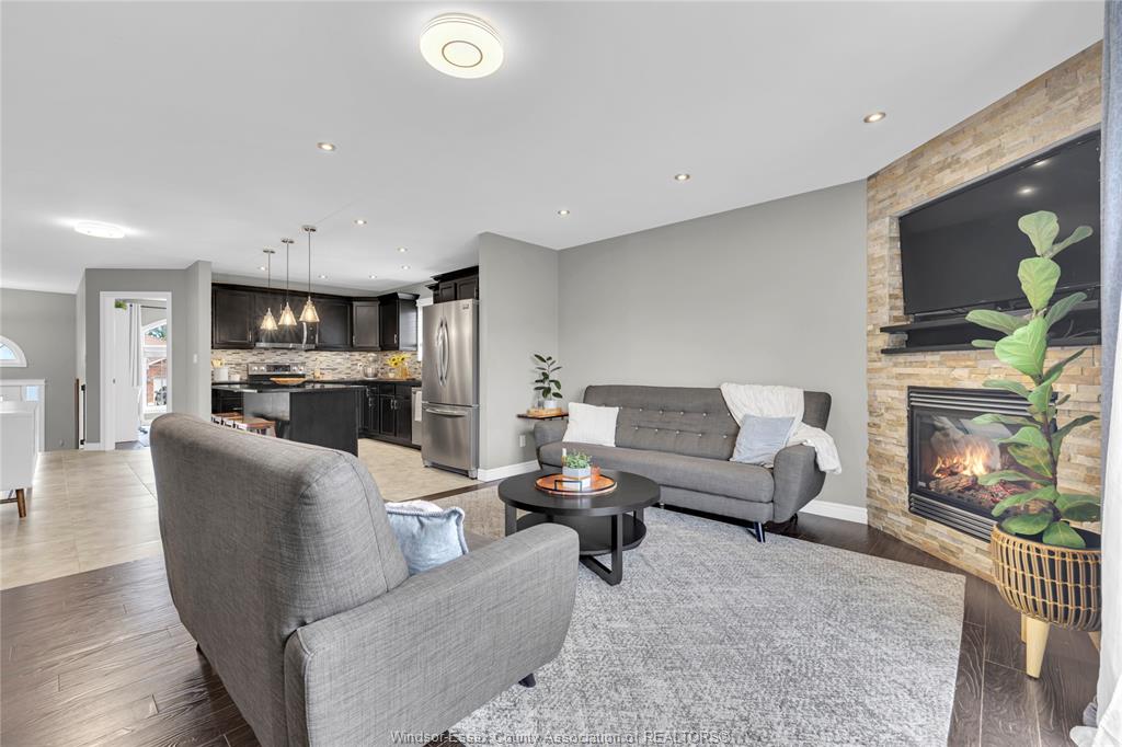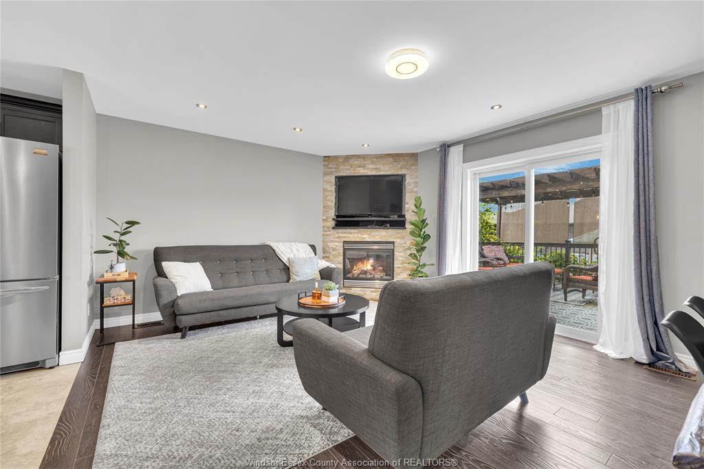 Fully finished, stylish raised ranch offering comfort & modern charm. This 3+1 bedroom and 2 full updated baths. Step into luxury with in-floor heating in all upper level wet areas, newer windows (2016) providing plenty of sunlight. Newer roof (2023) and tankless owned water heater (2017) beautiful kitchen with centre island and granite countertops that opens to inviting living room with plenty of room for family gatherings. The lower level is designed for relaxation and entertaining boasting custom cultured stone fireplace with built-in 60" panasonic smart tv, additional bedroom and separate bar area. The exterior is just as impressive with fully fenced yard complete with a lovely deck draped in grape vines creating a private & picturesque retreat and stamped concrete 16x16 patio. Double garage and stamped concrete 3 car wide driveway. Move-in ready and polished throughout, this home is a true east windsor gem!