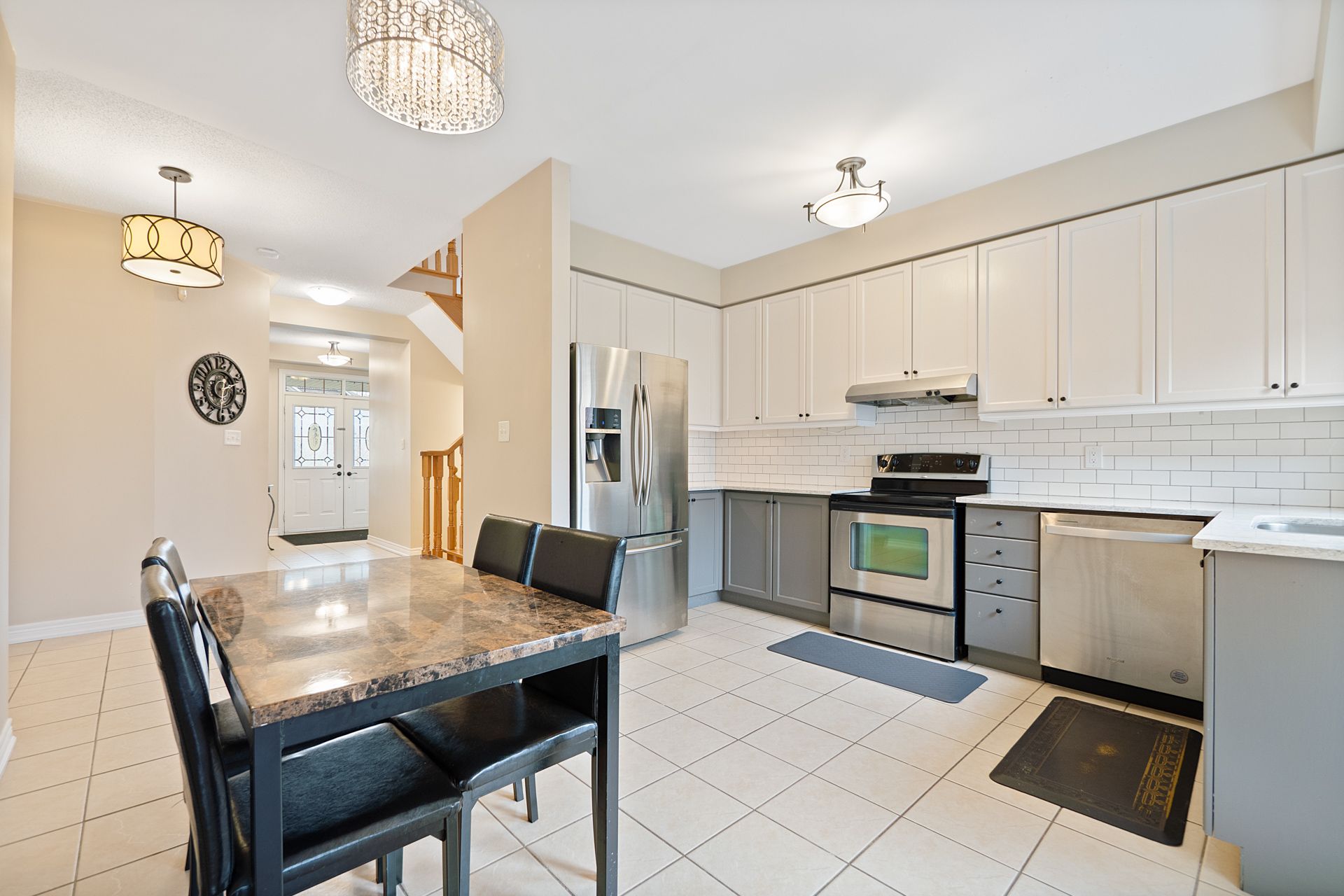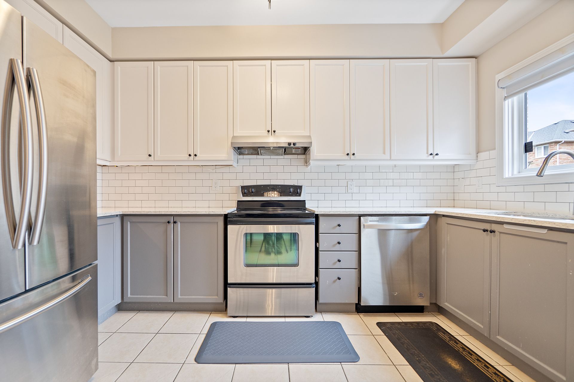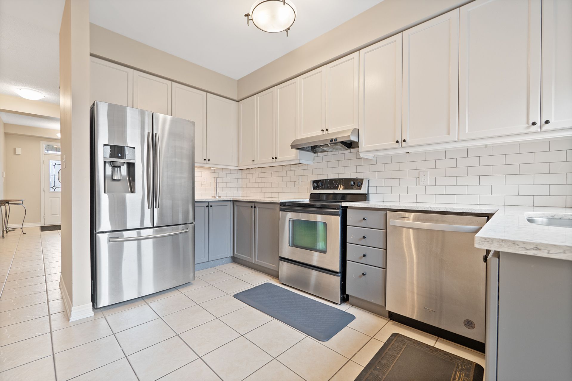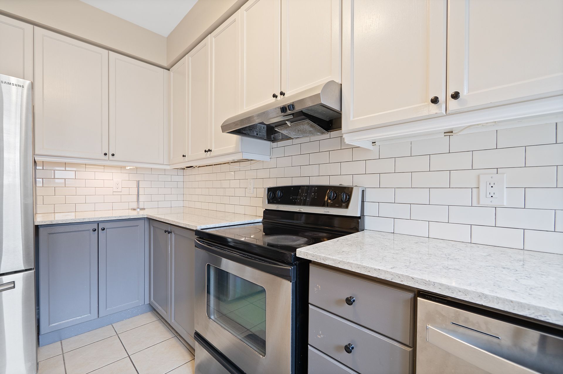 • Modern kitchen with quartz countertops and stainless steel appliances.