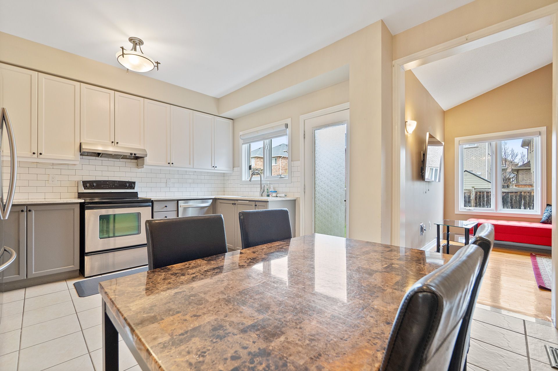 Available for move-in from mid-april 2026, this beautiful home is located in the highly desirable clarke area of milton. This bright and spacious 3-bedroom detached home is located in a welcoming, family-friendly neighborhood. It features 10-foot ceilings, a modern kitchen with quartz countertops and stainless steel appliances, and a family room with a cathedral ceiling, fireplace, and direct access to the backyard. The primary bedroom includes a walk-in closet and an updated ensuite bathroom. The finished basement offers additional living space with are creation room, bar area, and a dedicated office. Recent upgrades include new light fixtures, fresh window coverings, a backyard shed, and a stamped concrete patio. The home is available furnished.