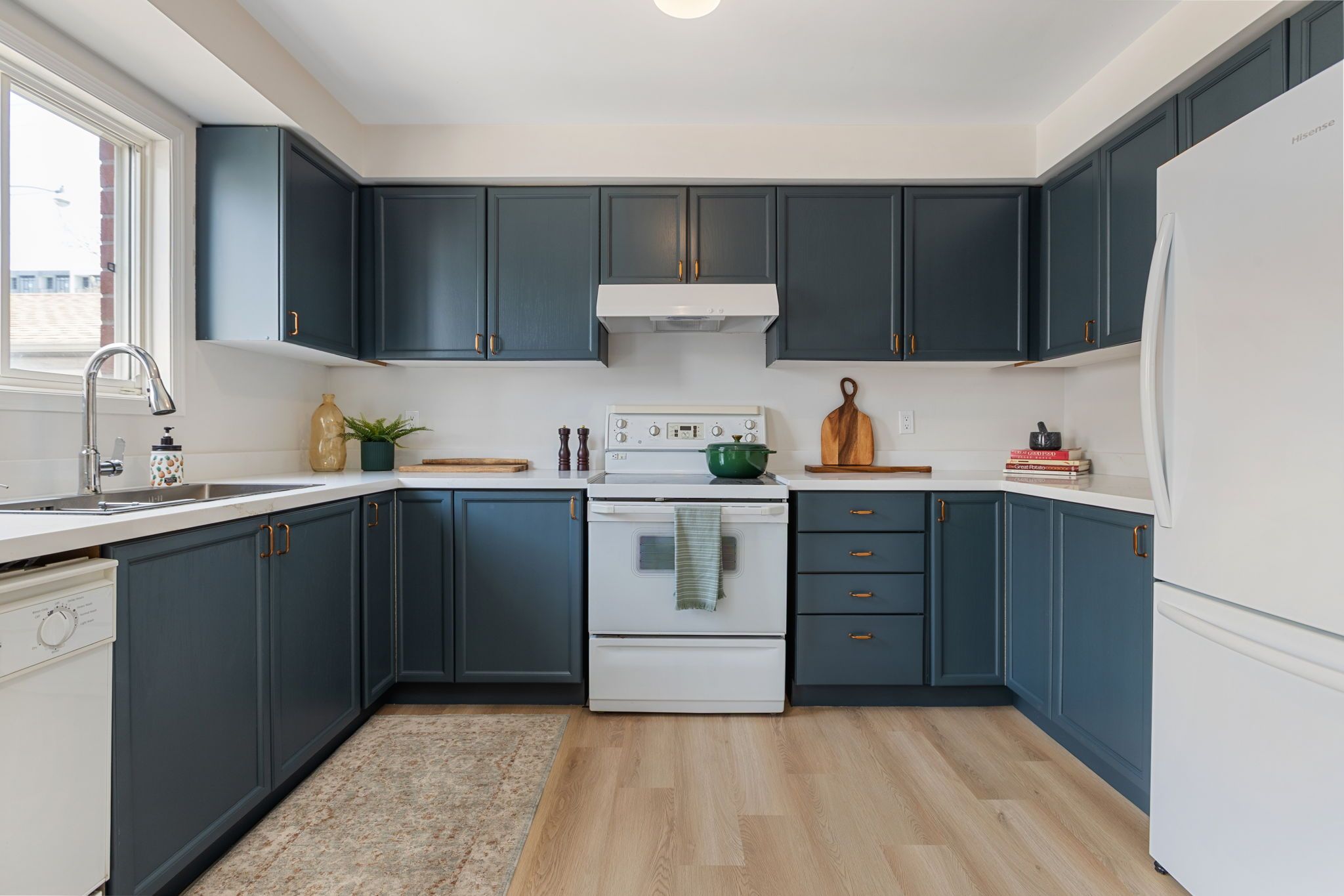 • Large eat-in kitchen featuring new Quartz countertops and modern fixtures.