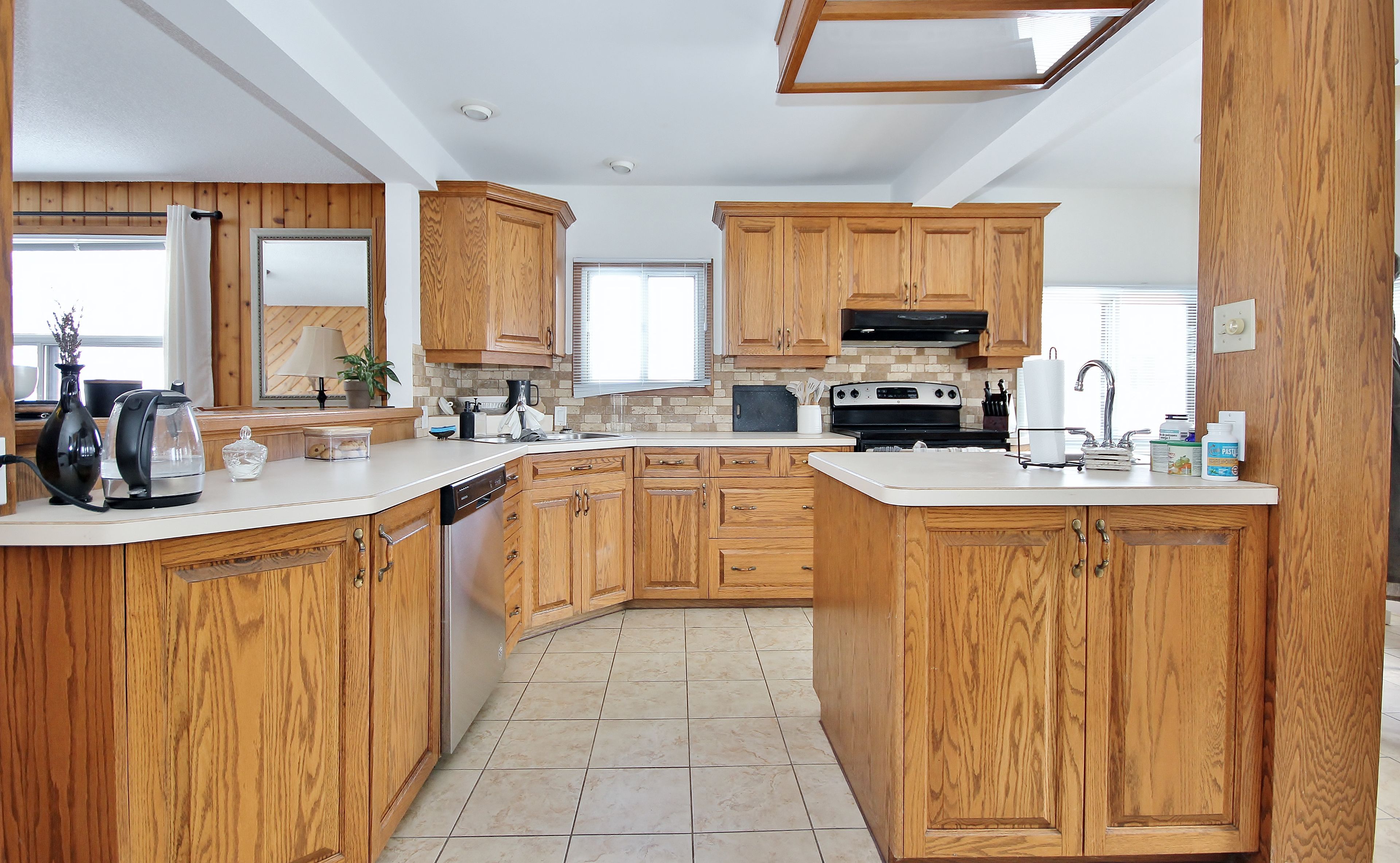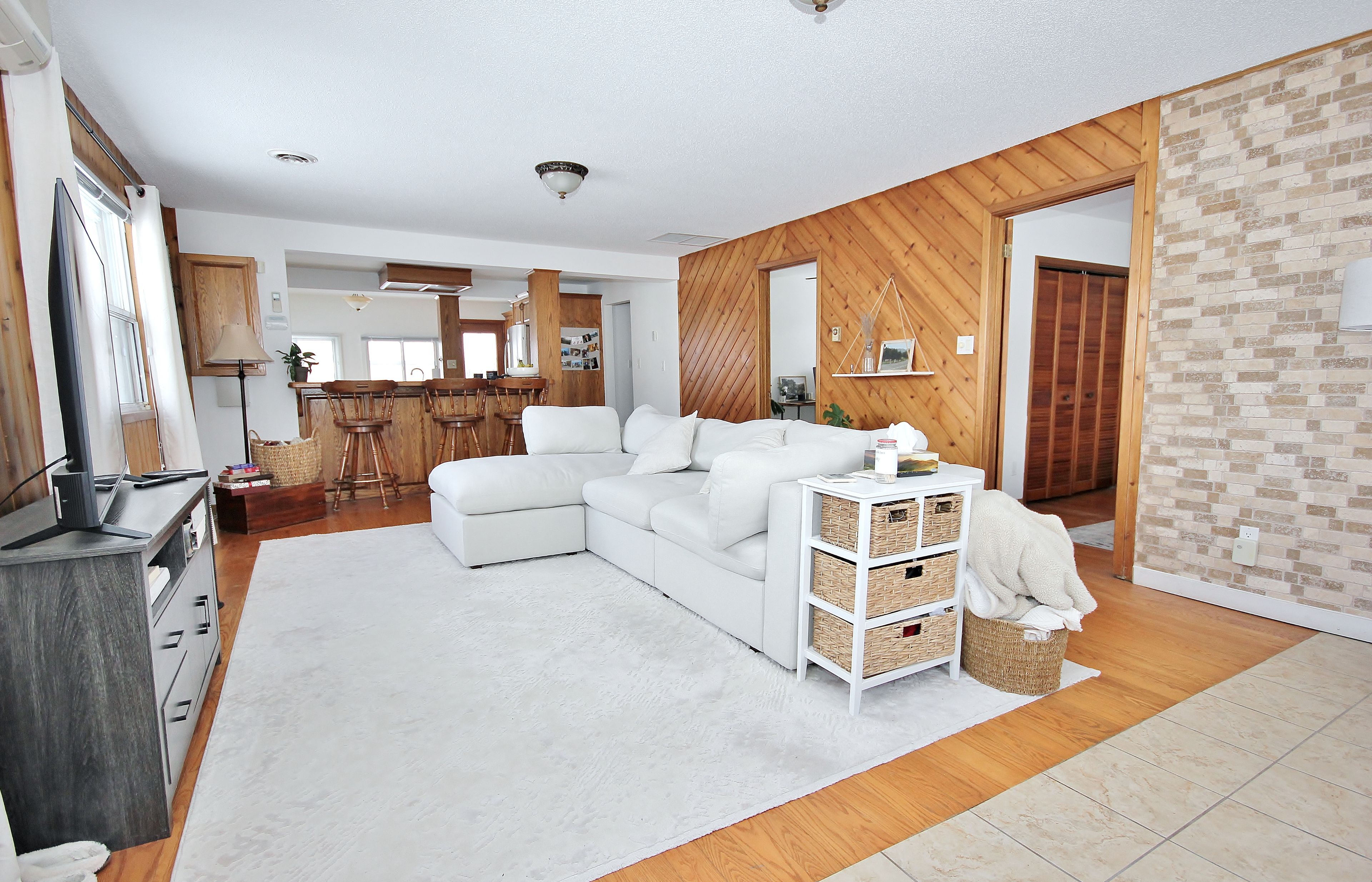 Great location across from lake and steps to sandy beach. Warm and inviting updated 2 bedroom open concept bungalow, large eat-in kitchen with tons of cabinets and counter space, walkout to patio, spacious great room with an abundance of windows, lots of room for parking, large workshop, minutes to marinas and golf.