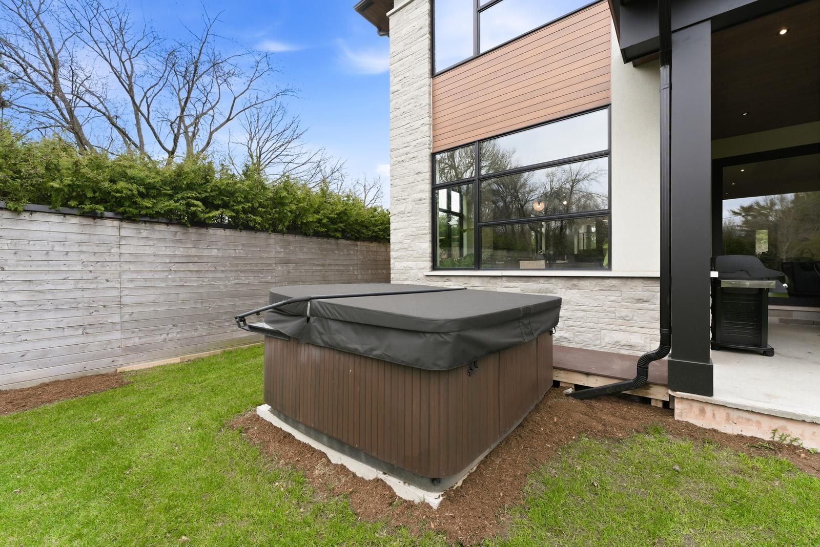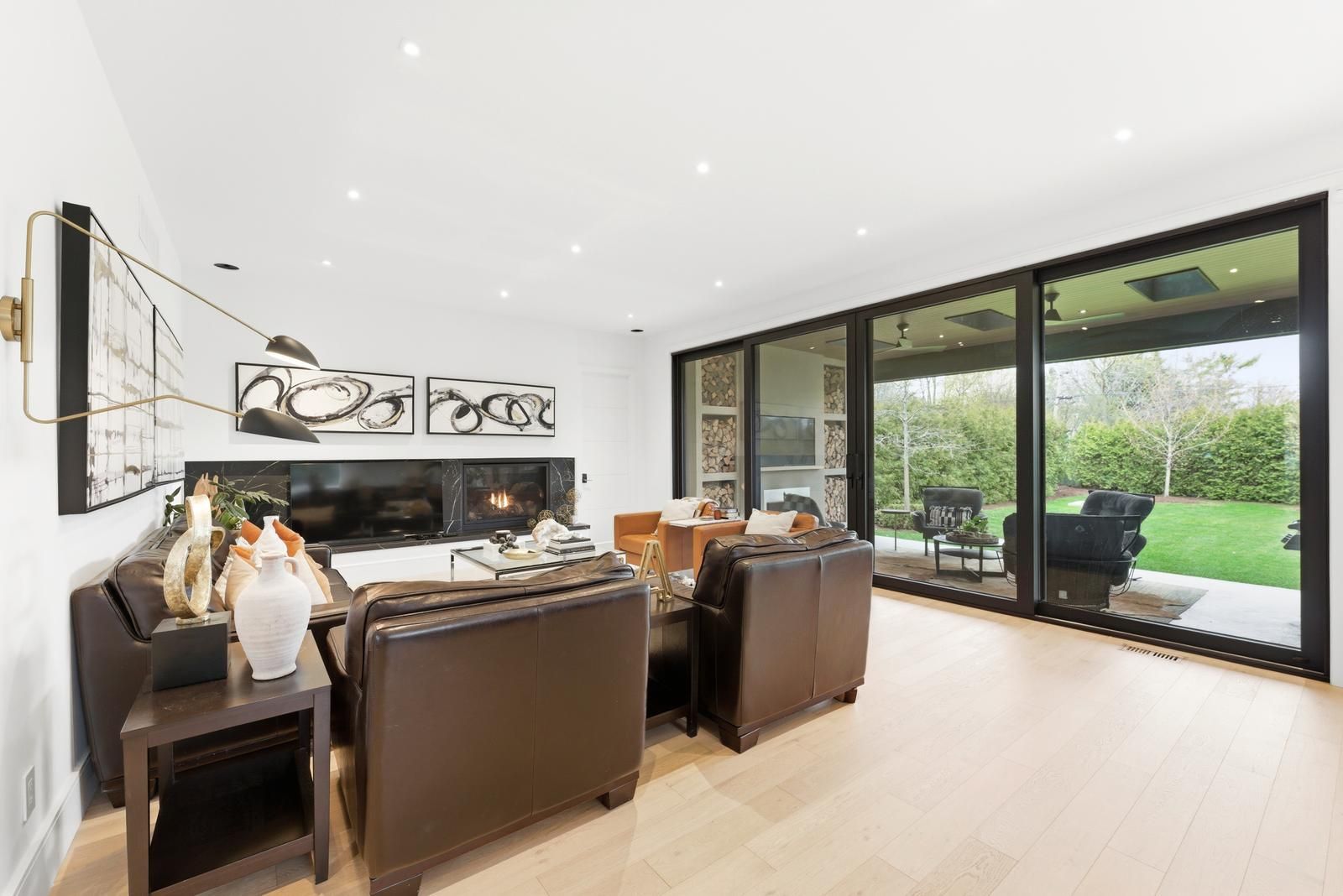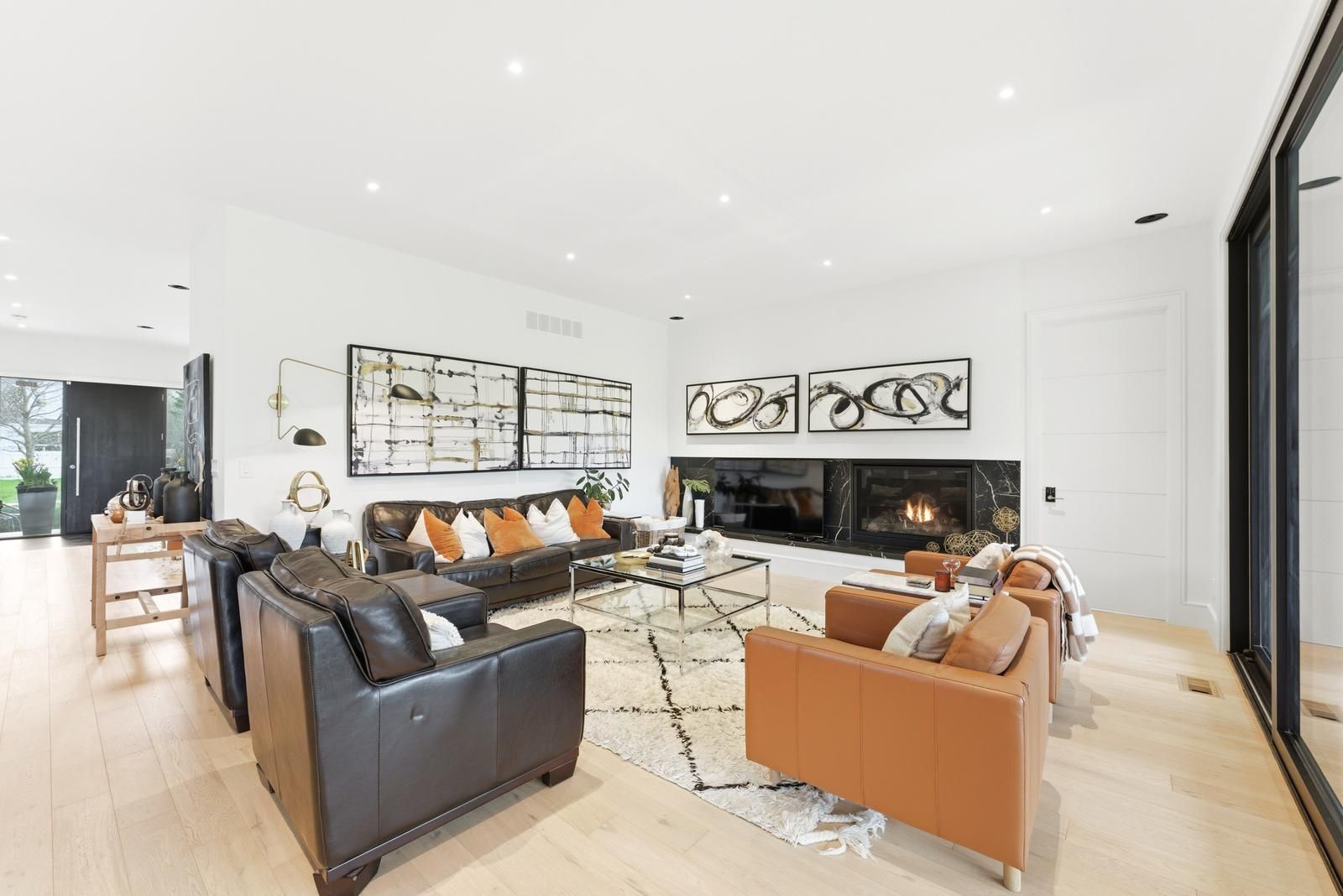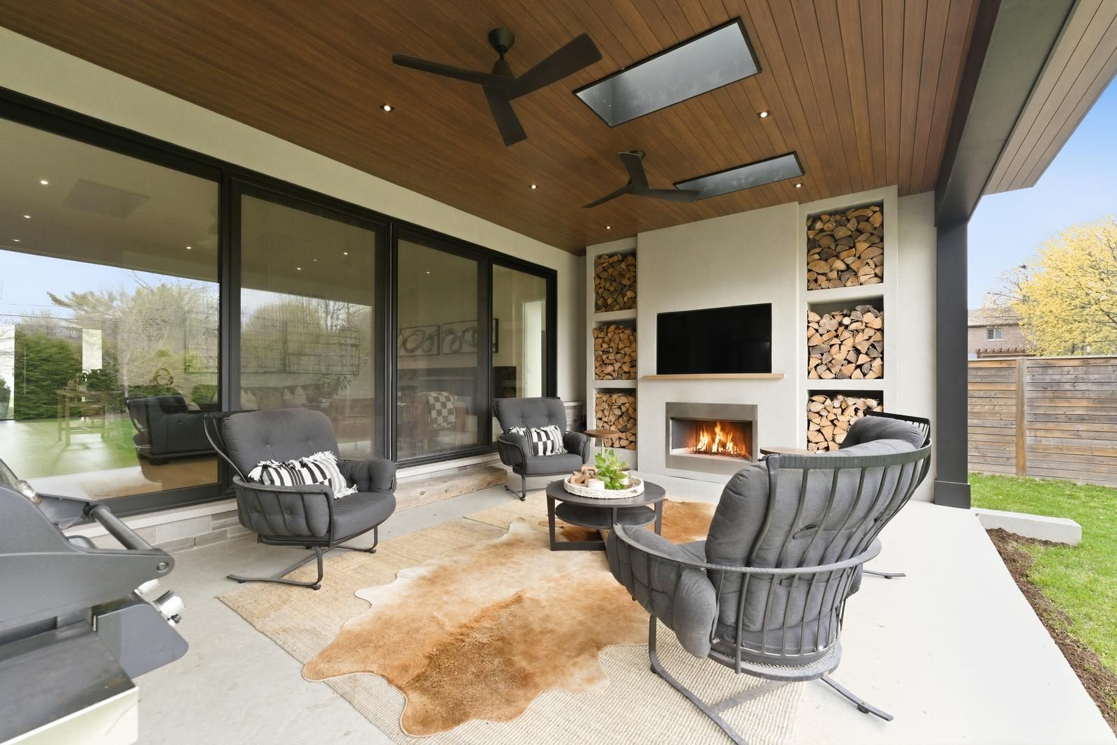 Tucked away on a quiet cul-de-sac in one of oakville's most sought-after neighbourhoods, this custom-built (2018) home sits on a rare 66 x 188 ft lot, offering exceptional depth and privacy. With over 4,000 sq. Ft. Above grade, the residence showcases quality craftsmanship and thoughtful design throughout. The striking exterior blends natural stone, stucco, and modern wood-look aluminum cladding. Expansive, sound-reducing windows fill the home with natural light. A double garage with tandem space and an extended driveway accommodates up to six vehicles. The professionally landscaped, fully fenced backyard is framed by mature cedar hedging and features a 400 sq. Ft. Covered outdoor living area with 11-ft ceilings, skylights, built-in tv, and wood-burning fireplace. Oversized 9-ft sliding glass doors create seamless indoor-outdoor living. Inside, 10-ft ceilings on the main and second levels, hardwood flooring, and well-proportioned principal rooms define the space. Formal living and dining rooms, a private office, and a spacious family room with gas fireplace offer comfort and functionality. The custom kitchen features an oversized island and premium dacor appliances, ideal for everyday living and entertaining. Upstairs offers four generous bedrooms. The primary suite includes a fireplace, sitting area, and a custom walk-in dressing room with built-in sink, mini fridge, and coffee bar. The spa-inspired ensuite features a glass shower, soaker tub, and double vanity. Three additional bedrooms and two full baths complete the level. The unspoiled lower level offers approx. 3,000 sq. Ft. With 9-ft ceilings, heated floors, and a walkout-ready to customize. A rare opportunity to own a newer custom home on an oversized lot in prime oakville.