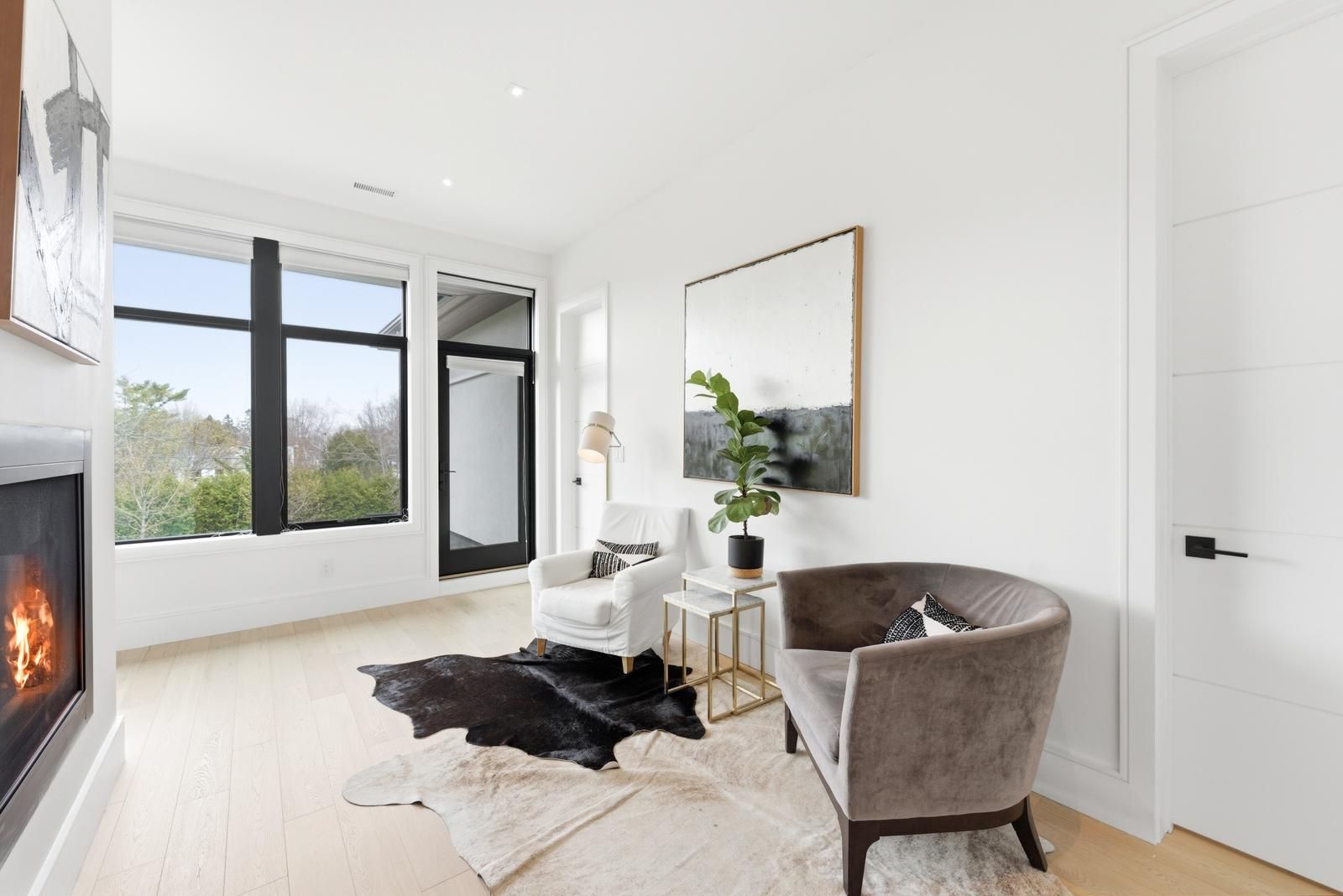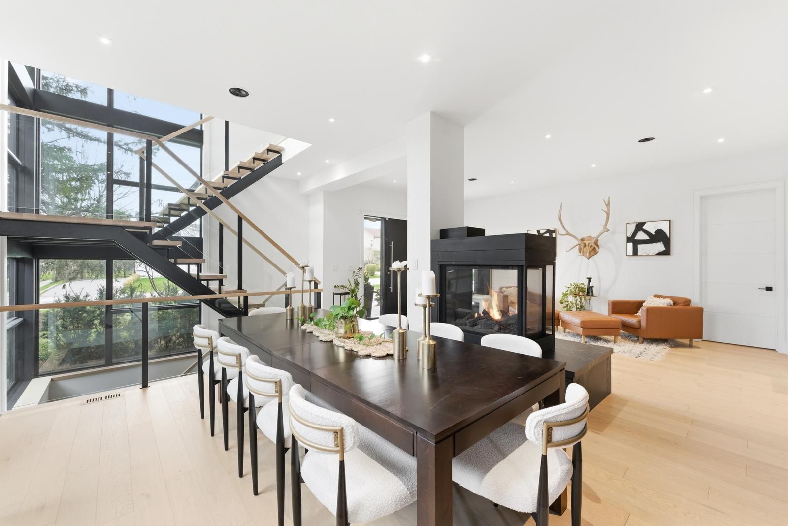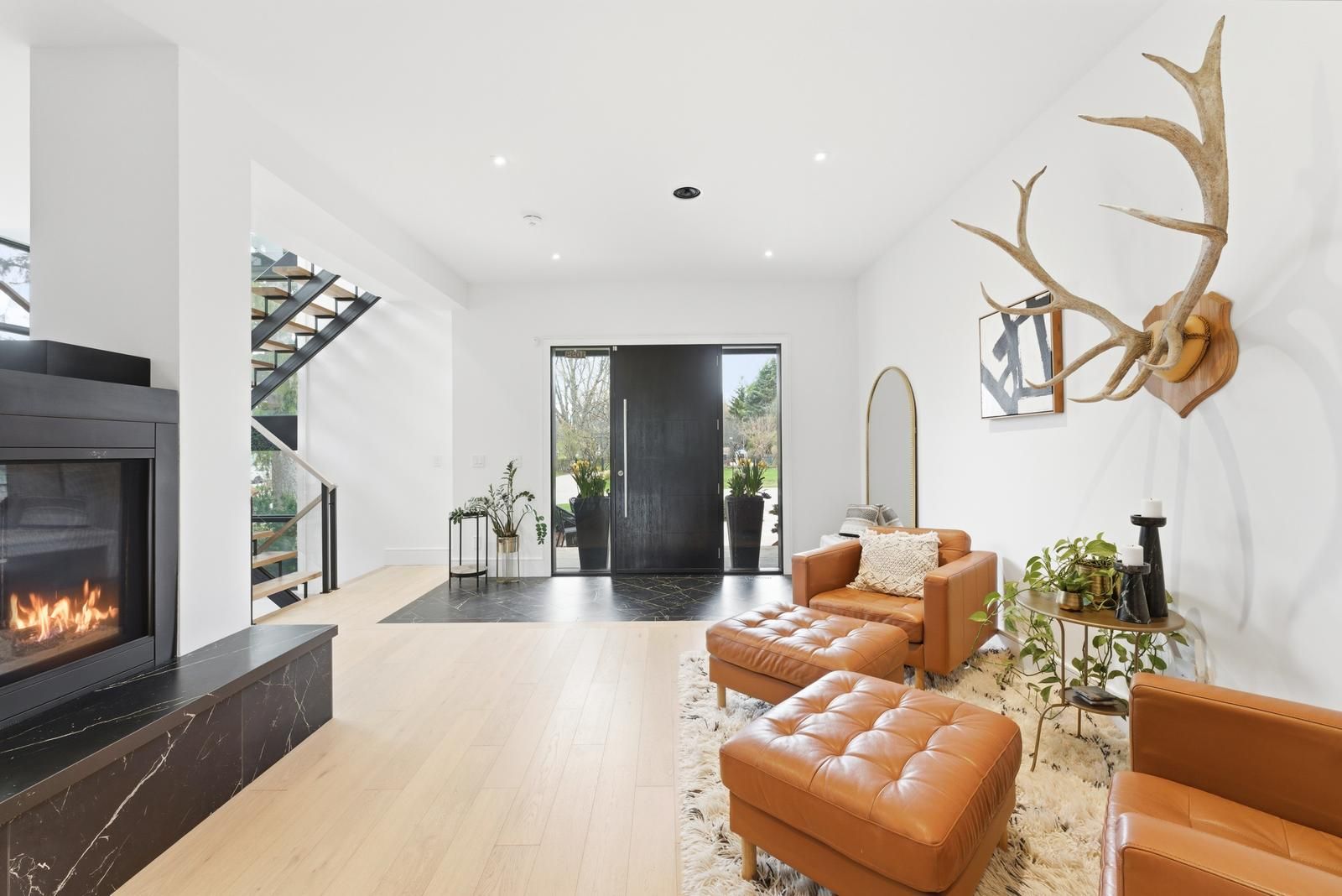 Tucked away on a quiet cul-de-sac in one of oakville's most sought-after neighbourhoods, this custom-built (2018) home sits on a rare 66 x 188 ft lot, offering exceptional depth and privacy. With over 4,000 sq. Ft. Above grade, the residence showcases quality craftsmanship and thoughtful design throughout. The striking exterior blends natural stone, stucco, and modern wood-look aluminum cladding. Expansive, sound-reducing windows fill the home with natural light. A double garage with tandem space and an extended driveway accommodates up to six vehicles. The professionally landscaped, fully fenced backyard is framed by mature cedar hedging and features a 400 sq. Ft. Covered outdoor living area with 11-ft ceilings, skylights, built-in tv, and wood-burning fireplace. Oversized 9-ft sliding glass doors create seamless indoor-outdoor living. Inside, 10-ft ceilings on the main and second levels, hardwood flooring, and well-proportioned principal rooms define the space. Formal living and dining rooms, a private office, and a spacious family room with gas fireplace offer comfort and functionality. The custom kitchen features an oversized island and premium dacor appliances, ideal for everyday living and entertaining. Upstairs offers four generous bedrooms. The primary suite includes a fireplace, sitting area, and a custom walk-in dressing room with built-in sink, mini fridge, and coffee bar. The spa-inspired ensuite features a glass shower, soaker tub, and double vanity. Three additional bedrooms and two full baths complete the level. The unspoiled lower level offers approx. 3,000 sq. Ft. With 9-ft ceilings, heated floors, and a walkout-ready to customize. A rare opportunity to own a newer custom home on an oversized lot in prime oakville.