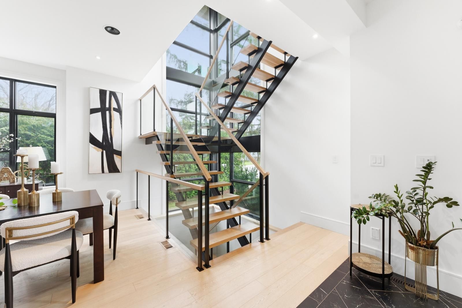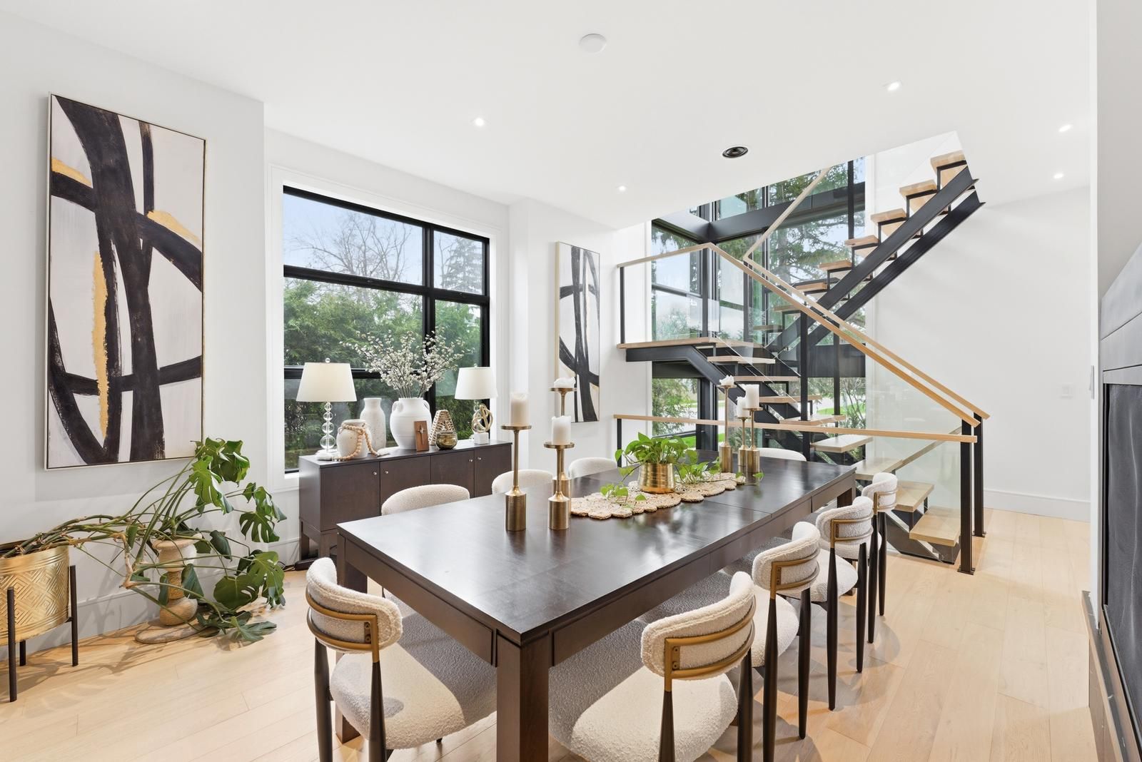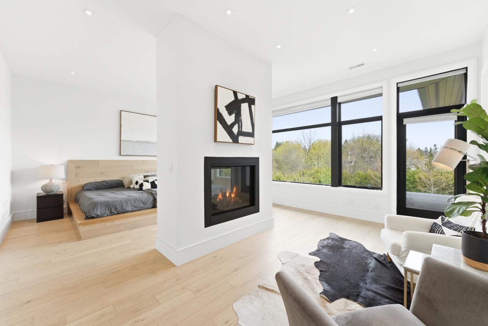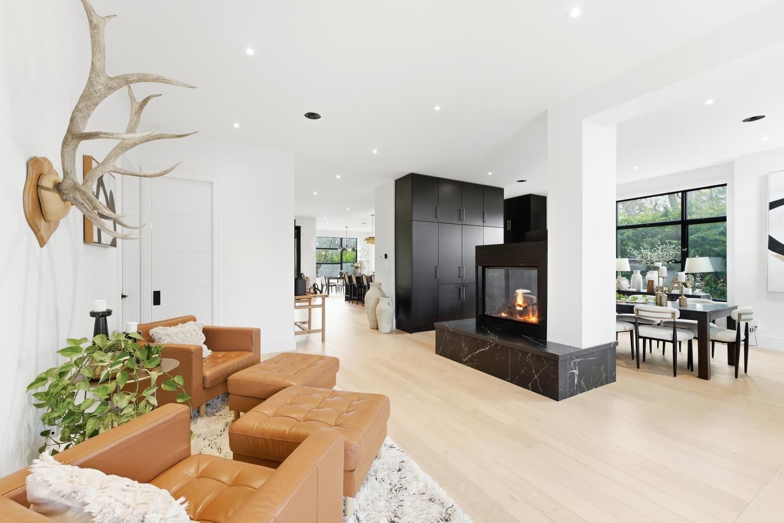 Tucked away on a quiet cul-de-sac in one of oakville's most sought-after neighbourhoods, this custom-built (2018) home sits on a rare 66 x 188 ft lot, offering exceptional depth and privacy. With over 4,000 sq. Ft. Above grade, the residence showcases quality craftsmanship and thoughtful design throughout. The striking exterior blends natural stone, stucco, and modern wood-look aluminum cladding. Expansive, sound-reducing windows fill the home with natural light. A double garage with tandem space and an extended driveway accommodates up to six vehicles. The professionally landscaped, fully fenced backyard is framed by mature cedar hedging and features a 400 sq. Ft. Covered outdoor living area with 11-ft ceilings, skylights, built-in tv, and wood-burning fireplace. Oversized 9-ft sliding glass doors create seamless indoor-outdoor living. Inside, 10-ft ceilings on the main and second levels, hardwood flooring, and well-proportioned principal rooms define the space. Formal living and dining rooms, a private office, and a spacious family room with gas fireplace offer comfort and functionality. The custom kitchen features an oversized island and premium dacor appliances, ideal for everyday living and entertaining. Upstairs offers four generous bedrooms. The primary suite includes a fireplace, sitting area, and a custom walk-in dressing room with built-in sink, mini fridge, and coffee bar. The spa-inspired ensuite features a glass shower, soaker tub, and double vanity. Three additional bedrooms and two full baths complete the level. The unspoiled lower level offers approx. 3,000 sq. Ft. With 9-ft ceilings, heated floors, and a walkout-ready to customize. A rare opportunity to own a newer custom home on an oversized lot in prime oakville.