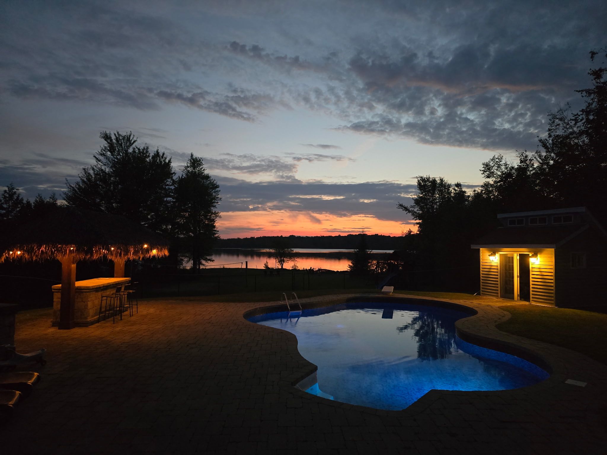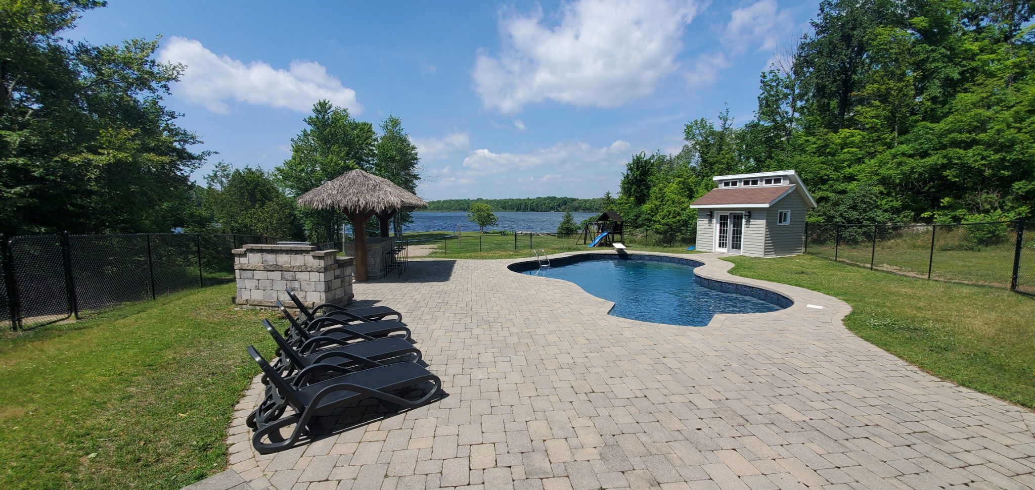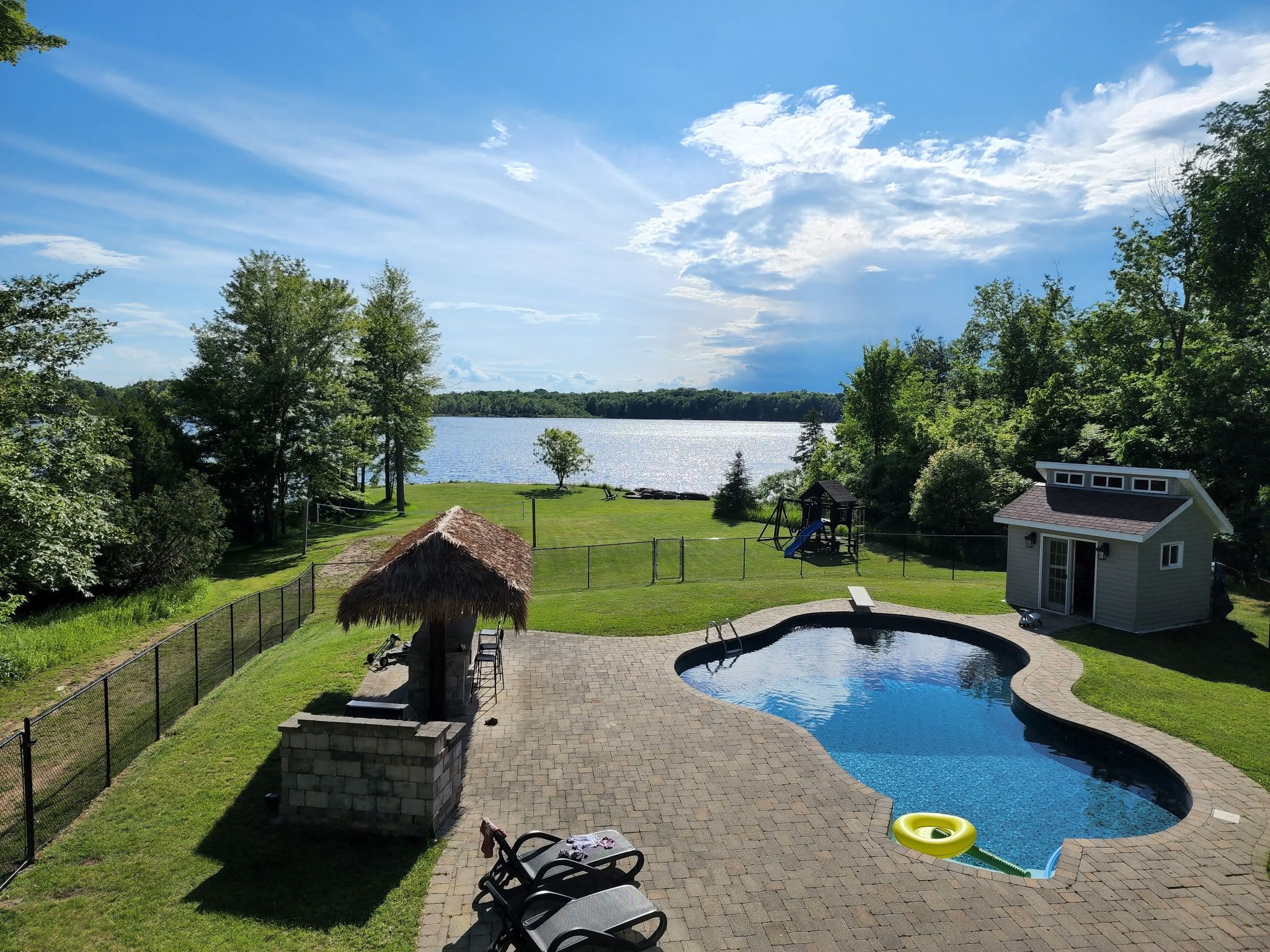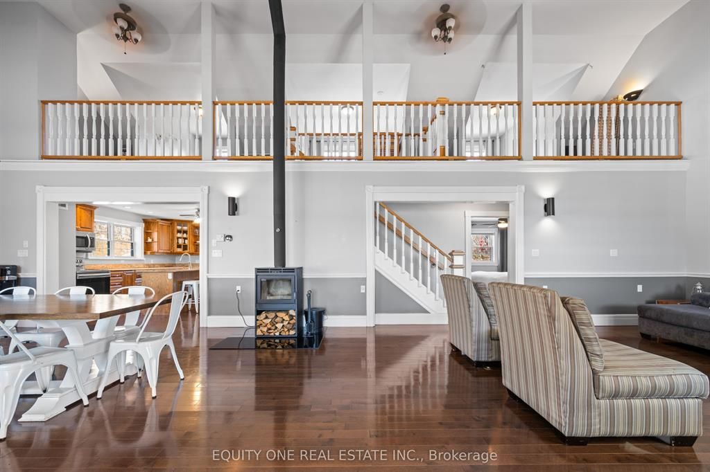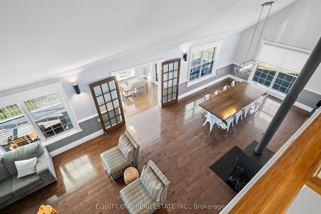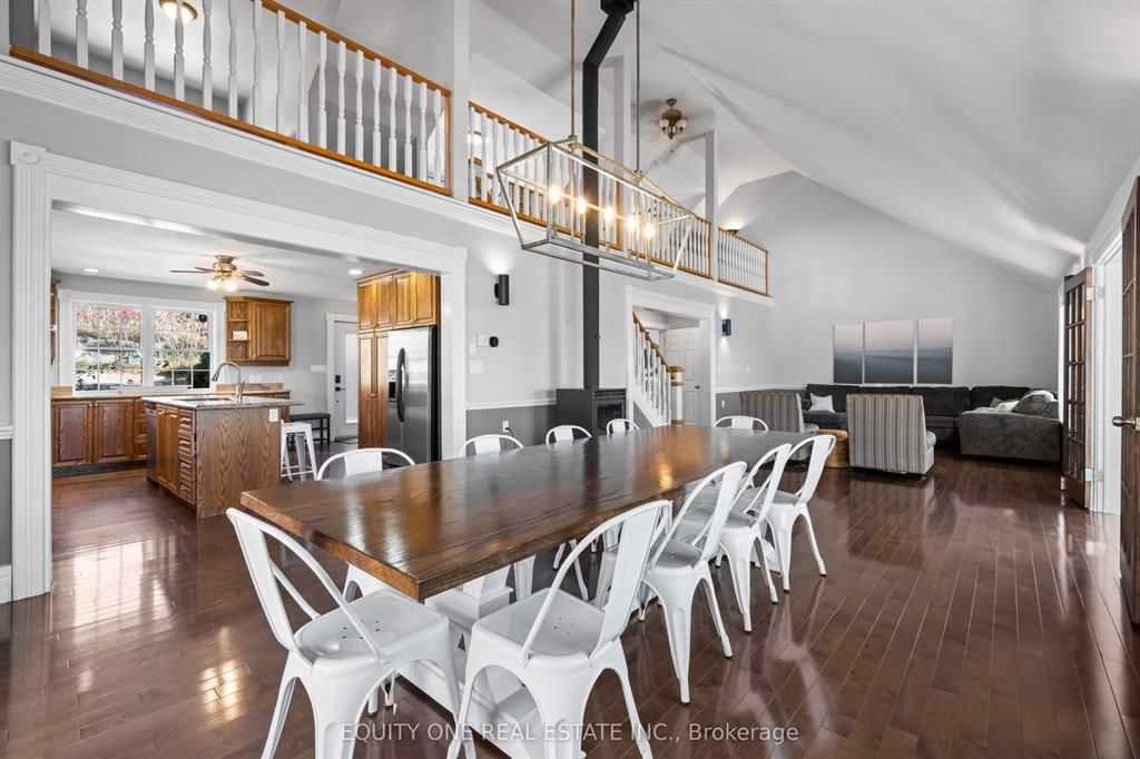 Waterfront retreat with full walk out basement on beautiful sharbot lake! Nestled on a 2. 9-acre lot, this gorgeous 1 1/2 storey detached home offers the perfect blend of cottage comfort and modern living-with breathtaking panoramic lake views from the back of the house. The main floor features a large kitchen with island, plenty of counter space, and ample cabinetry. The kitchen opens to the dining and living area with soaring ceilings and a high-efficiency wood-burning stove, perfect for cozy winter nights. A main floor primary bedroom and full bathroom provide convenience, while the sunroom overlooking the lake offers the perfect spot to unwind and enjoy the view. Upstairs, the loft includes three semi-private sleeping areas separated by partition walls and overlooking the living area-ideal for guests or family stays. The walk-out lower level features a second kitchen, full bathroom, two bright bedrooms, a family room with gas fireplace, and ample storage. Step outside to the heated inground saltwater pool or head down to the shoreline to swim, paddle, or simply relax by the water. Located just 1 1/2 hours from ottawa, this property is the perfect year-round retreat-ideal for family gatherings, peaceful getaways, or earning supplemental rental income when you're not there. Working from the lake is also a breeze with high speed fibre internet. Experience lakeside living at its finest on sought-after sharbot lake! Private road fee of $250 per year.