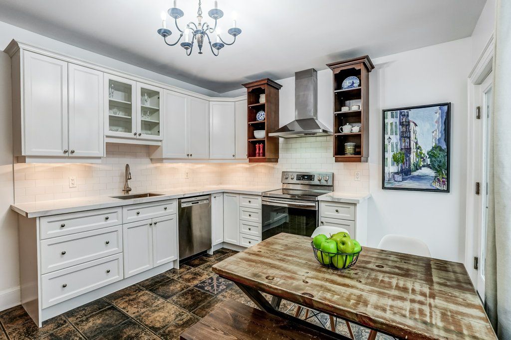 • Eat-in kitchen with high-end counters and stainless steel appliances.