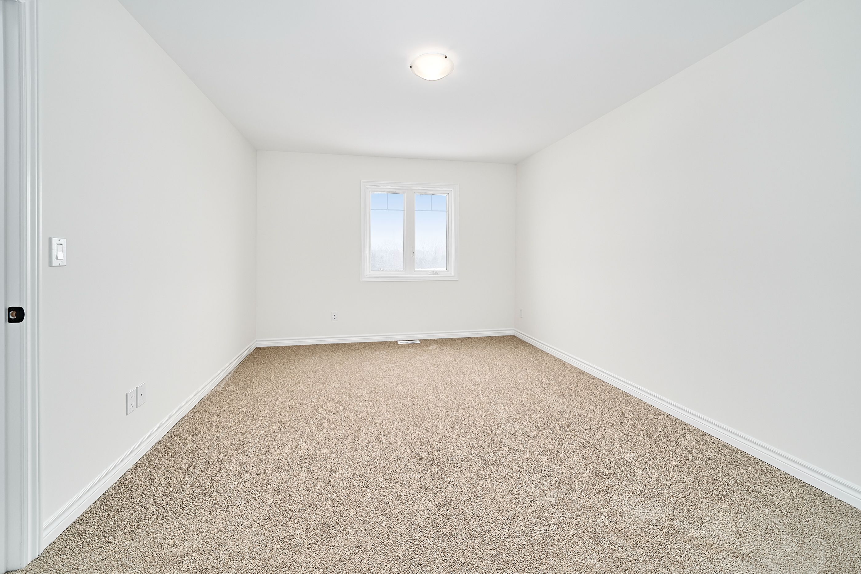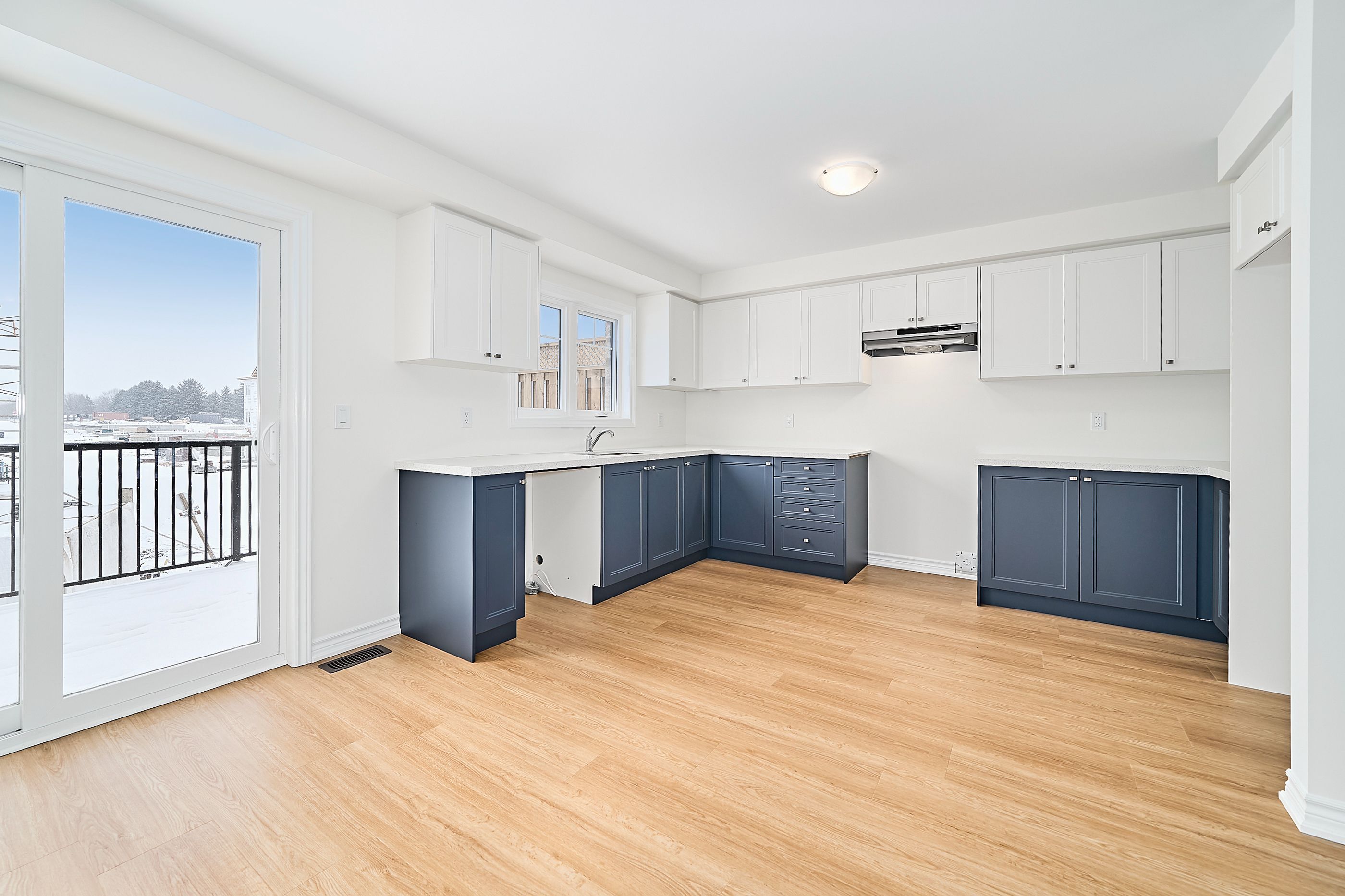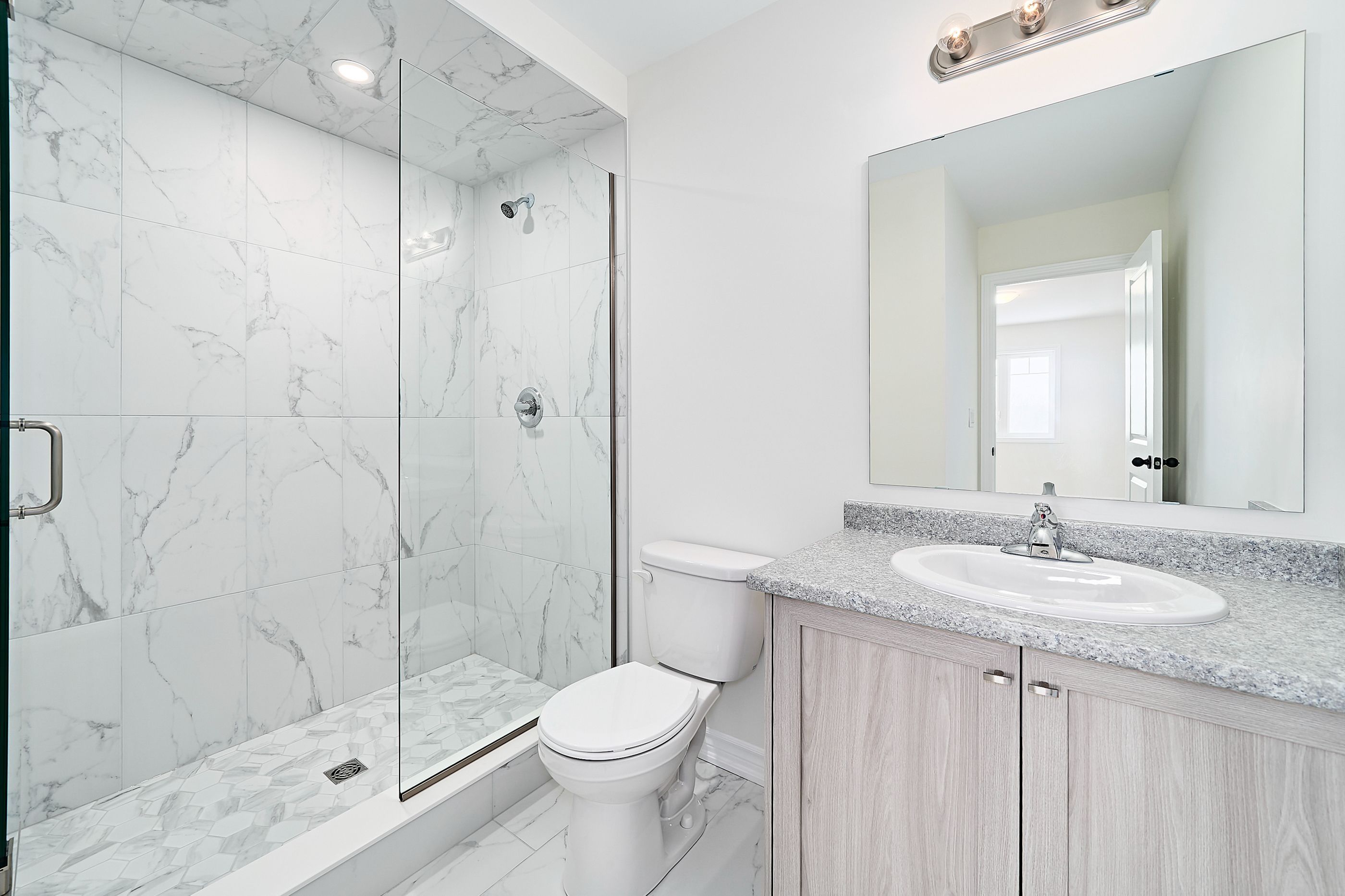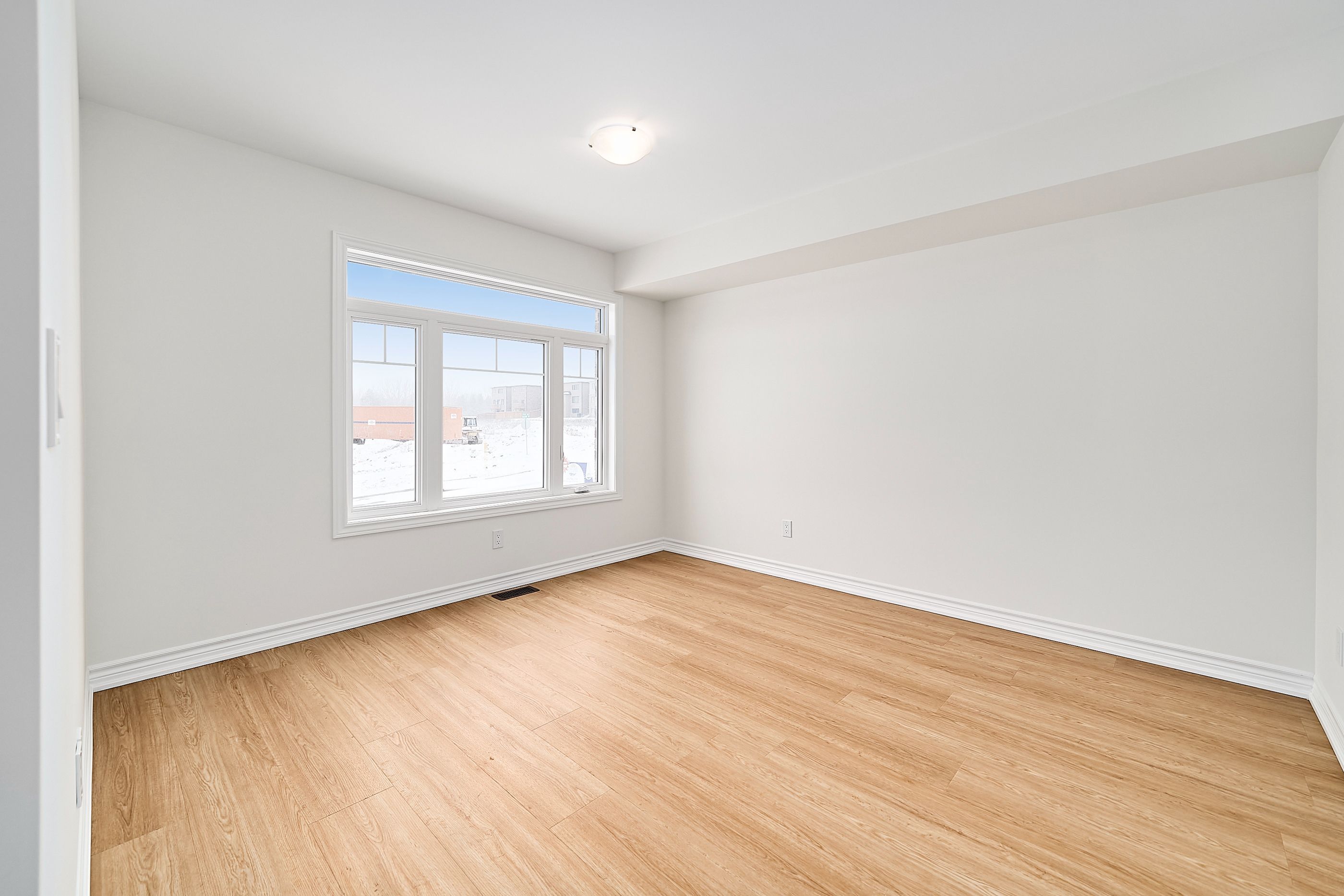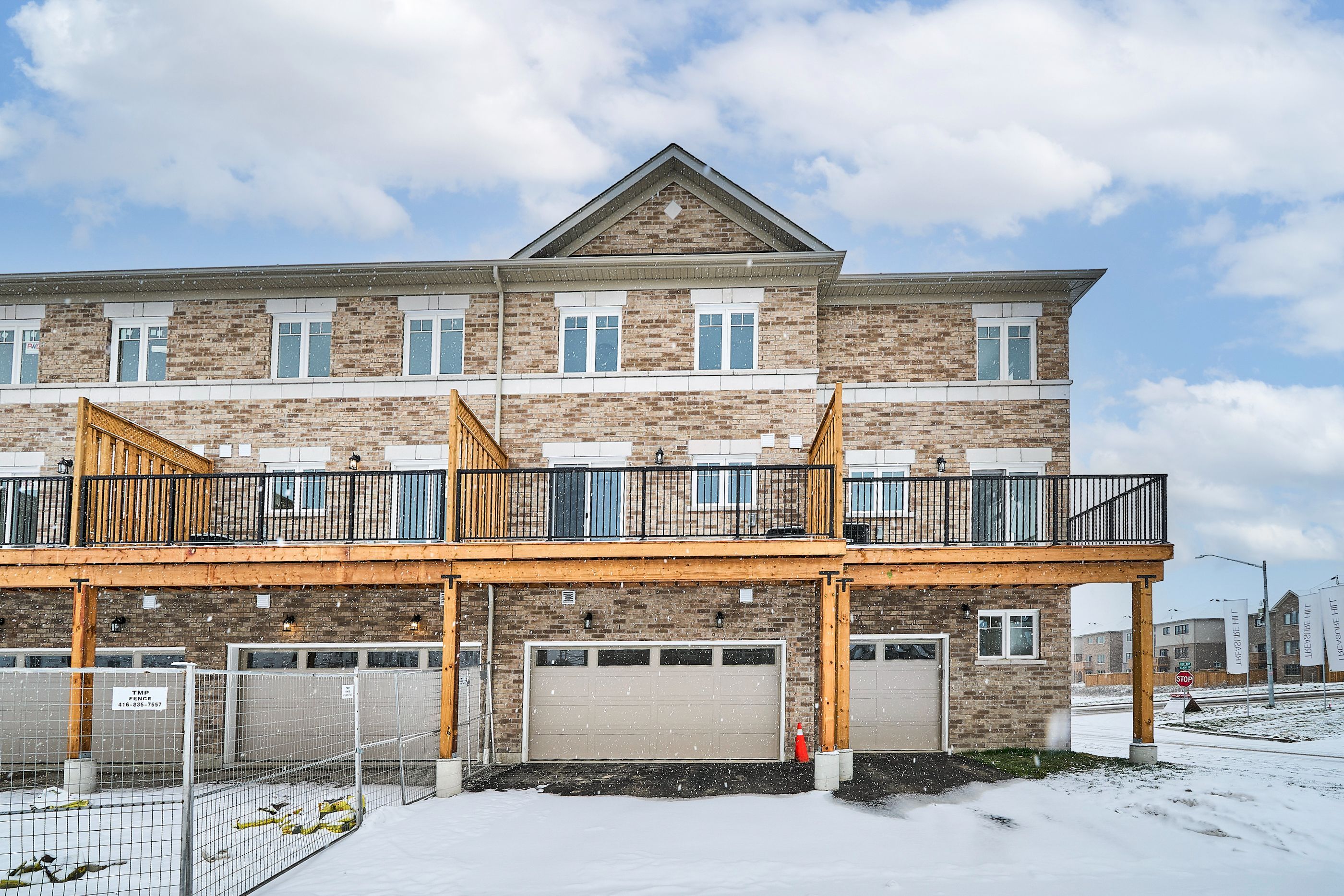 Welcome to newcastles premier "towns of belmont" community by graycraft homes ! Ultimately an enclave of 105 residences, all refreshingly different ! This all brick kingsley t-4 model townhome boasts 1903 finished sq ft plus basement and storage. The rare to find double garage with direct house entry and 2 car driveway under the 19 x 8 ft balcony.(4 car parking total) will sure to please. You will find modern and energy efficient design,with quality finishes and features thruout. Solid oak stair cases with iron pickets, smooth ceilings, low e argon vinyl windows, insulated garage door, fiberglass front door, luxury plank vinyl flooring, and plush broadloom on the bedroom level, just to name a few. Lots of natural light thruout with large windows and east west exposure. The large main floor has a picture window with western views and the eat in kitchen features quartz counter tops, stainless dbl undermount sink, designer 2 tone paint scheme and water-line for a fridge a convenient sliding walk-out to the 19 x 8 ft terrace.( think sunny morning coffee spot or shaded evening bbq"s. ) the pleasing flow of the space accomodates ample dining room and living rooms options plus a convenient powder room. Step saving upper floor laundry room w/ ceramic floor and drain, the primary ensuite features ceramic flooring and a double wide ceramic and glass shower, main bath features a one piece acrylic tub and shower with overhead light and ceramic floors. Walk in from garage level to the foyer with double coat closet and finished rec room or perhaps perfect home office plus a large utility/storage room. Convenient front door access for quiet comings and goings. The unfinished basement features a look out window and ample storage ( rare in townhomes ) close to the 401, the 115 hiways leading to 407 link. Walking distance to downtown newcastle and diane hamre recreation hub. Many schools and walking trails and parks nearby