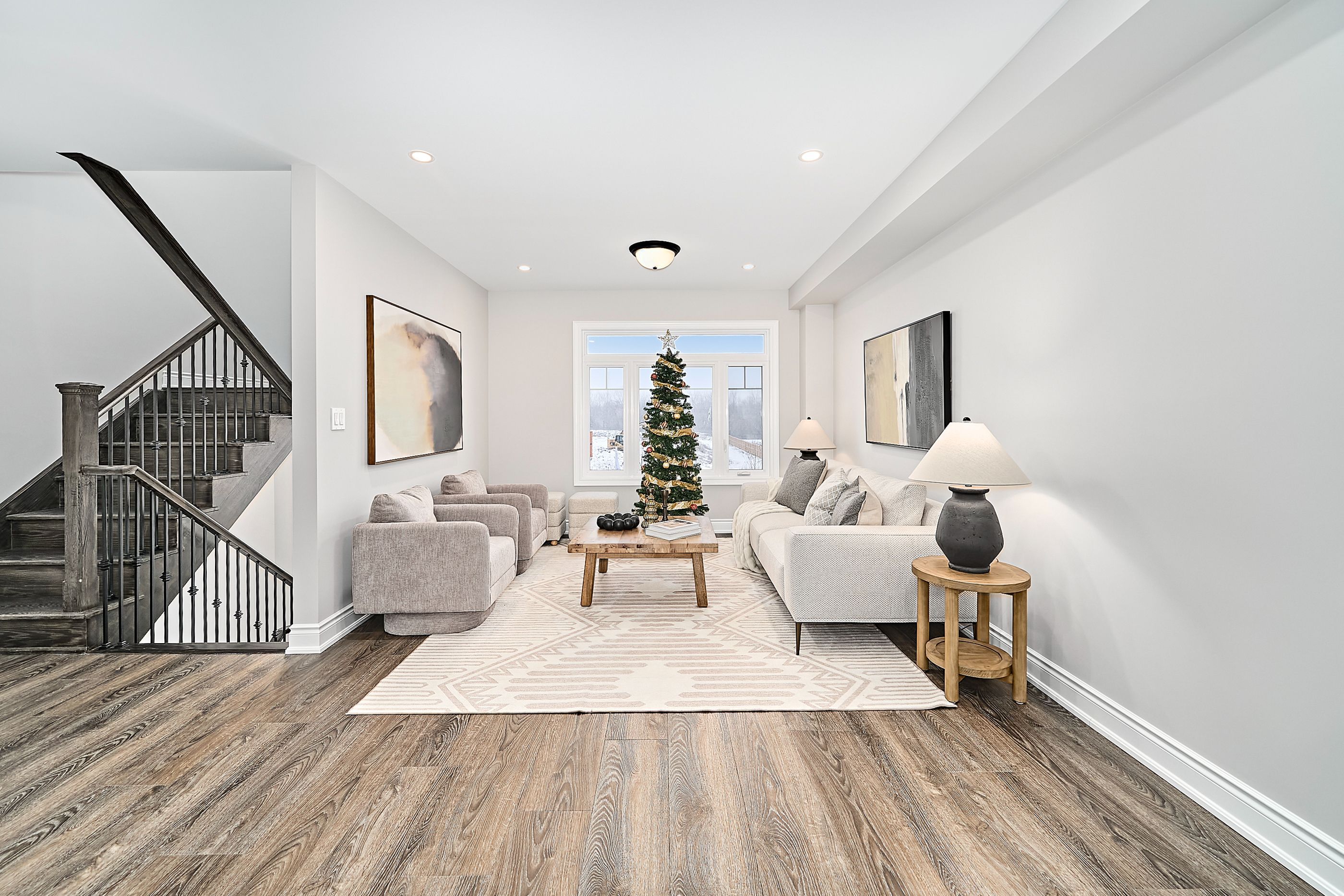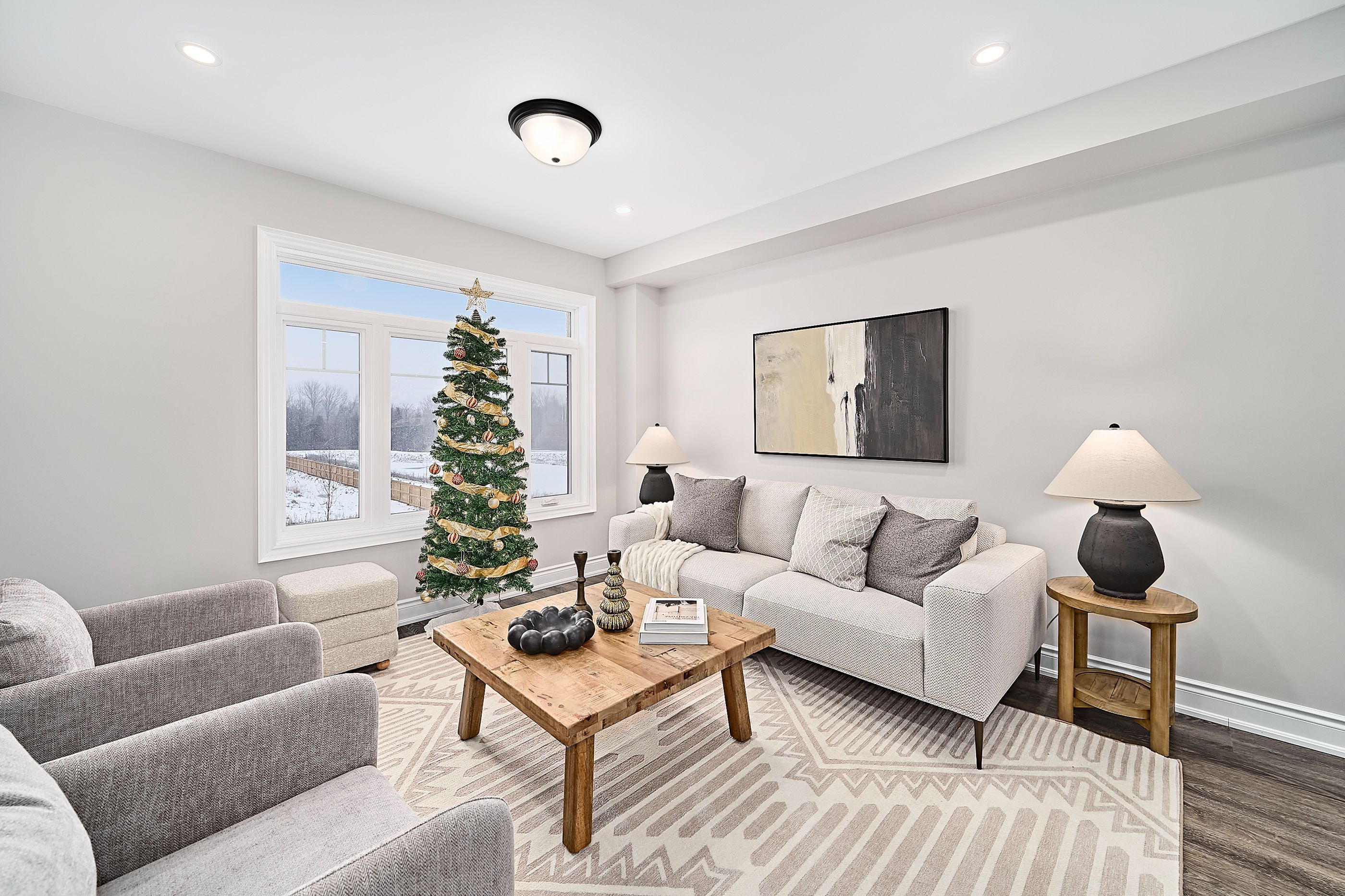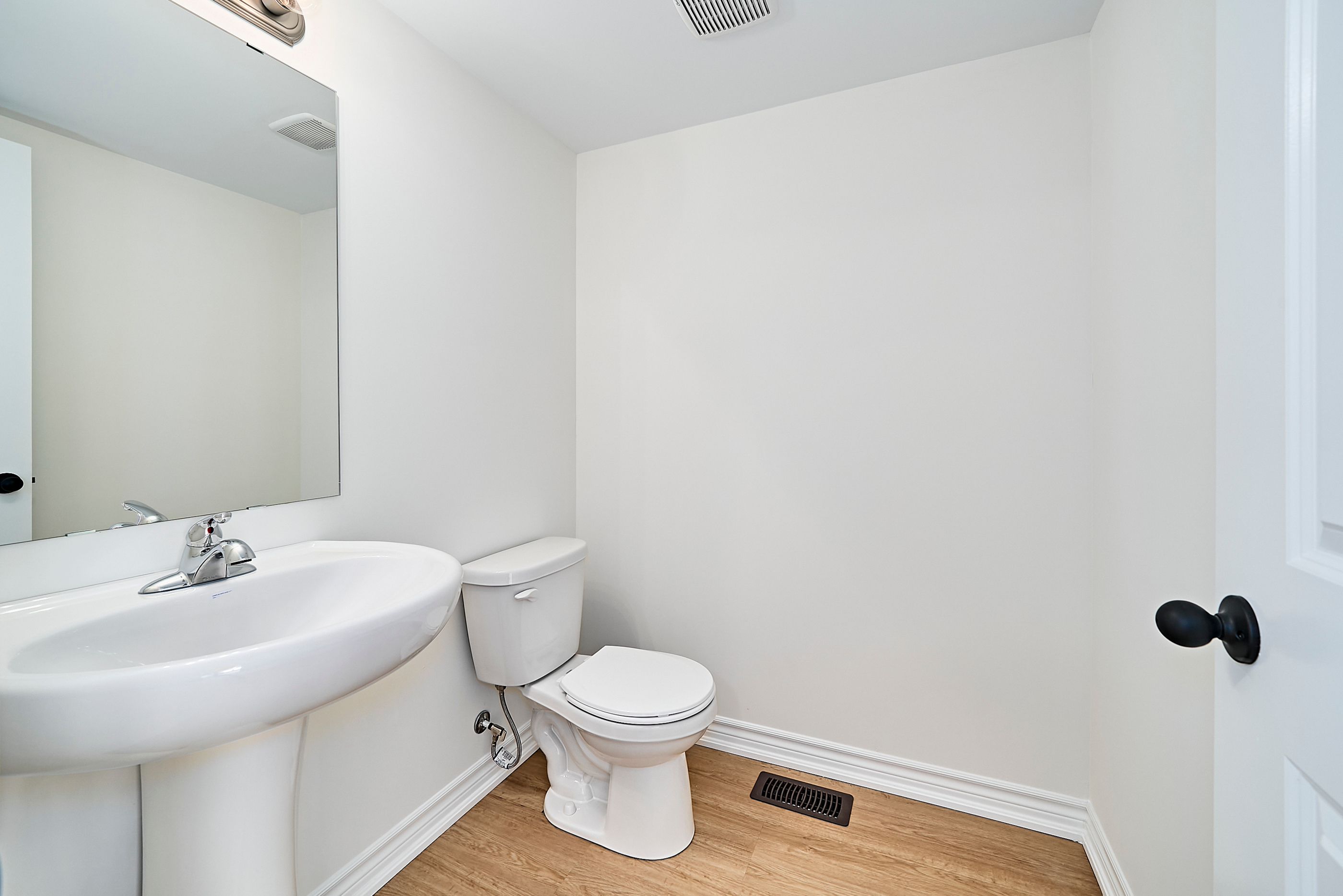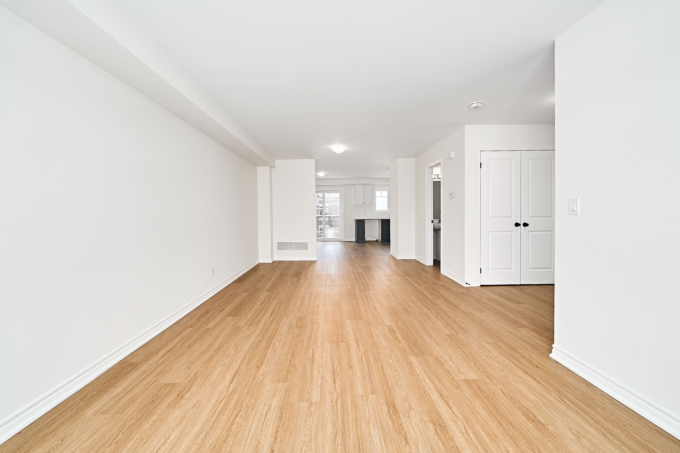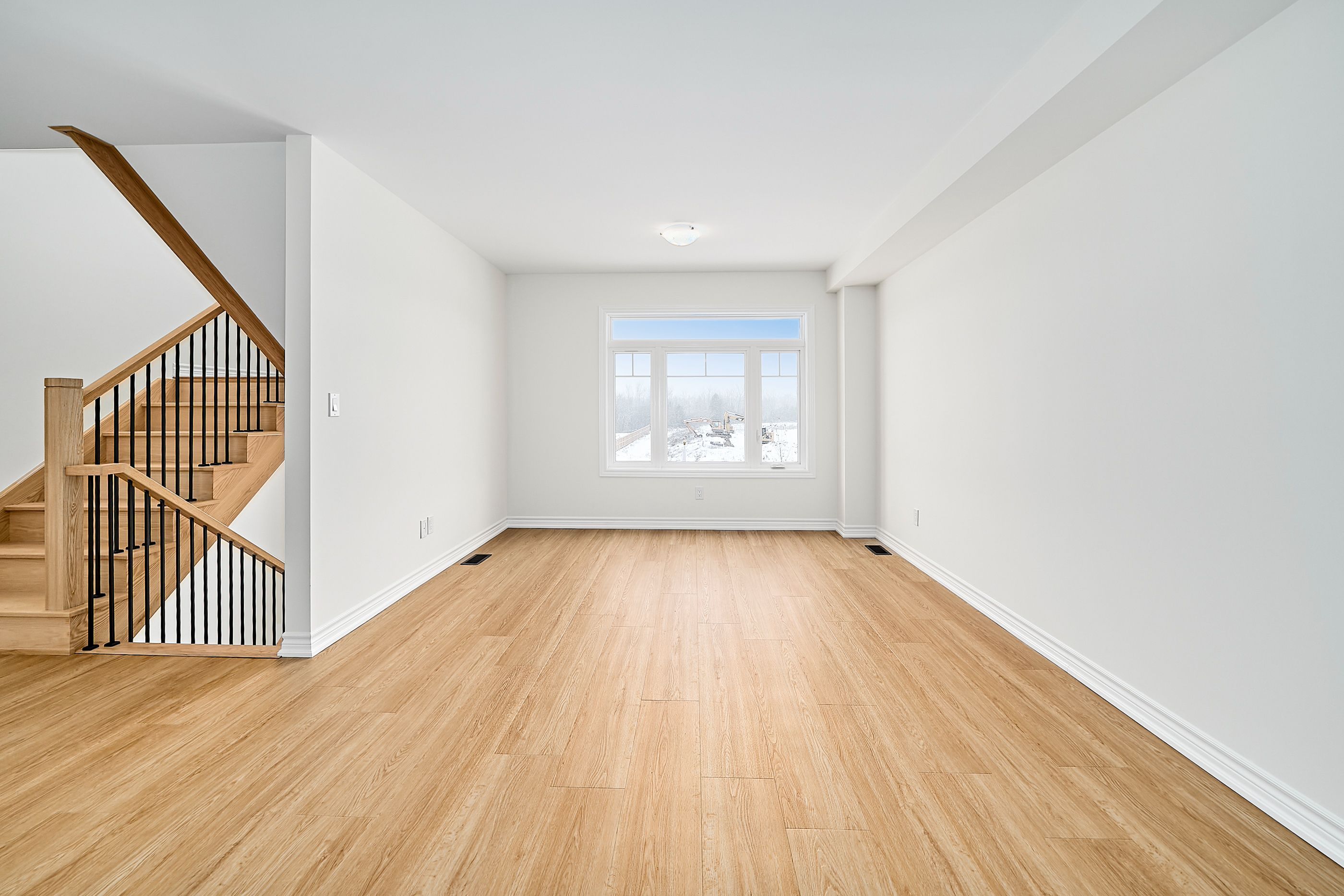 Welcome to newcastles premier "towns of belmont" community by graycraft homes ! Ultimately an enclave of 105 residences, all refreshingly different ! This all brick kingsley t-4 model townhome boasts 1903 finished sq ft plus basement and storage. The rare to find double garage with direct house entry and 2 car driveway under the 19 x 8 ft balcony.(4 car parking total) will sure to please. You will find modern and energy efficient design,with quality finishes and features thruout. Solid oak stair cases with iron pickets, smooth ceilings, low e argon vinyl windows, insulated garage door, fiberglass front door, luxury plank vinyl flooring, and plush broadloom on the bedroom level, just to name a few. Lots of natural light thruout with large windows and east west exposure. The large main floor has a picture window with western views and the eat in kitchen features quartz counter tops, stainless dbl undermount sink, designer 2 tone paint scheme and water-line for a fridge a convenient sliding walk-out to the 19 x 8 ft terrace.( think sunny morning coffee spot or shaded evening bbq"s. ) the pleasing flow of the space accomodates ample dining room and living rooms options plus a convenient powder room. Step saving upper floor laundry room w/ ceramic floor and drain, the primary ensuite features ceramic flooring and a double wide ceramic and glass shower, main bath features a one piece acrylic tub and shower with overhead light and ceramic floors. Walk in from garage level to the foyer with double coat closet and finished rec room or perhaps perfect home office plus a large utility/storage room. Convenient front door access for quiet comings and goings. The unfinished basement features a look out window and ample storage ( rare in townhomes ) close to the 401, the 115 hiways leading to 407 link. Walking distance to downtown newcastle and diane hamre recreation hub. Many schools and walking trails and parks nearby