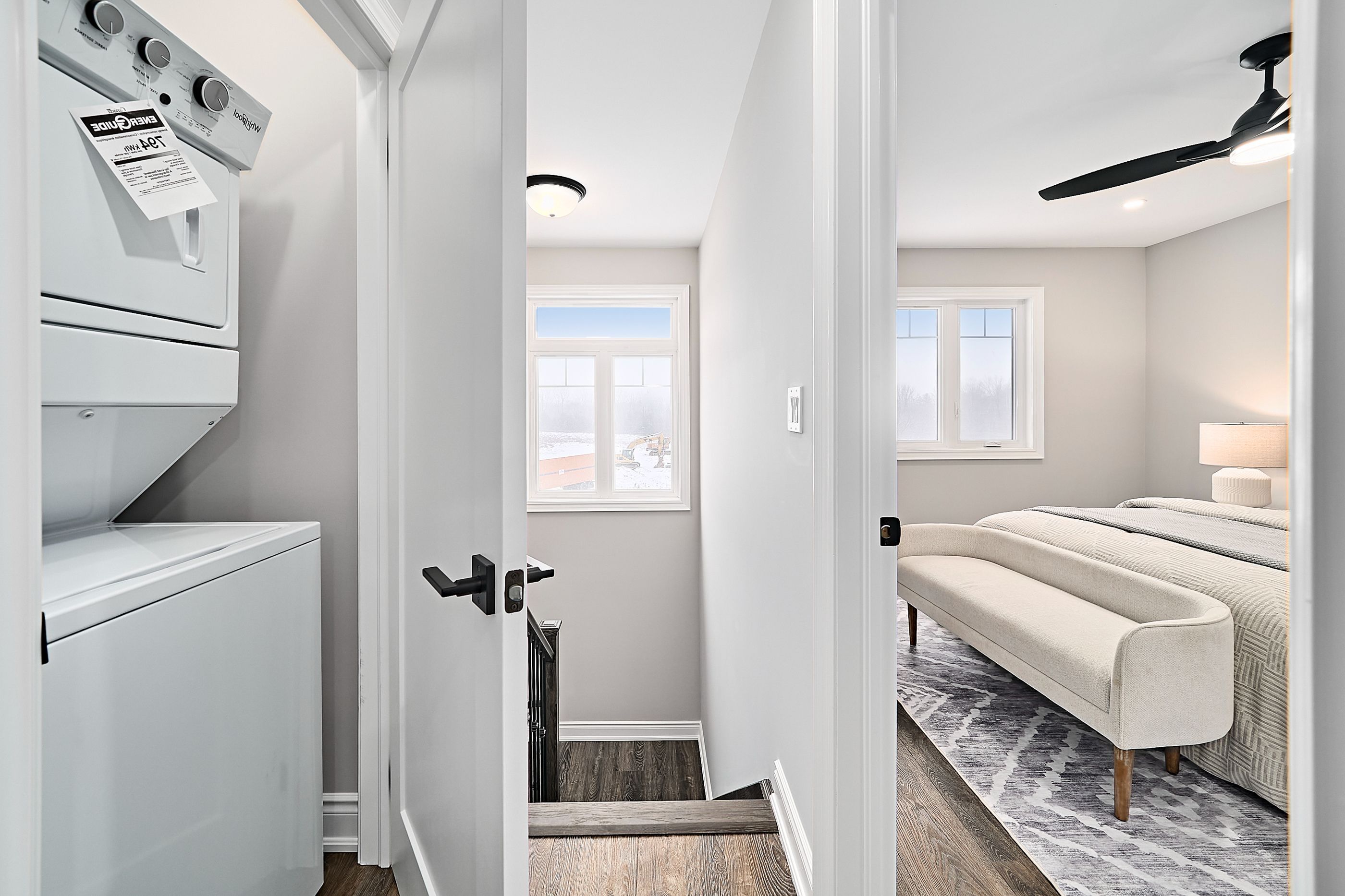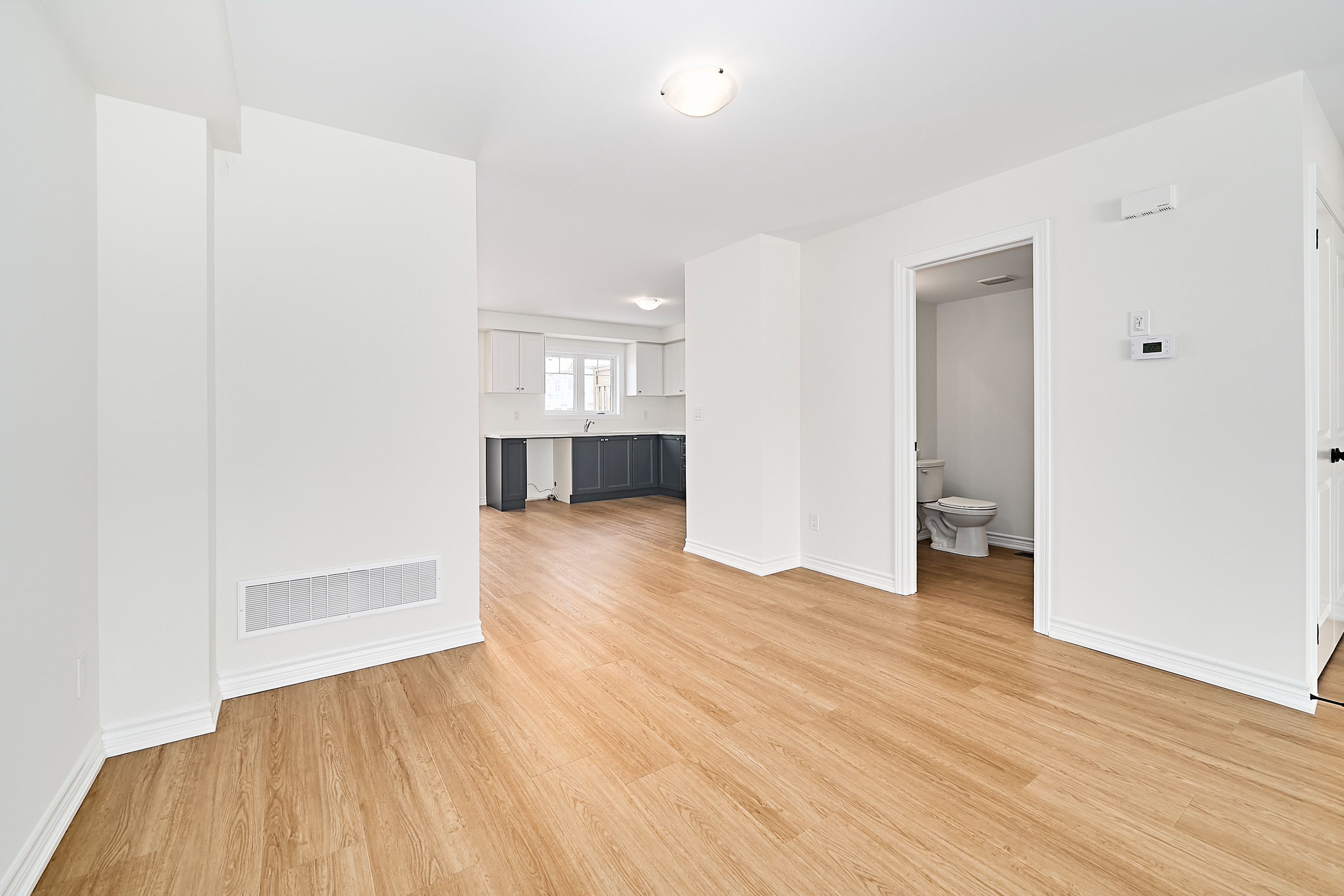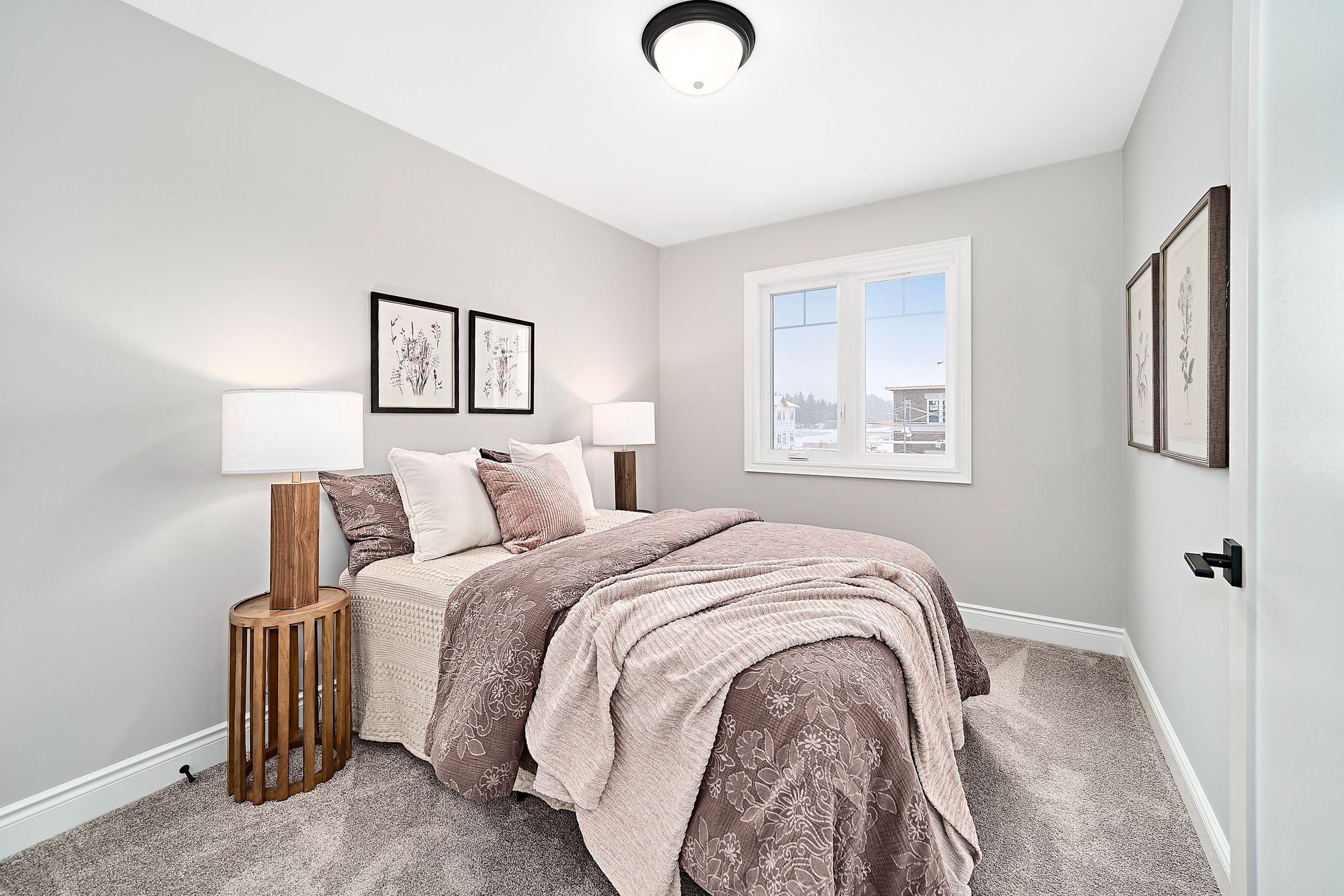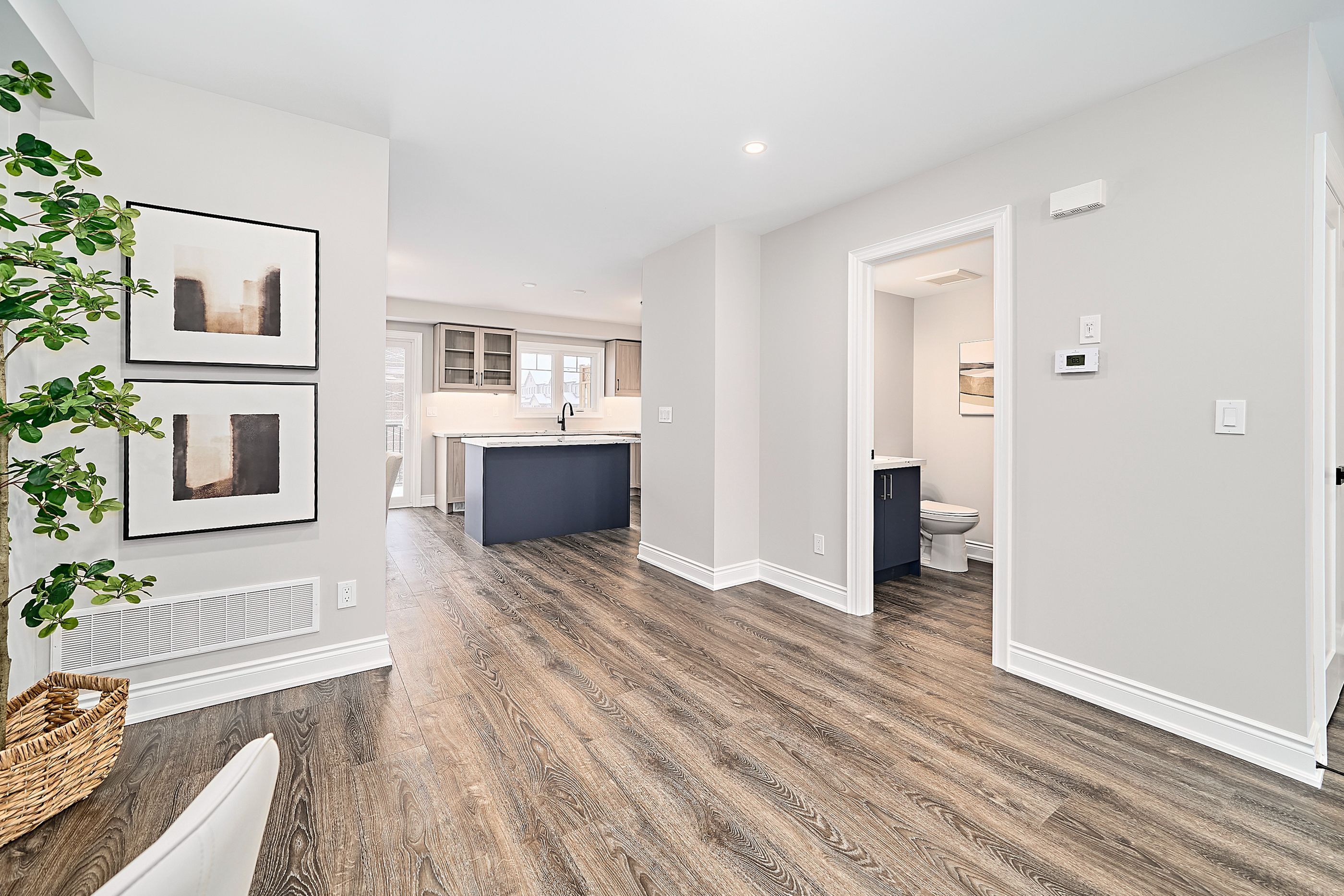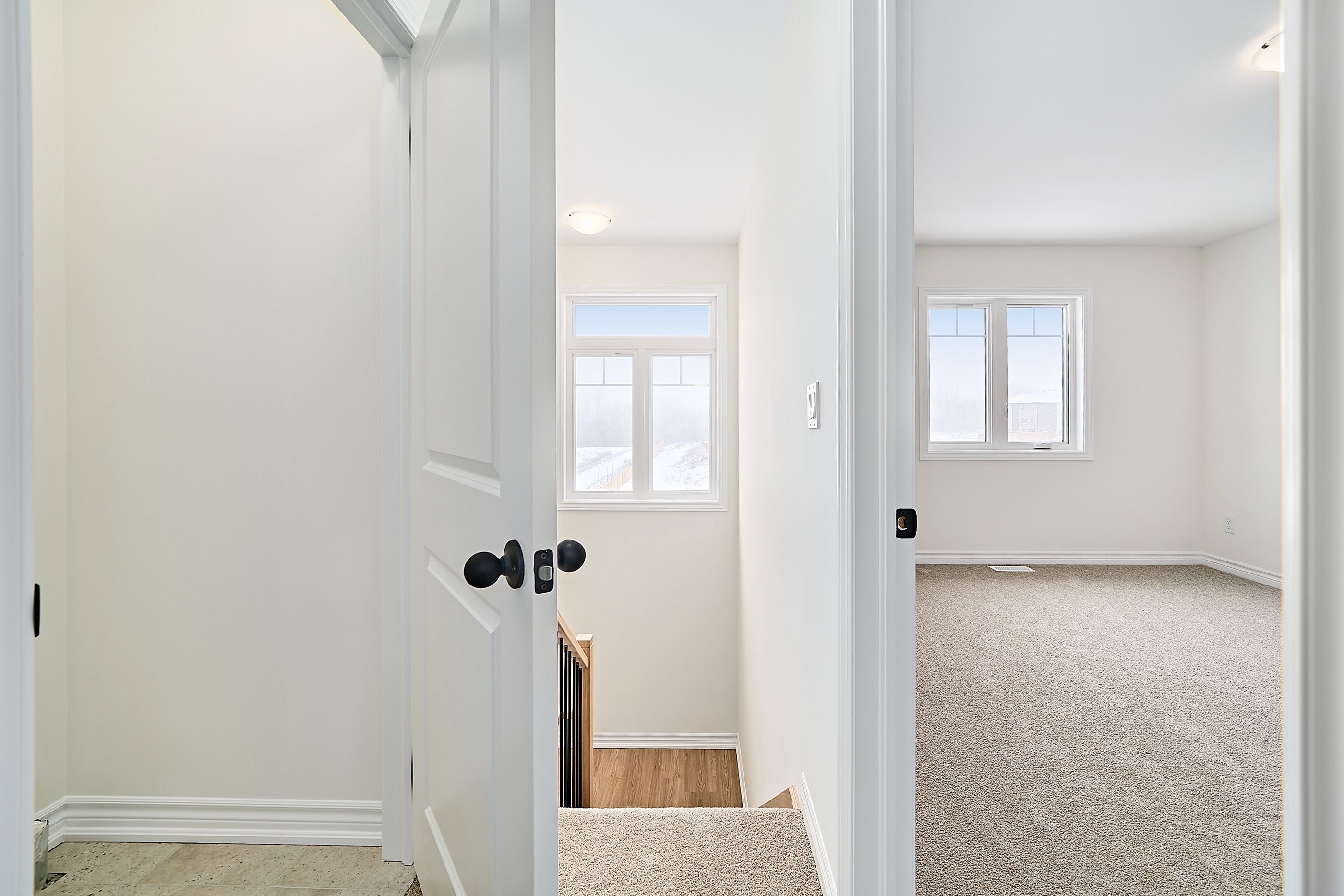Welcome to newcastles premier "towns of belmont" community by graycraft homes ! Ultimately an enclave of 105 residences, all refreshingly different ! This all brick kingsley t-4 model townhome boasts 1903 finished sq ft plus basement and storage. The rare to find double garage with direct house entry and 2 car driveway under the 19 x 8 ft balcony.(4 car parking total) will sure to please. You will find modern and energy efficient design,with quality finishes and features thruout. Solid oak stair cases with iron pickets, smooth ceilings, low e argon vinyl windows, insulated garage door, fiberglass front door, luxury plank vinyl flooring, and plush broadloom on the bedroom level, just to name a few. Lots of natural light thruout with large windows and east west exposure. The large main floor has a picture window with western views and the eat in kitchen features quartz counter tops, stainless dbl undermount sink, designer 2 tone paint scheme and water-line for a fridge a convenient sliding walk-out to the 19 x 8 ft terrace.( think sunny morning coffee spot or shaded evening bbq"s. ) the pleasing flow of the space accomodates ample dining room and living rooms options plus a convenient powder room. Step saving upper floor laundry room w/ ceramic floor and drain, the primary ensuite features ceramic flooring and a double wide ceramic and glass shower, main bath features a one piece acrylic tub and shower with overhead light and ceramic floors. Walk in from garage level to the foyer with double coat closet and finished rec room or perhaps perfect home office plus a large utility/storage room. Convenient front door access for quiet comings and goings. The unfinished basement features a look out window and ample storage ( rare in townhomes ) close to the 401, the 115 hiways leading to 407 link. Walking distance to downtown newcastle and diane hamre recreation hub. Many schools and walking trails and parks nearby