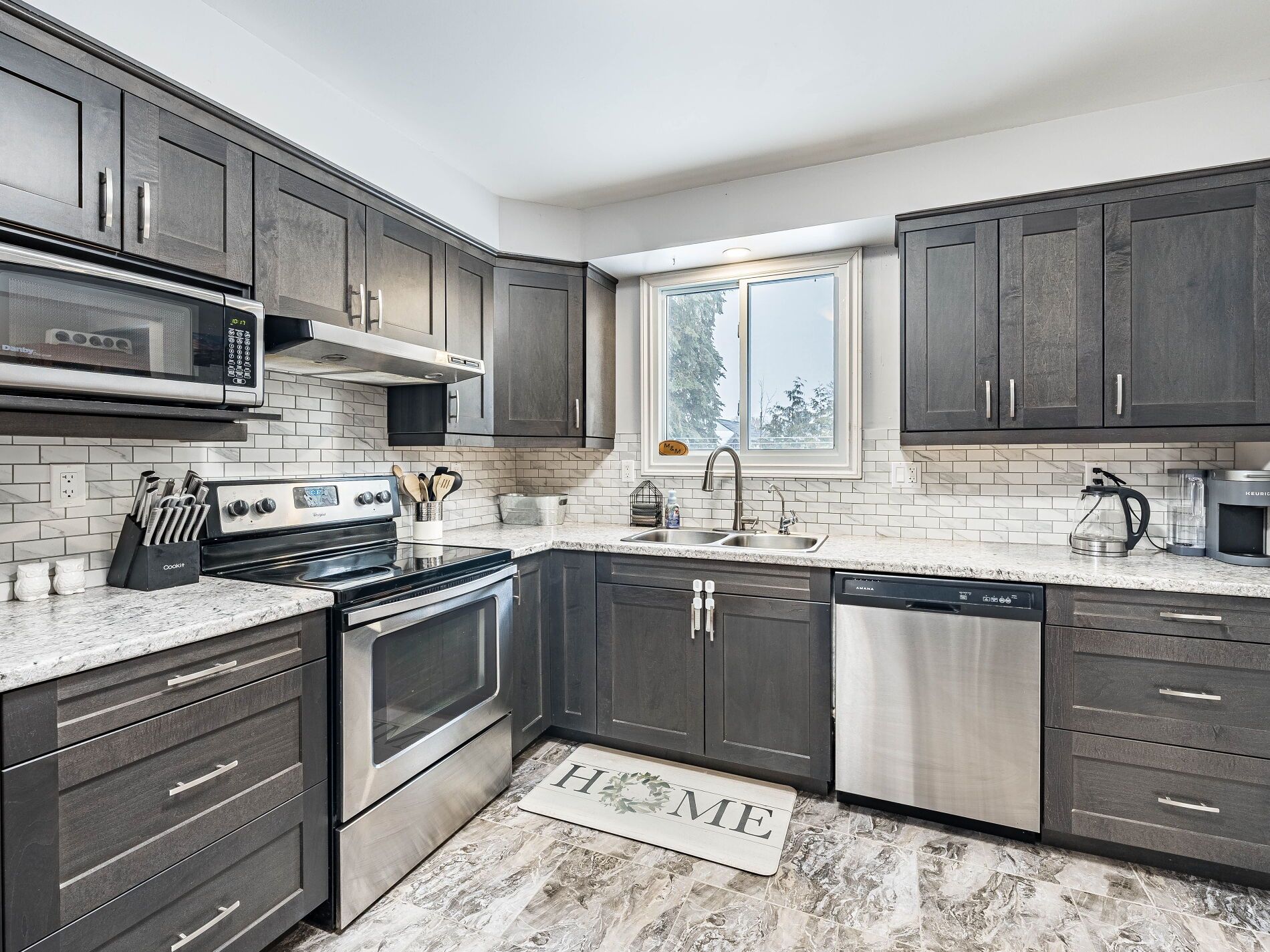 Welcome home! This beautifully updated, move-in ready 1,378 sq. Ft. Detached two-story home offers 3 bedrooms, 2. 5 bathrooms, and a large private lot on a quiet crescent in arthur. Thoughtfully renovated throughout, it blends timeless character with carefully planned modern upgrades. The bright main floor features updated laminate flooring (2022), a spacious living and dining area ideal for everyday living and entertaining, and a fully renovated kitchen (2020) with modern cabinetry, quality countertops, upgraded appliances, and refined finishes. A custom built-in cubby adds functional storage. Upstairs, a custom office nook with built-in shelving maximizes hallway space for work-from-home convenience. The upgraded 3-piece bathroom (2020) features heated floors for added comfort. Refinished original hardwood (2022) leads to the generous primary suite with an updated ensuite (2023) and ikea pax closet system. Two additional large bedrooms with new carpet (2022) provide ample space for family or guests. The fully finished modern basement (2024) expands your living space with a bright rec room featuring pot lights and additional storage. A separate study/gym with french doors, closet, and window can easily convert to a fourth bedroom. The utility room includes a modern 2-piece laundry set and space for a small workbench. Enjoy summer in the large fenced backyard with a concrete patio, bbq area, pergola (2024), and storage shed. Major updates provide peace of mind: new drywall, painted walls and trim, interior and closet doors, staircase refinishing (2022), updated light fixtures throughout, wi-fi thermostat (2023), wireless doorbell, furnace (2023), heat pump (2023), sump pump (2026), reverse osmosis water filtration and softener system, ring floodlight (2025), front garden and new trees (2023), and more. Detailed list available in listing documents.