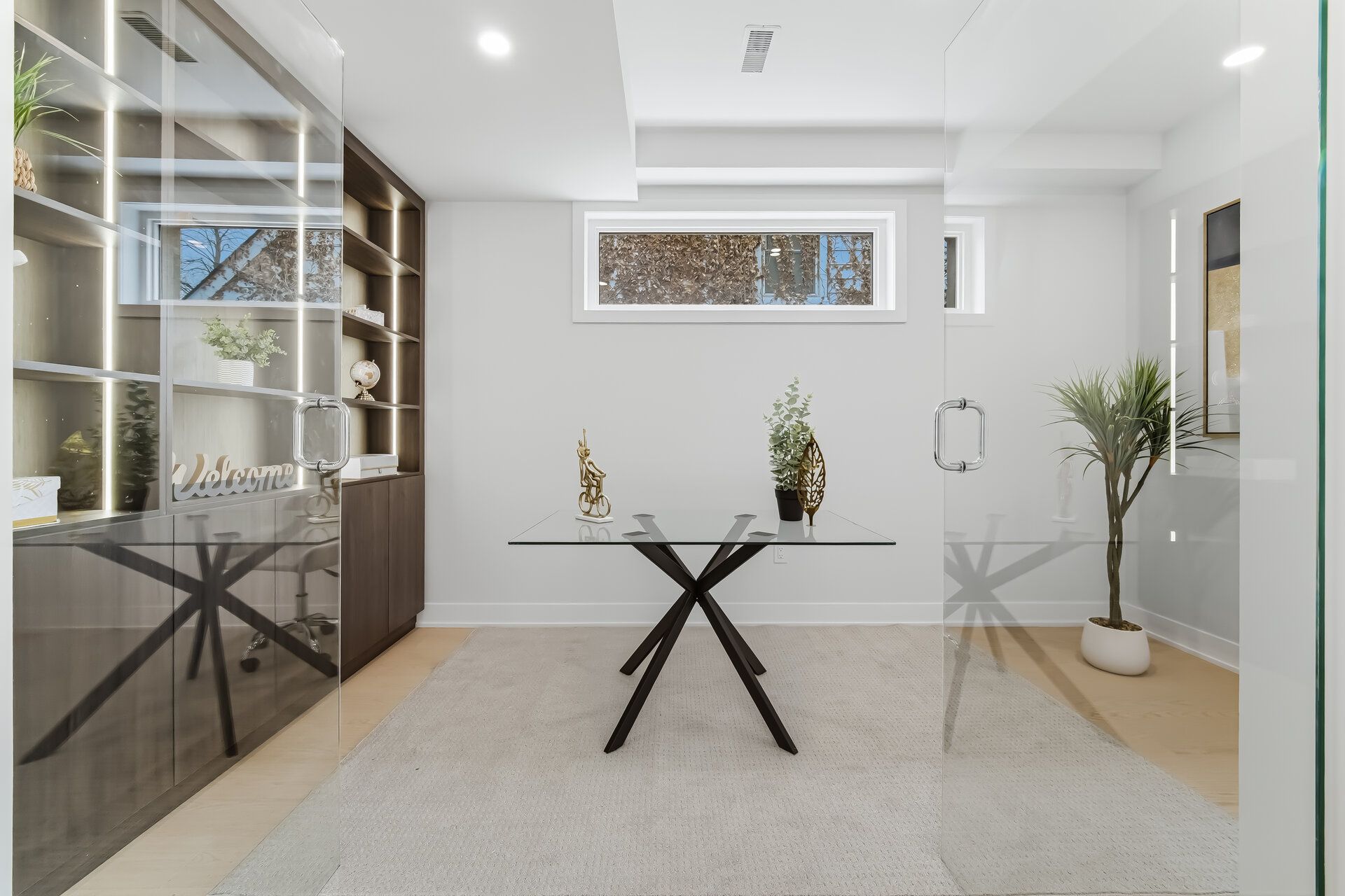 Rare opportunity to own a newly finished, custom-built detached masterpiece in highly coveted stonegate-queensway! This home defines luxury with superior finishes and a masterfully designed open-concept layout. The main floor features a private office with custom glass doors and a sprawling family room anchored by a sleek built-in multimedia cabinet. The chef's kitchen is a true showstopper, boasting premium built-in appliances, a massive center island, and a spacious dining area that flows seamlessly through oversized patio doors to a large wooden deck-perfect for entertaining. The second level is flooded with natural light from designer skylights in the hallway and primary closet. The primary retreat offers a spa-like sanctuary with heated floors, a deep soaker tub, a large glass shower, and two generous walk-in closets. Two additional bedrooms share a functional jack-and-jill bath, while the fourth bedroom enjoys its own private ensuite. Second-floor laundry adds ultimate convenience for modern living. The registered basement apartment provides incredible rental potential to supplement income or serves as an exclusive in-law suite, featuring 2 bedrooms, 2 bathrooms, a large great room, a full kitchen, and its own separate laundry room. Outside, you'll find a rare detached double garage and a large driveway providing parking for multiple vehicles. Exceptional location with top-rated schools nearby. You are just minutes from premium shopping, fine dining, and the mimico go station. Commuting is effortless with quick qew access and a short 15-minute drive to both billy bishop and pearson international airports. This home offers the perfect balance of great finishes, rental potential, and exclusive living in one of etobicoke's most sought-after pockets. A true turnkey gem that is rarely offered!