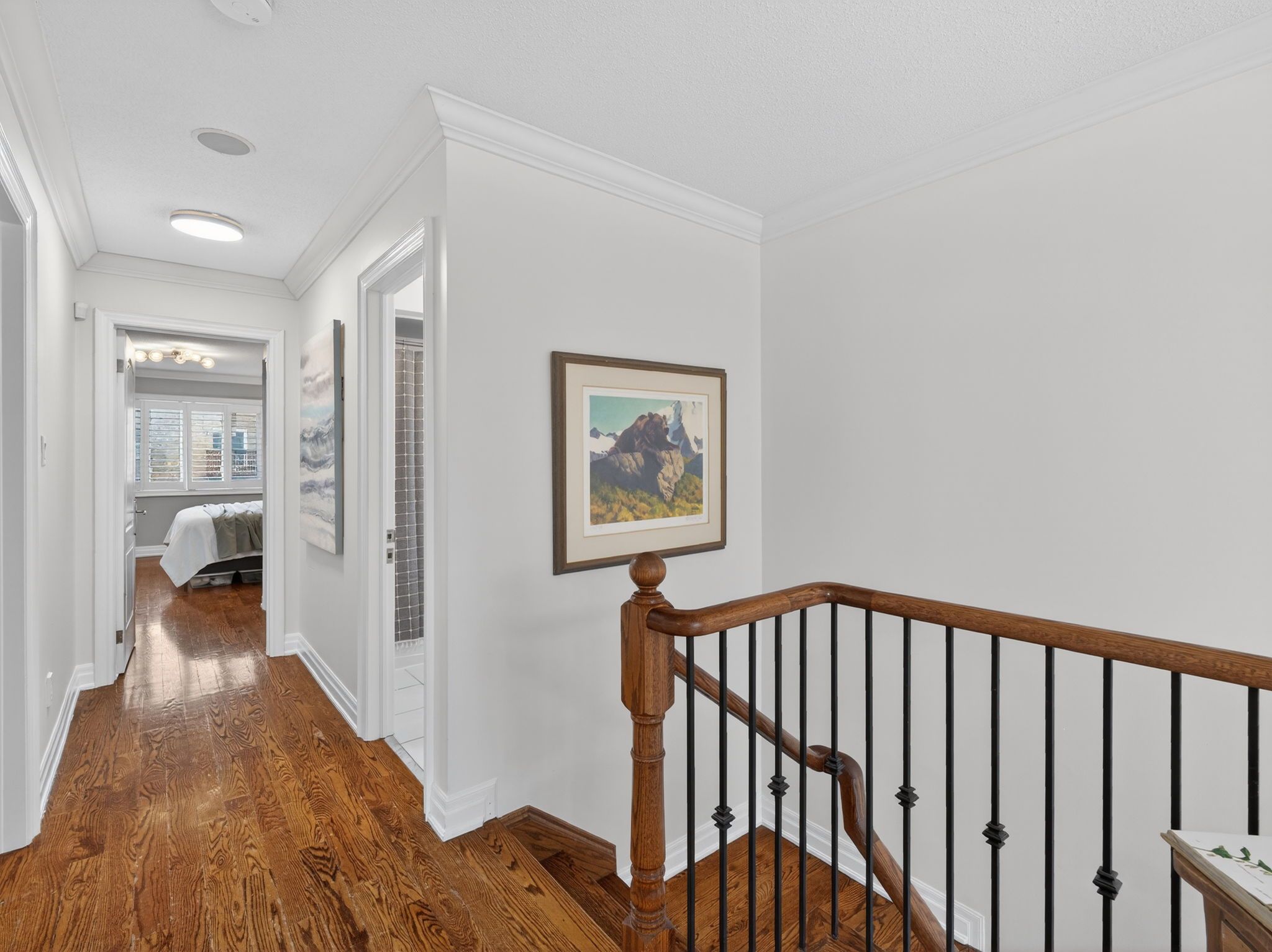 Beautiful detached home on a quiet, child-friendly crescent in a highly desirable family-oriented community. This charming and well-maintained residence is perfect for young families, offering a bright and spacious open-concept main floor ideal for everyday living and entertaining. Recently renovated, the kitchen features new stainless steel appliances, quartz countertops, and a functional layout with a walk-out to a large backyard-perfect for outdoor dining, kids, and summer gatherings. The seamless flow between the kitchen and living areas creates a warm and inviting atmosphere throughout the home. The upper level offers generously sized bedrooms, including a spacious primary retreat complete with hardwood floors, a walk-in closet, and a 4-piece ensuite. A dramatic 2-storey foyer with cathedral ceiling welcomes you upon entry and provides direct access to the garage, adding both style and convenience. The fully finished lower level expands your living space with a huge recreation room featuring a gas fireplace and an awesome built-in wet bar-perfect for entertaining guests, hosting game nights, or relaxing with family. Offering approximately 2,400 sq ft of total living space, this home combines comfort, functionality, and value in an exceptional location. Just minutes to hwy 400, top-rated schools, parks, golf courses, public transit, shopping, and restaurants. A fantastic opportunity to own a move-in ready home in a sought-after neighbourhood-ideal for growing families.