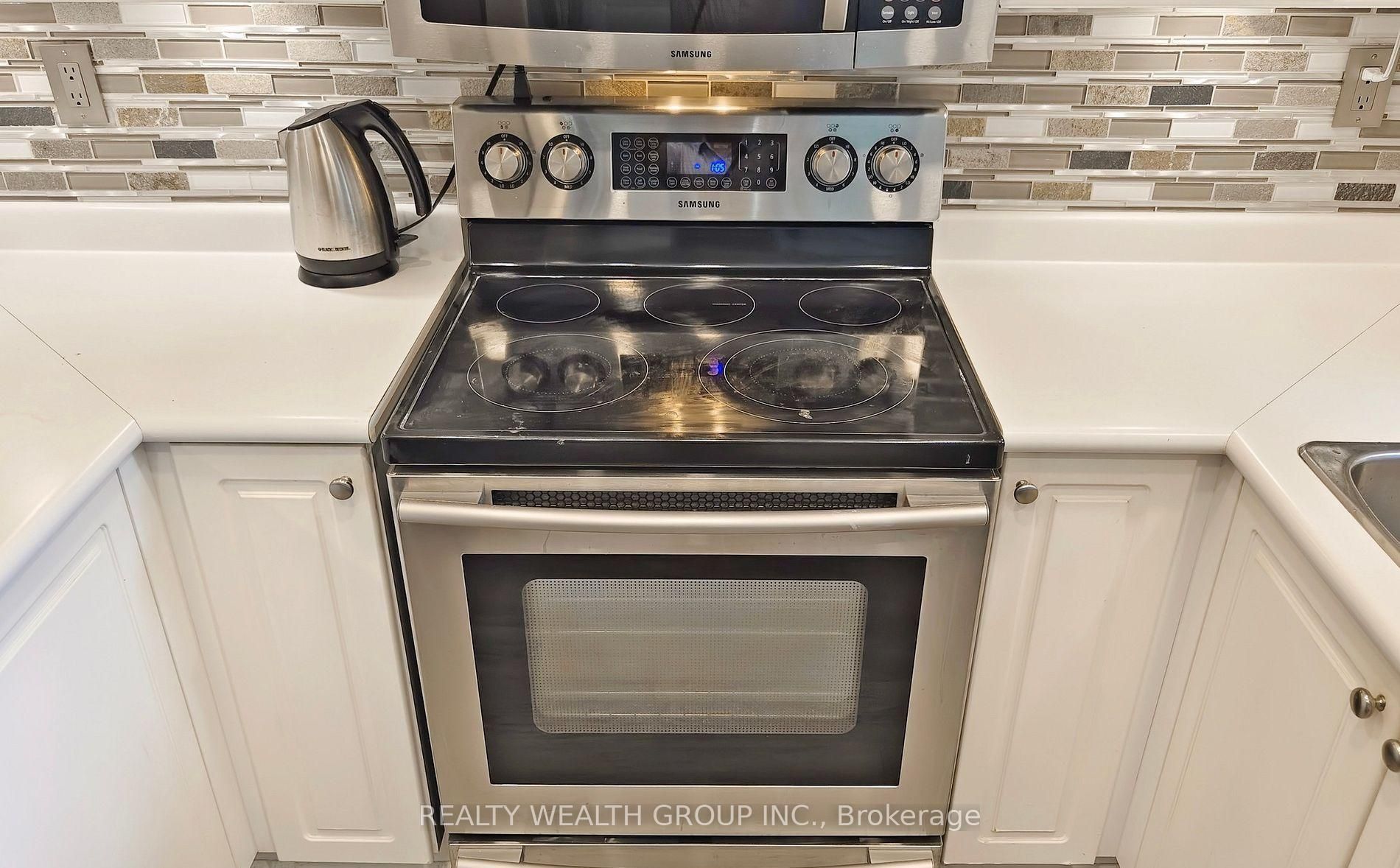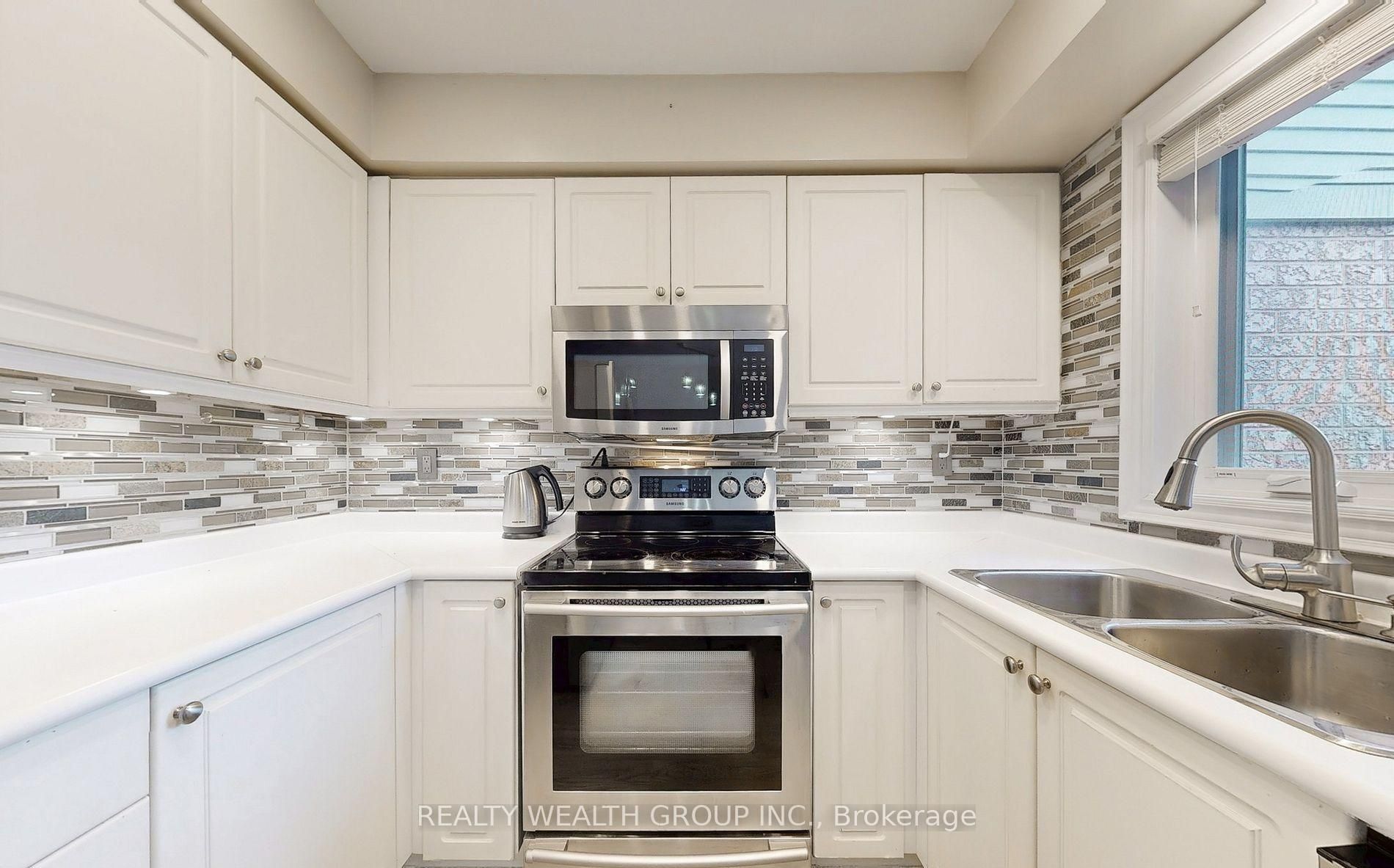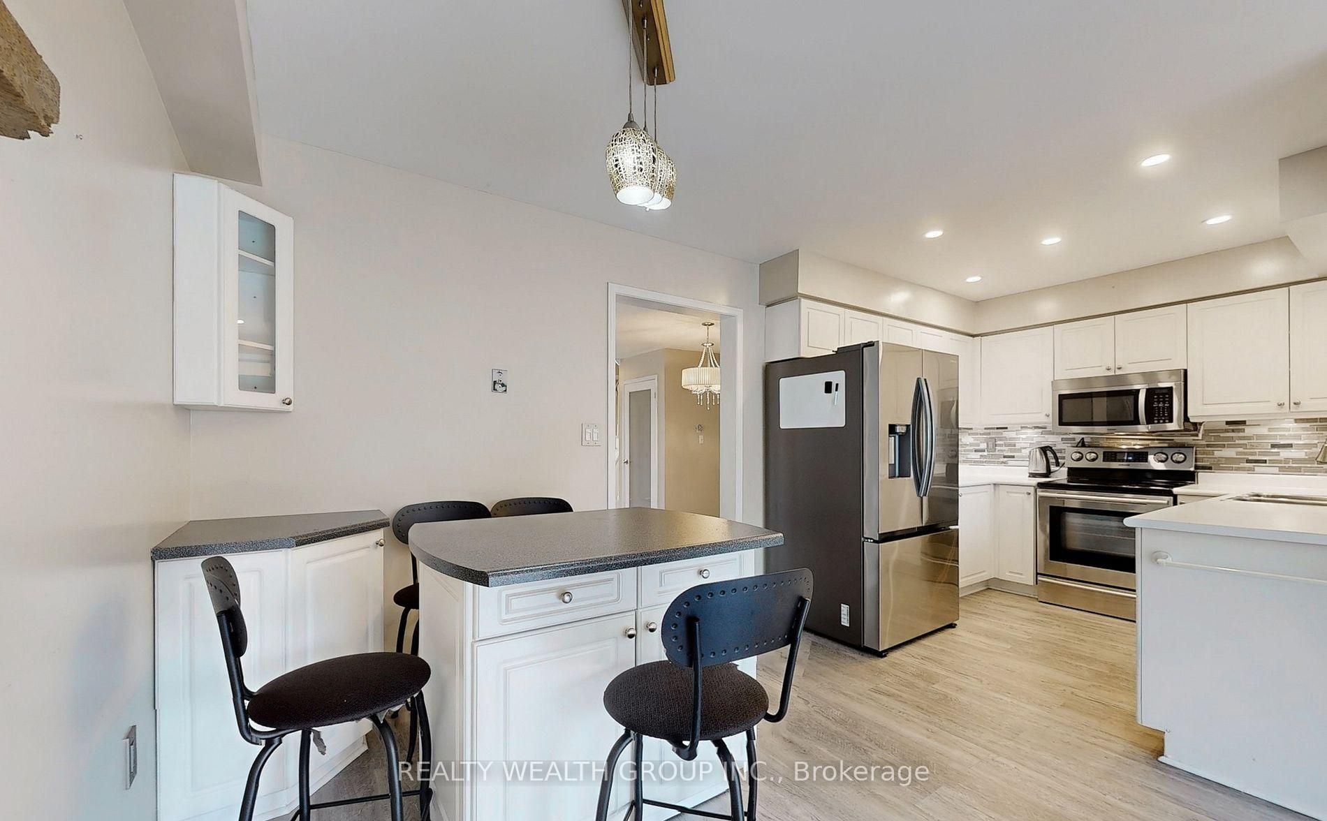 • Modern kitchen features stainless steel appliances and bright breakfast area.