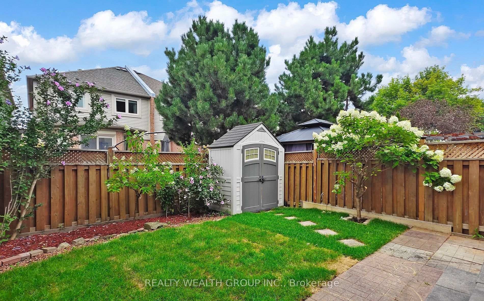 • Fully fenced backyard with garden shed for storage and outdoor activities.