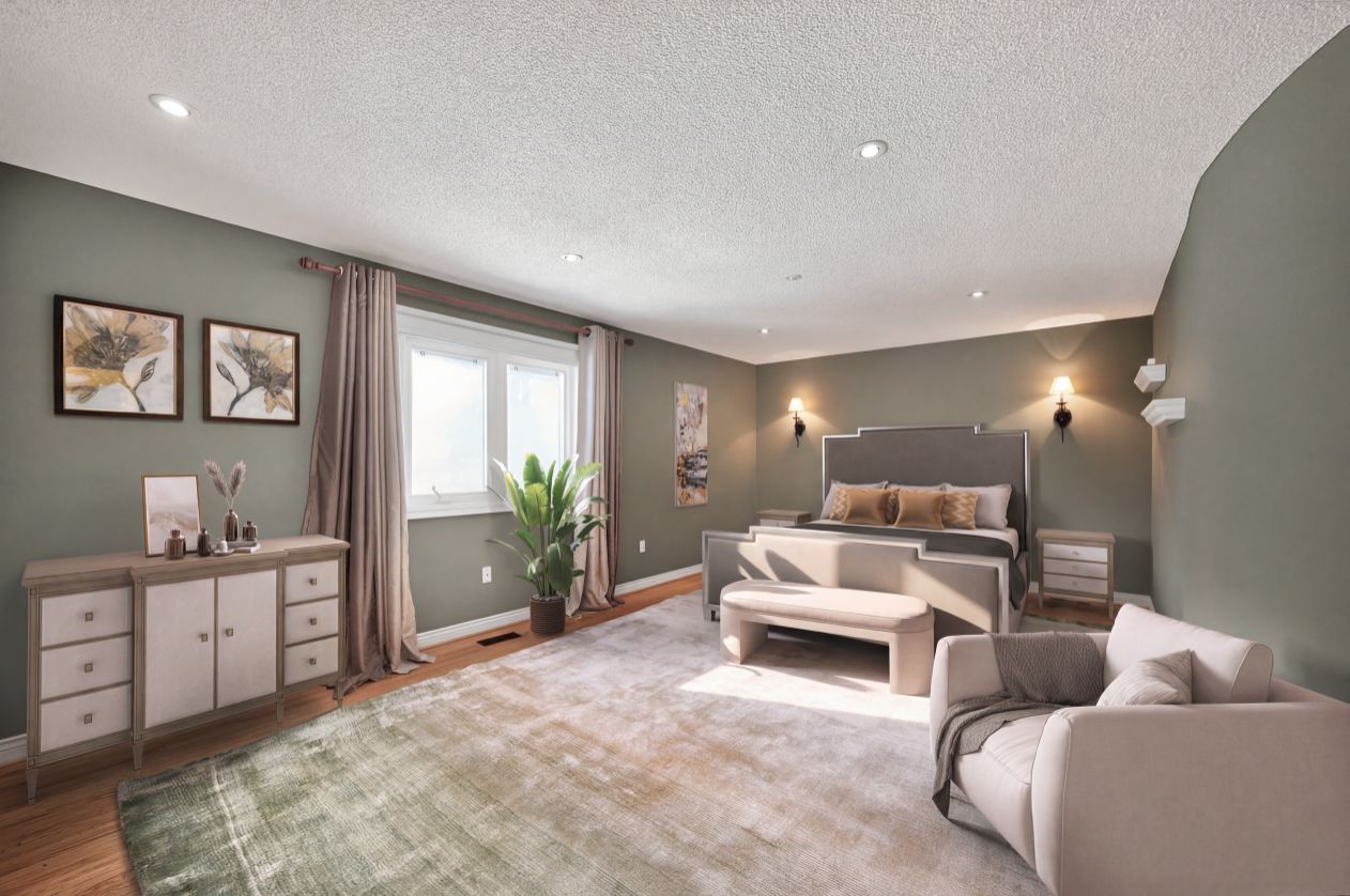 • Large primary suite with walk-in closet and private ensuite bathroom.