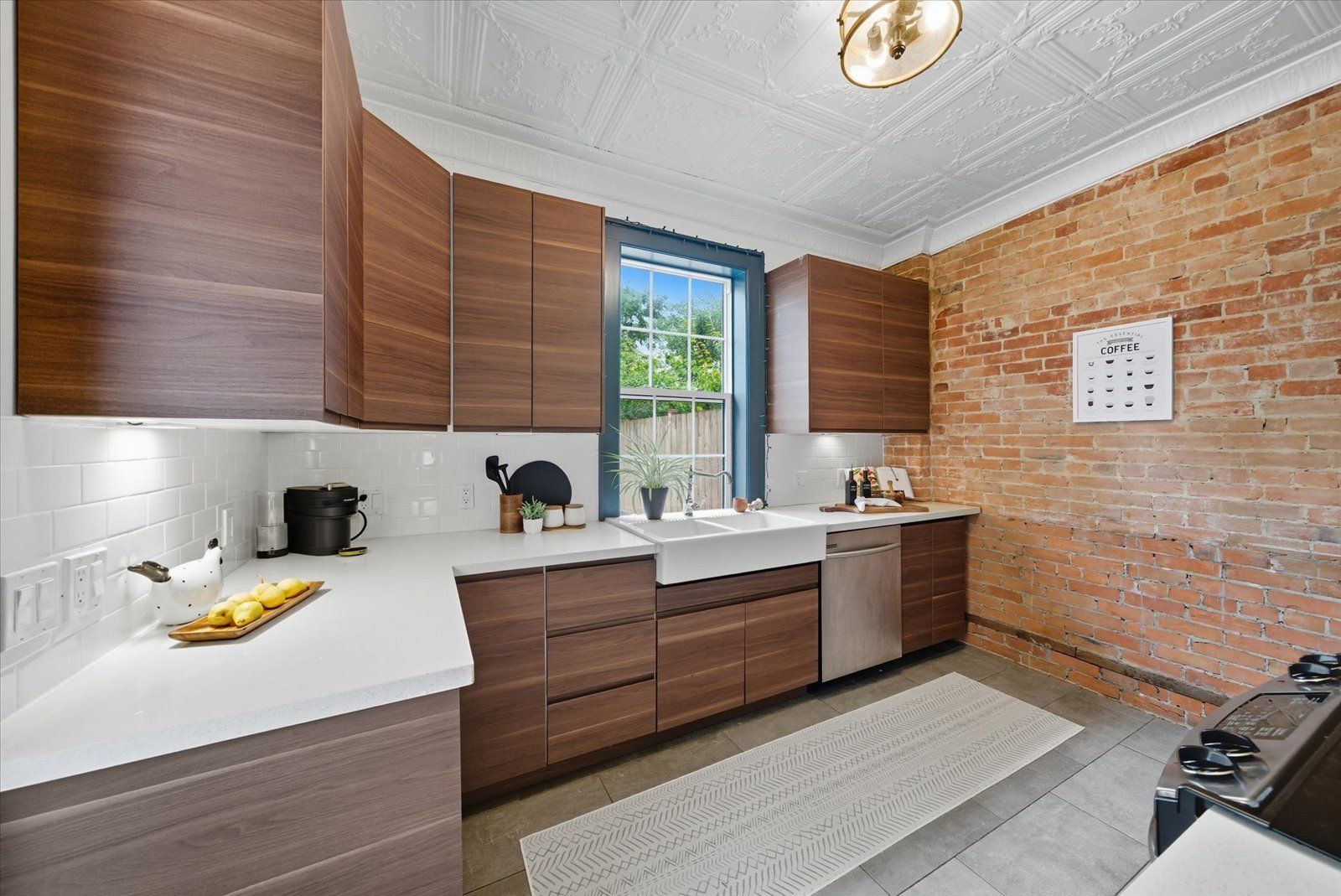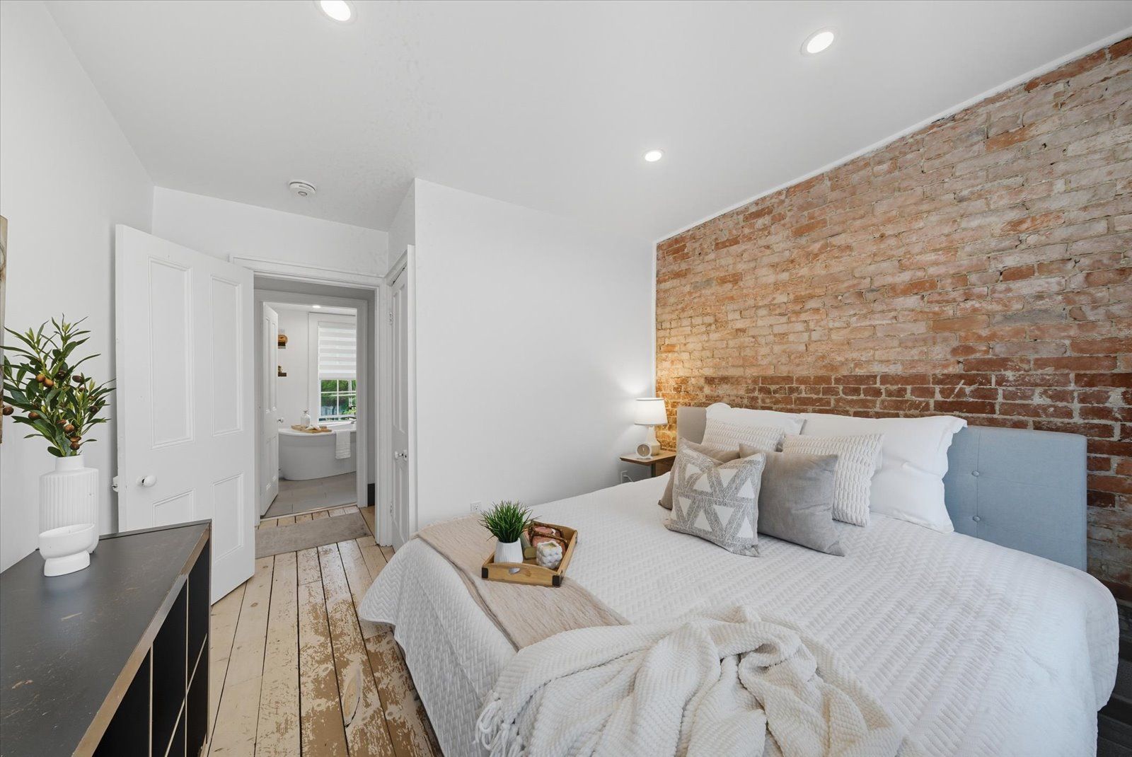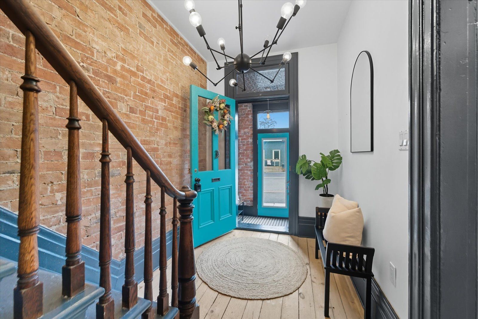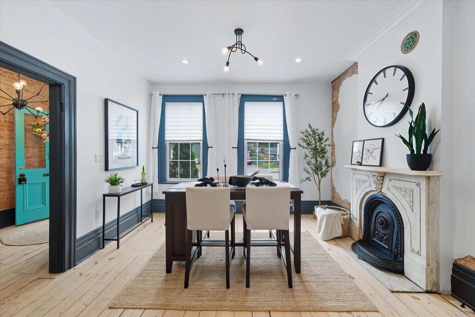 In the heart of port hope's beloved *old town*, built in the mid nineteenth century, this residence is a rare opportunity to own a piece of history-where timeless architecture meets thoughtful restoration. Set amongst a vibrant community, the streets are lined with some of the most well preserved architectural designs; known for its theatre, cafes, local boutiques and a sense of small town charm that thrives until this day. Front the moment you enter, the attention to detail is undeniable. A welcoming vestibule showcases a mosaic tile floor, pendant lighting, and a classic tin ceiling that sets the tone for the home's elegant blend of old and new. Soaring 10ft ceilings, original pine plank flooring and 12 inch baseboards preserve its historic elegance, while modern luxuries add effortless sophistication. The open-concept living and dining space flows seamlessly into a custom kitchen featuring quartz countertops, under-mount lighting, a farmhouse sink and a crisp backsplash that ties it all together. Exposed brick walls and heated flooring run throughout the home ensuring warmth and comfort, while the main floor laundry provides everyday convenience. Follow the original wooden staircase to 3 sun filled bedrooms and a spa like bathroom that comes complete with a large glass shower, heated ceramic tile and a freestanding tub... The perfect retreat after a long day! Outside, a spacious deck invites barbecues, morning coffee, or evenings of entertaining. Whether gathering with friends or enjoying a peaceful retreat, this home offers it all! Roof (2019), windows (2017), street parking (parking out front, honor system amongst neighbours)! Allowed to park on street year round.