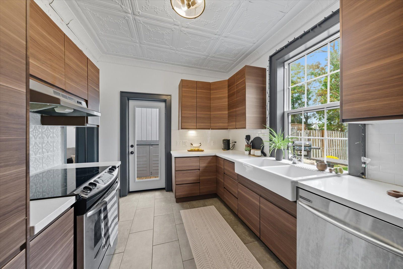 • Spacious open-concept living area with custom kitchen and quartz countertops.