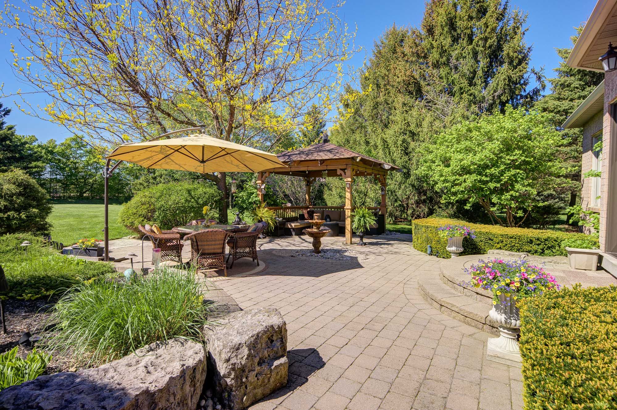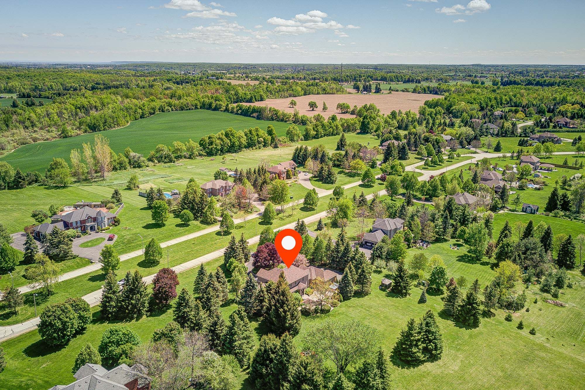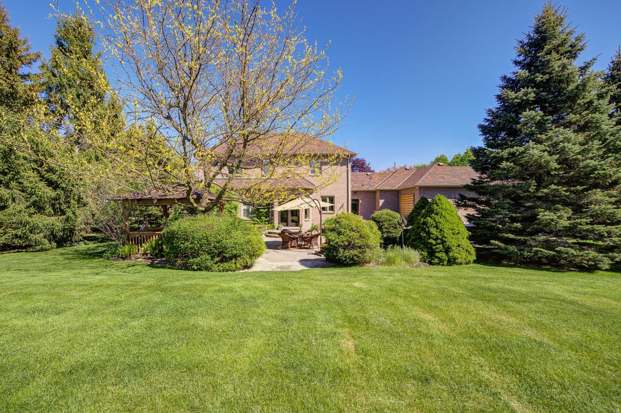 Set within the quiet, tree-lined enclave of st. George's glen, 11 bridlewood blvd rests on just over two acres of carefully kept land, where nature feels like part of the home itself. Mature trees frame the property, and beyond the backyard, a peaceful greenbelt stretches out, offering a sense of privacy that's increasingly rare. A sweeping circular driveway introduces the home with ease and intention, welcoming guests the way a home like this should. Stone and interlock details carry across the exterior, giving a timeless presence that feels both refined and grounded in its surroundings. Inside, more than 3,000 square feet unfolds with a layout designed not just for living, but for gathering. The family room invites conversation, the sunken living room offers a quiet place to unwind, and the formal dining area is ready for long, unhurried evenings. At the heart of it all, the kitchen opens effortlessly to the backyard, creating a natural rhythm between indoors and out. Upstairs, an oak staircase leads to four generously sized bedrooms, each finished with hardwood flooring and filled with natural light. The primary suite is a retreat of its own, complete with a walk-in closet fitted with built-in organizers and a five-piece ensuite where a glass shower and jacuzzi tub create a space to slow down at the end of the day. But it's outside where this home truly lingers in memory. The backyard is not simply a feature, it's an experience. Private and still, it has been shaped for every season. Summer evenings settle easily under the gazebo, the hot tub offers warmth as the air cools, and a custom fire pit becomes the natural gathering place under a sky full of stars. Whether hosting friends or enjoying a quiet moment alone, the space invites you to stay a little longer. This is a home that balances space with intimacy, elegance with comfort, and everyday living with the feeling of escape. It feels good to be home.