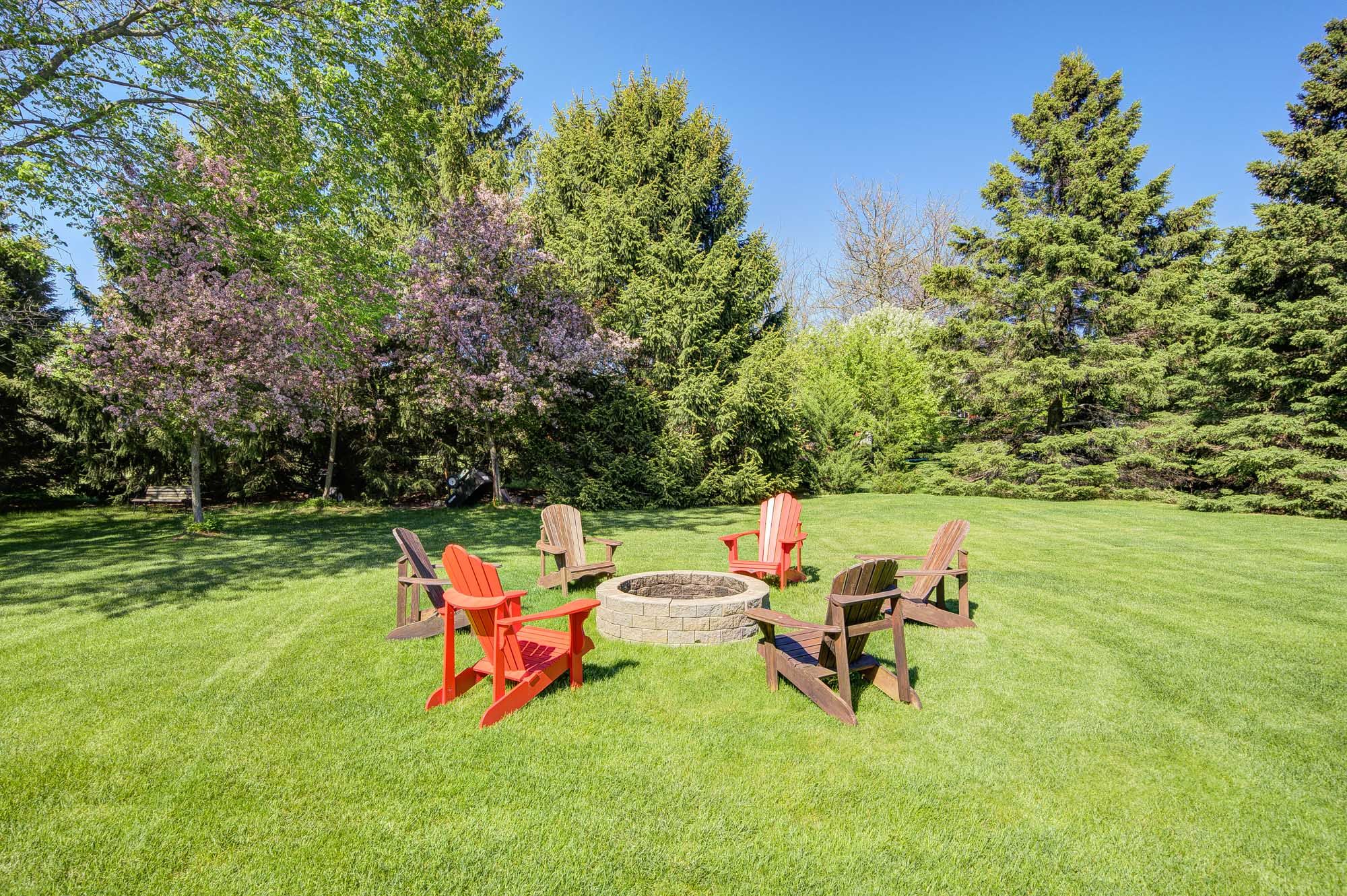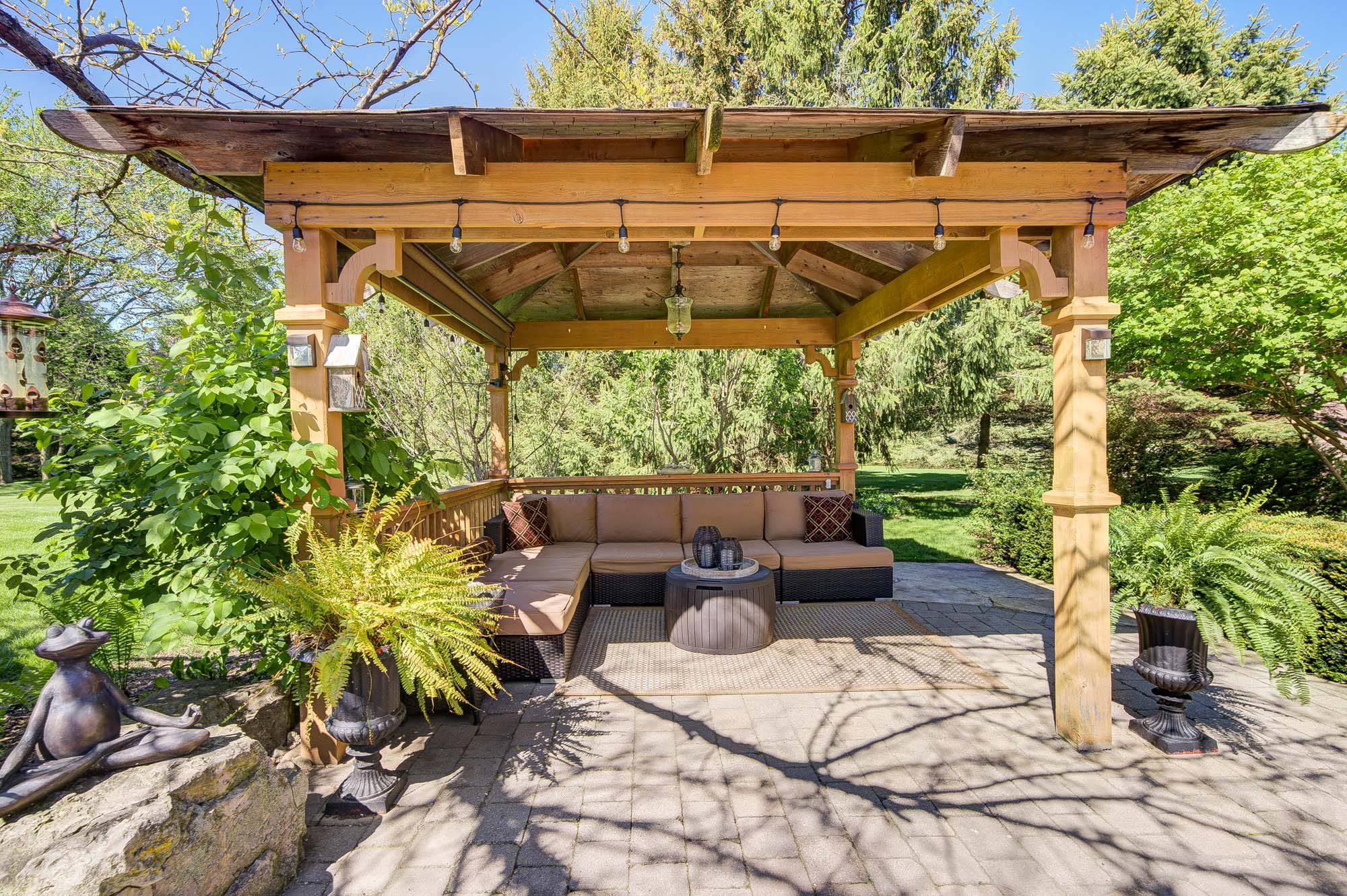 • Backyard includes a gazebo, hot tub, and custom fire pit.