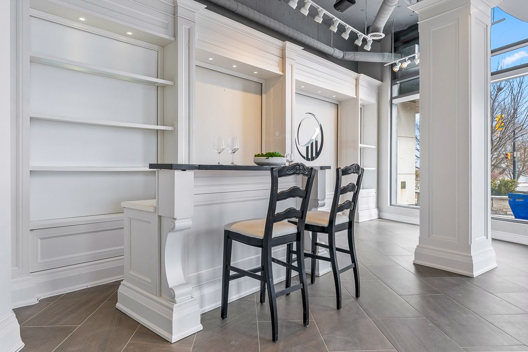 Exceptional opportunity to acquire a versatile 1,400 q. Ft. Commercial asset in oakville's highly coveted bronte village. This sophisticated unit offers high-visibility street frontage in a high-traffic pedestrian zone, making it an ideal flagship location for professional services, boutique retail, or creative studios. The interior features a sprawling, open-concept main floor with soaring ceilings and oversized windows that flood the space with natural light. A high-end gourmet kitchen with a central island and premium appliances provides an upscale environment for client hosting or executive functions. The flexible layout includes a secondary business area, a three-piece bathroom, and extensive storage-allowing for seamless expansion or multi-functional use. An opportunity to start and/or expand into one of oakville's most prestigious addresses. Dental use and competing uses within the building not allowed.