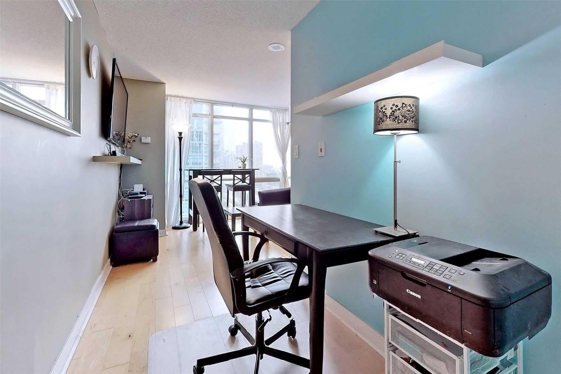 This bright and sunny one bedroom partially furnished condo with beautiful city/lake view isjust under 500 sq. Ft. Includes a locker, floor to ceiling windows with east exposure showcasing the stunning cn tower and lake views. Amenities include: spa, entertainment facility, indoor swimming pool, steam room, fitness courts, gym, billiards,theatre, party room, bbq area, 24 hr. Concierge security. Parking is available for $140/month. Available furnished or unfurnished.