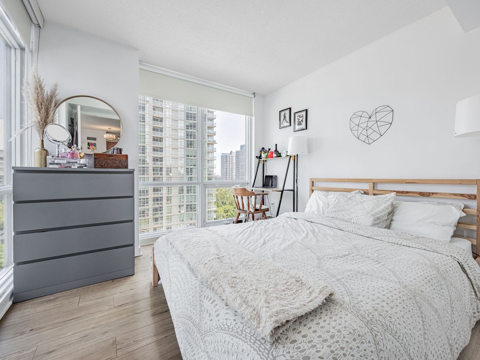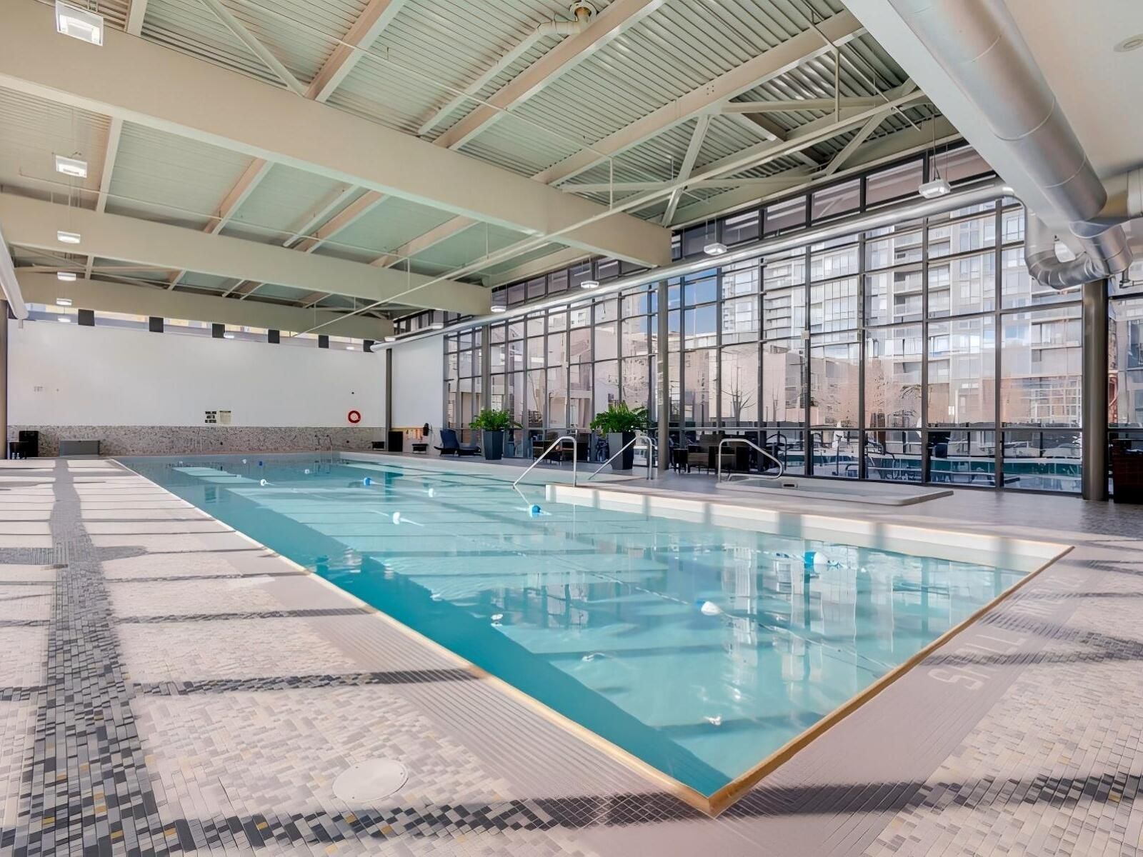 • Access to fitness centres, indoor pool, and Sky Lounge with city views.