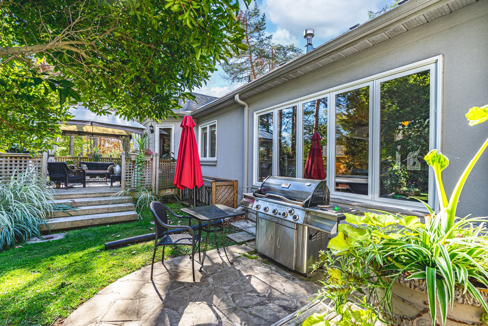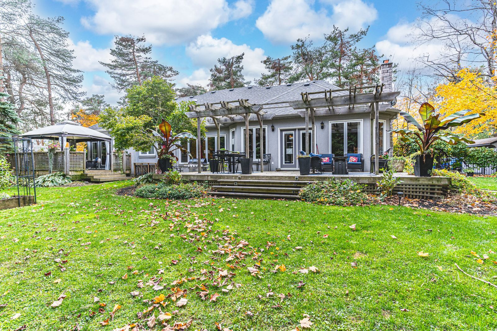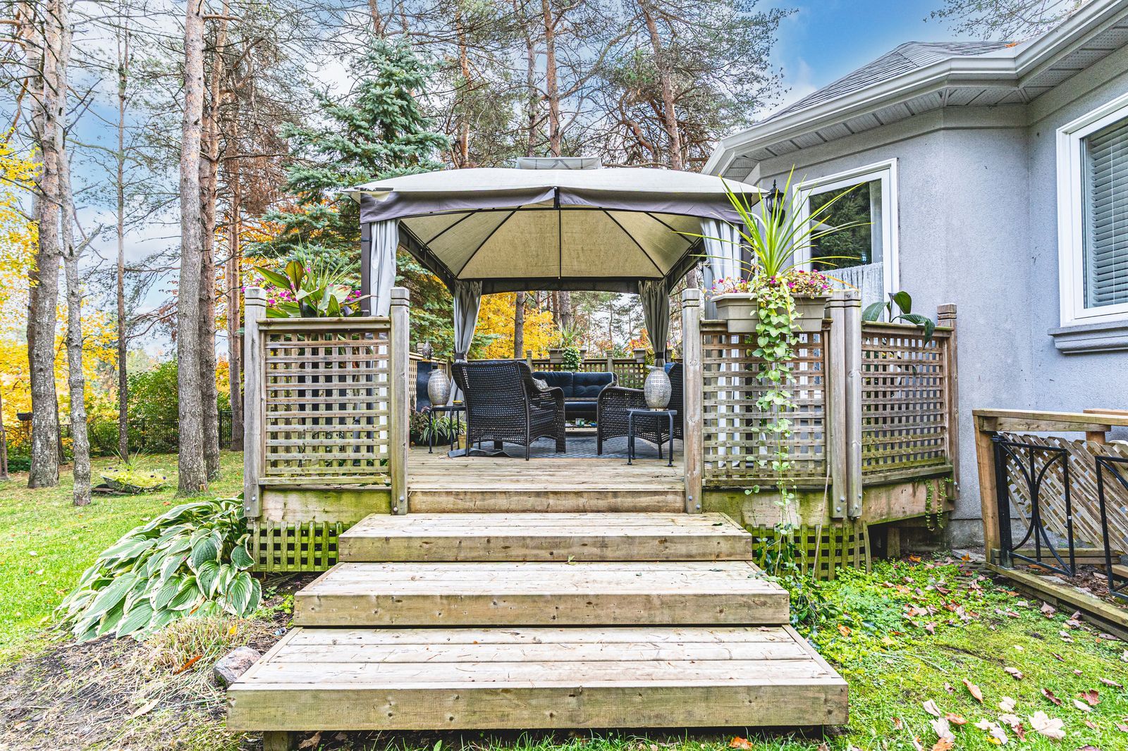 Distinguished horseshoe highlands estate on a serene cul-de-sac setting! Nestled on a quiet cul-de-sac in the prestigious horseshoe highlands, this elegant home offers over 3,650 finished sq ft of timeless style and thoughtful design, backing onto a former golf course surrounded by mature trees and manicured gardens. Sunlight fills every corner of the open-concept layout, where large windows, rounded corners, and refined lighting create an atmosphere of understated luxury. The bright kitchen features wood cabinetry, stainless steel appliances, a gas cooktop, a breakfast bar, and a breakfast area overlooking the yard. A formal dining room with soaring ceilings and dramatic arched windows creates a stunning backdrop for elegant gatherings, while the sunken family room with a tray ceiling and gas fireplace, and the living room with a wood-burning fireplace and wet bar, offer warm and inviting spaces to unwind. The primary suite feels like a private retreat with dual walk-in closets, a five-piece ensuite featuring a dual-sink vanity, a glass-walled shower, a soaker tub, and a walkout to its own secluded deck through double garden doors. Two additional bedrooms share a stylish three-piece bath, while a convenient main-floor laundry adds everyday ease. The partially finished lower level offers a generous recreation room, office, wine cellar, and three-piece bath, providing versatility for any lifestyle. Outdoors, a fully fenced yard with two decks, including one featuring dual pergolas, is framed by lush landscaping, vibrant gardens, and vegetable beds. A double-car garage with inside entry and driveway parking for up to ten vehicles completes this exceptional property. Perfectly positioned within minutes of the new elementary school, community centre, medical clinic, park, and tennis courts, and under 20 minutes from barrie's rvh and georgian college, with year-round recreation close at hand, including skiing, golf, hiking, and vetta nordic spa.