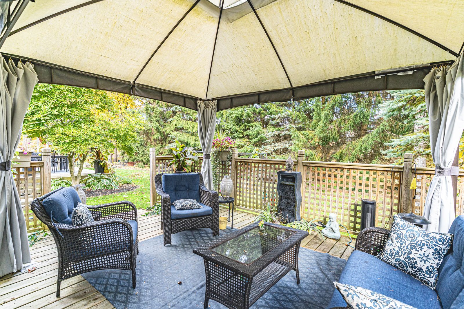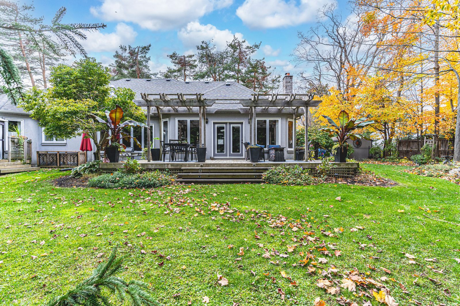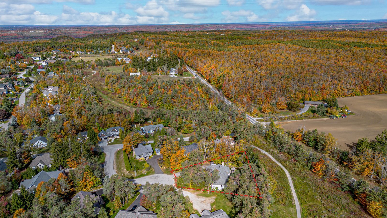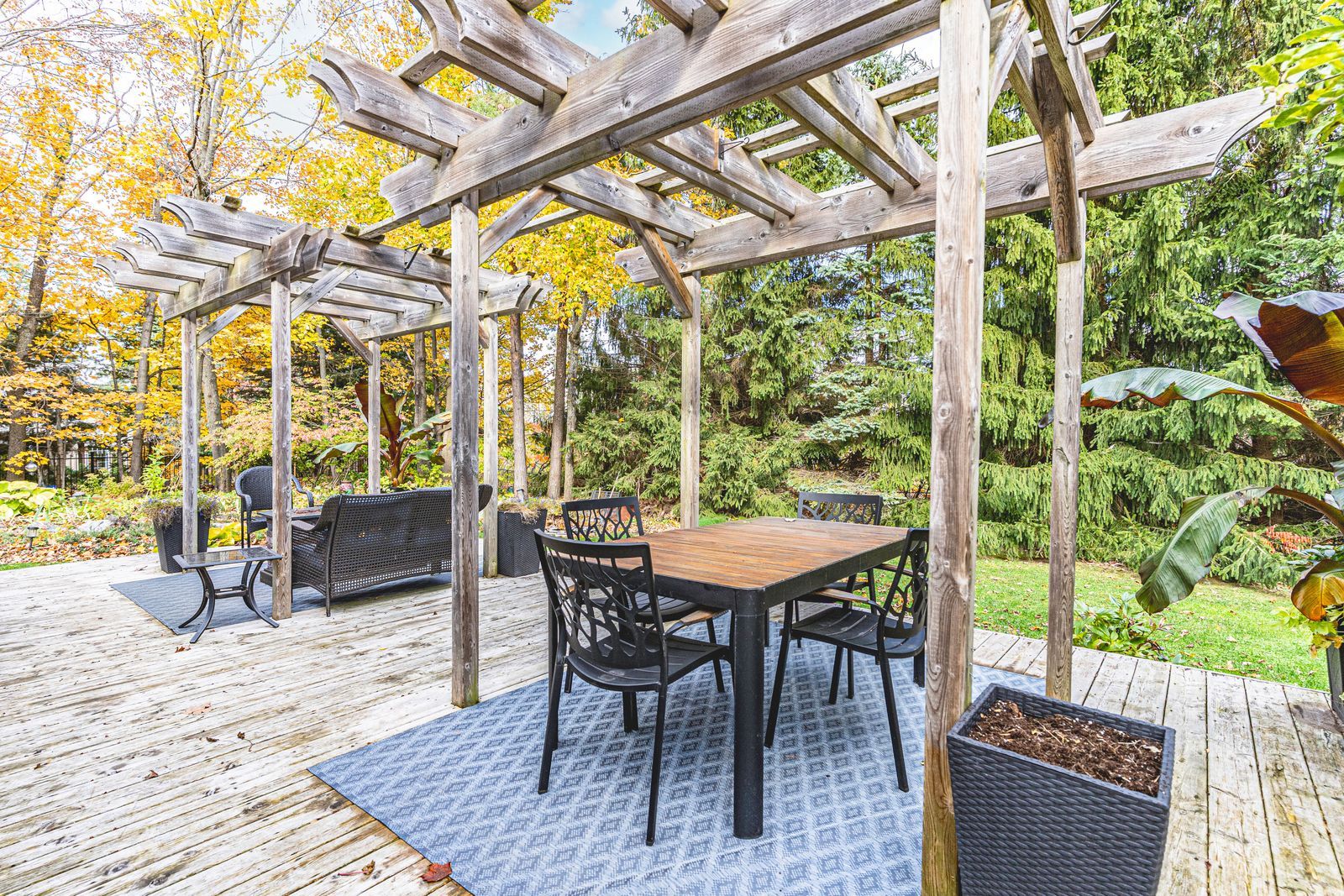 Distinguished horseshoe highlands estate on a serene cul-de-sac setting! Nestled on a quiet cul-de-sac in the prestigious horseshoe highlands, this elegant home offers over 3,650 finished sq ft of timeless style and thoughtful design, backing onto a former golf course surrounded by mature trees and manicured gardens. Sunlight fills every corner of the open-concept layout, where large windows, rounded corners, and refined lighting create an atmosphere of understated luxury. The bright kitchen features wood cabinetry, stainless steel appliances, a gas cooktop, a breakfast bar, and a breakfast area overlooking the yard. A formal dining room with soaring ceilings and dramatic arched windows creates a stunning backdrop for elegant gatherings, while the sunken family room with a tray ceiling and gas fireplace, and the living room with a wood-burning fireplace and wet bar, offer warm and inviting spaces to unwind. The primary suite feels like a private retreat with dual walk-in closets, a five-piece ensuite featuring a dual-sink vanity, a glass-walled shower, a soaker tub, and a walkout to its own secluded deck through double garden doors. Two additional bedrooms share a stylish three-piece bath, while a convenient main-floor laundry adds everyday ease. The partially finished lower level offers a generous recreation room, office, wine cellar, and three-piece bath, providing versatility for any lifestyle. Outdoors, a fully fenced yard with two decks, including one featuring dual pergolas, is framed by lush landscaping, vibrant gardens, and vegetable beds. A double-car garage with inside entry and driveway parking for up to ten vehicles completes this exceptional property. Perfectly positioned within minutes of the new elementary school, community centre, medical clinic, park, and tennis courts, and under 20 minutes from barrie's rvh and georgian college, with year-round recreation close at hand, including skiing, golf, hiking, and vetta nordic spa.