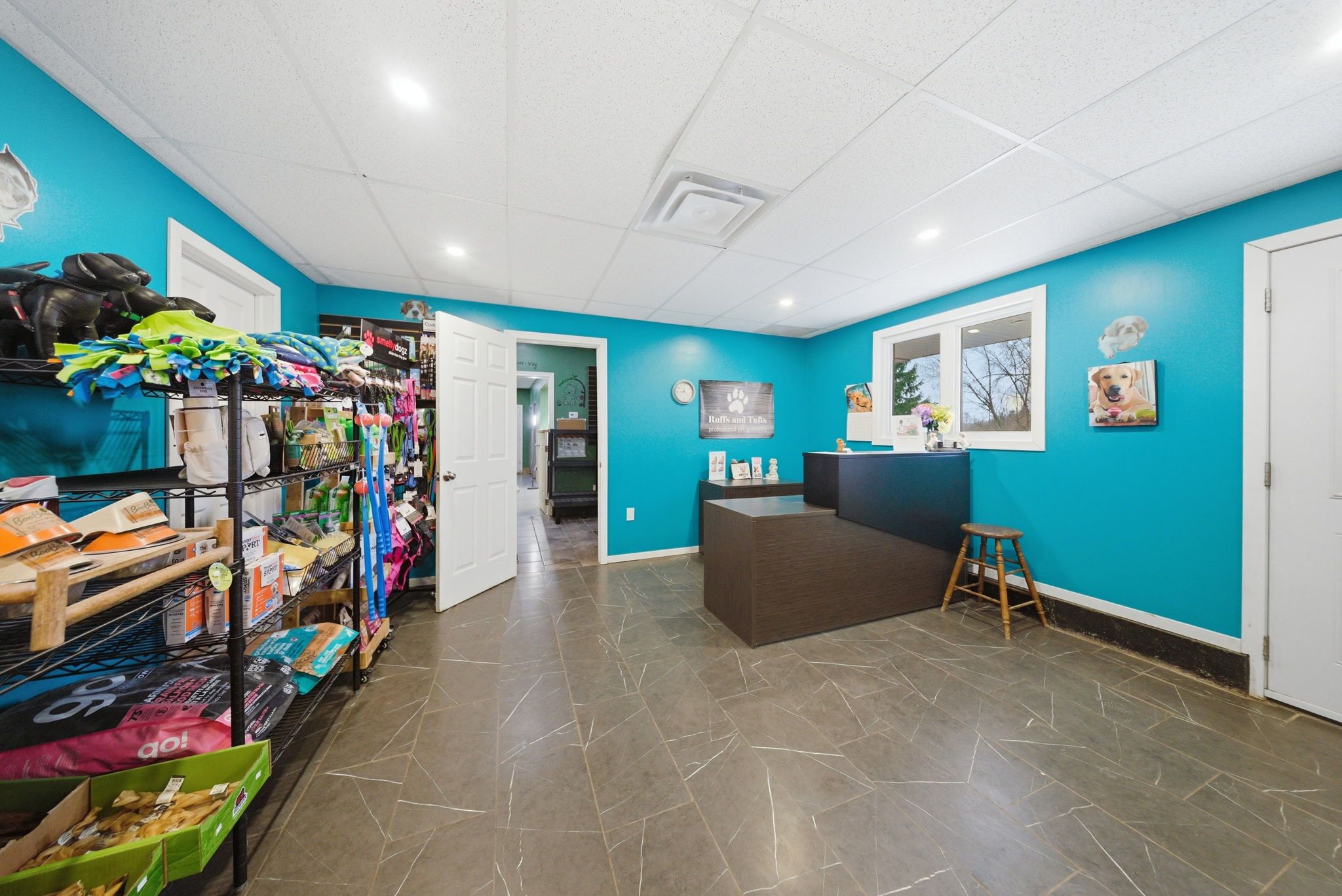 • Established canine grooming and boarding operation with separate building.