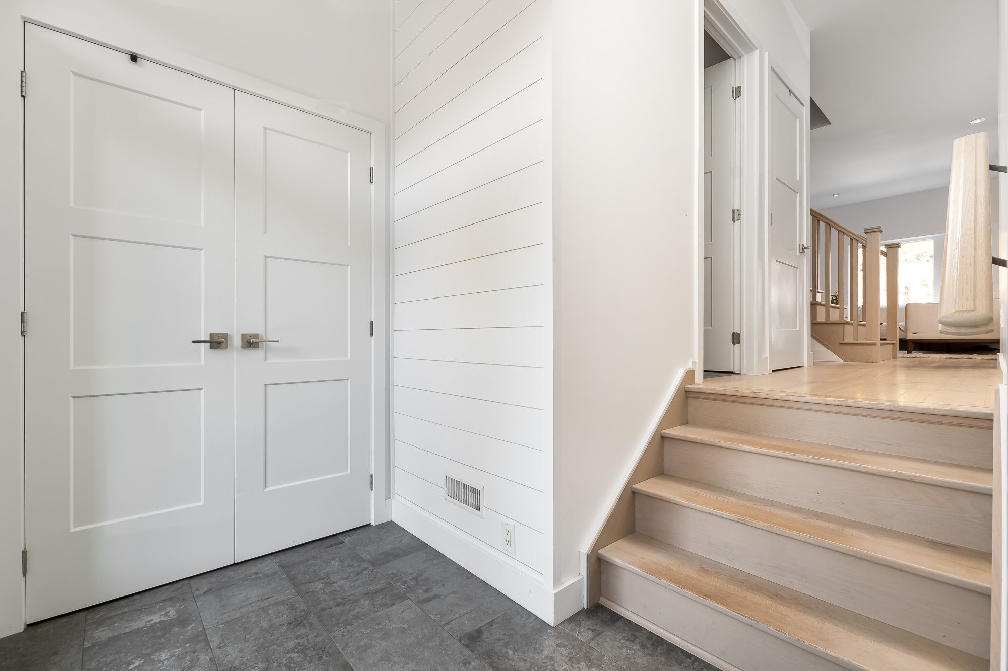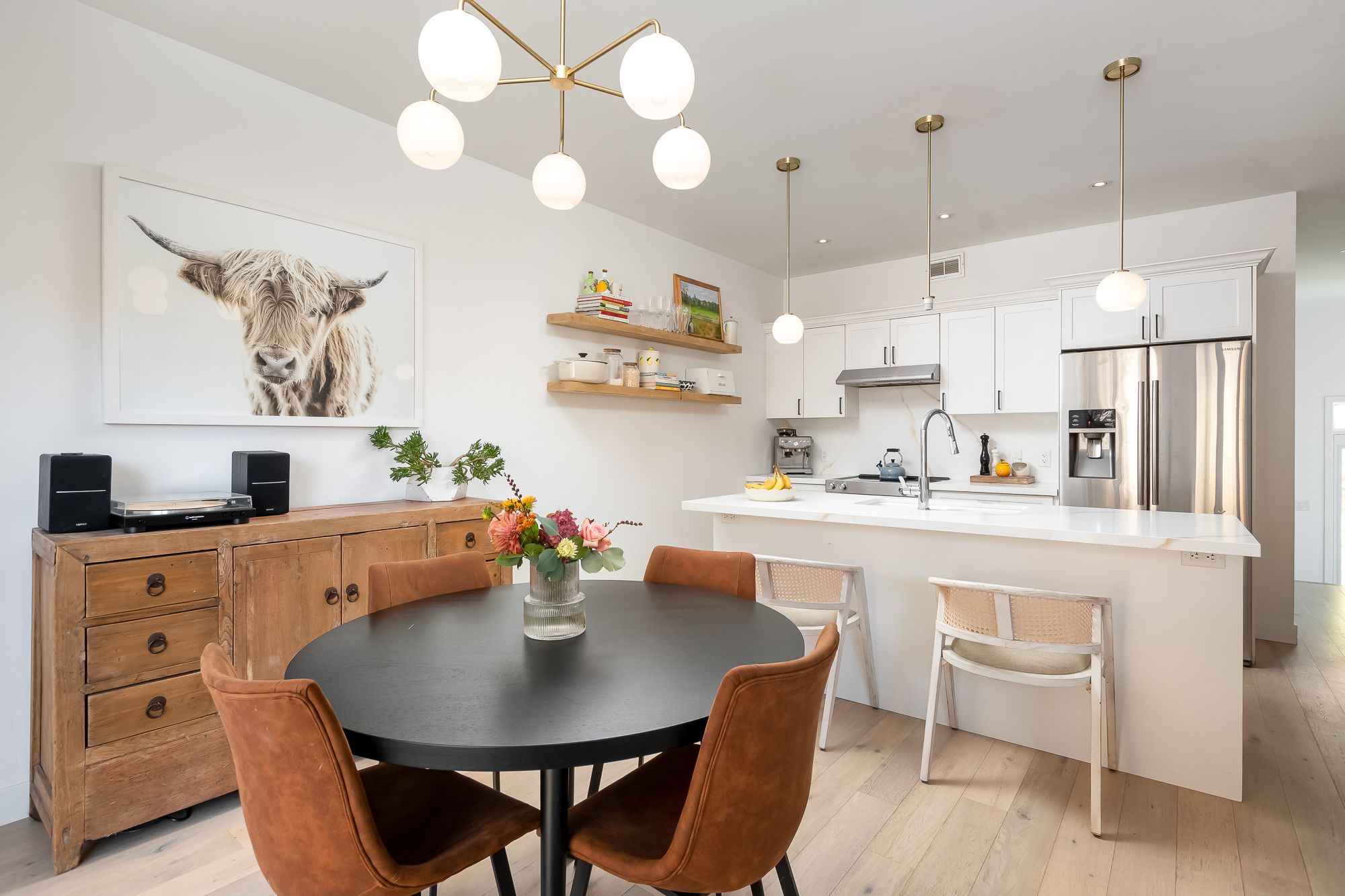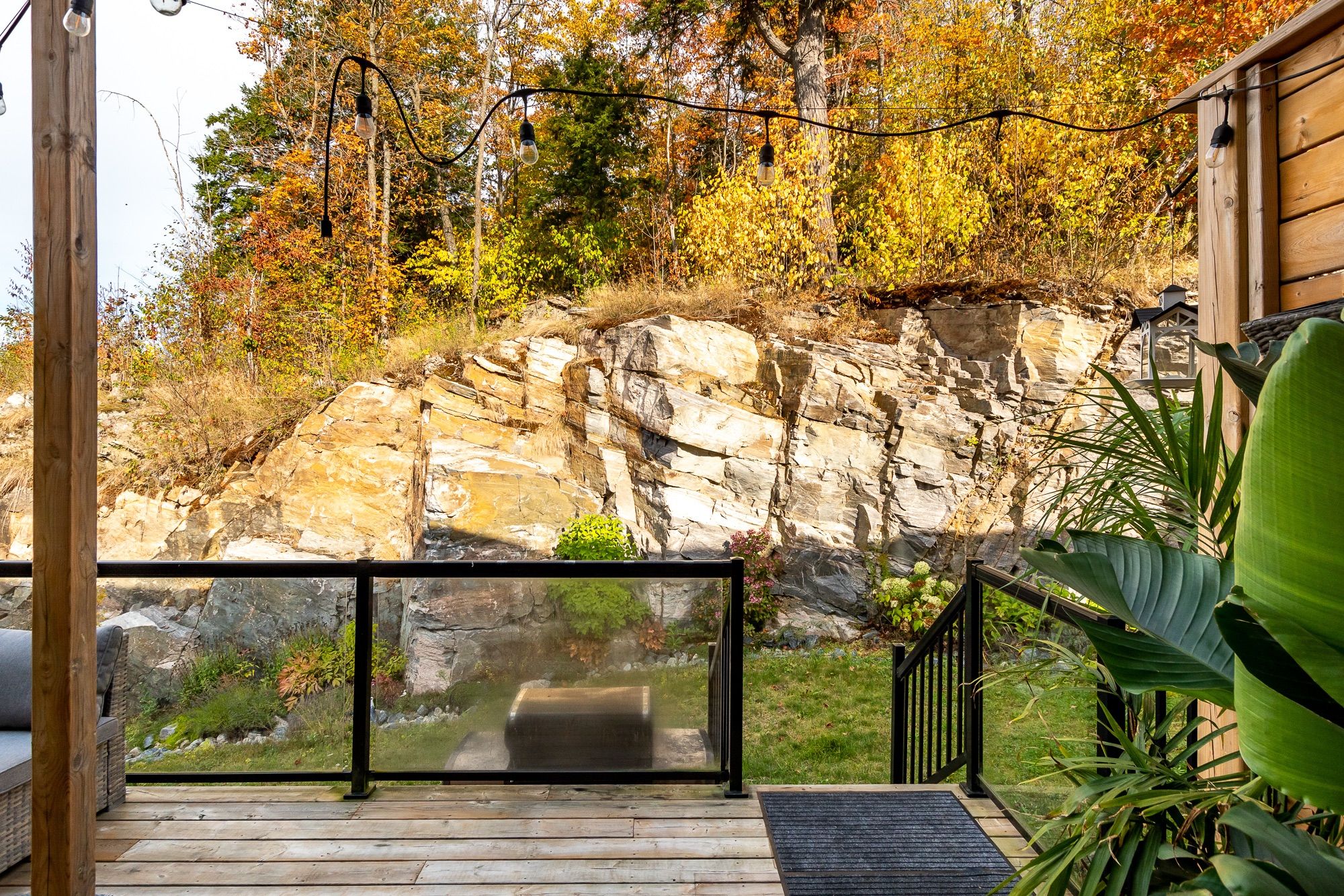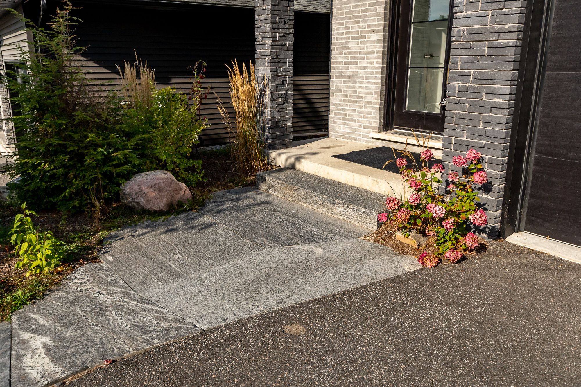 This end-unit townhouse combines comfort, style, and convenience in a sought-after location. A private paved driveway and covered porch entry welcome you, with the neutral exterior palette of stone and vinyl adding timeless curb appeal. Inside, a spacious foyer with a large closet and direct access from the single-car garage creates a practical entry point. The open-concept main floor blends living, dining, and kitchen spaces, designed for everyday living and entertaining. The kitchen features quartz countertops, a generous island with breakfast bar seating, floating shelves, and shiplap accents that continues in the living room for a modern touch. Sliding doors lead to a spacious deck overlooking the beautiful rockscape behind the home, offering a peaceful and private outdoor retreat. Upstairs are three bedrooms, including a primary suite with walk-in closet and a 4-piece ensuite complete with a soaker tub and separate glass shower. Two additional bedrooms share a well-appointed 4-piece bathroom, while the laundry is conveniently located on this level. The lower level provides great storage options for your needs. On full municipal services including natural gas, water, sewer, and high-speed internet, this home ensures convenience and efficiency. With quick access to highway 11 for commuting and just minutes to town for shops, and amenities, this property is an ideal blend of modern living and prime location.