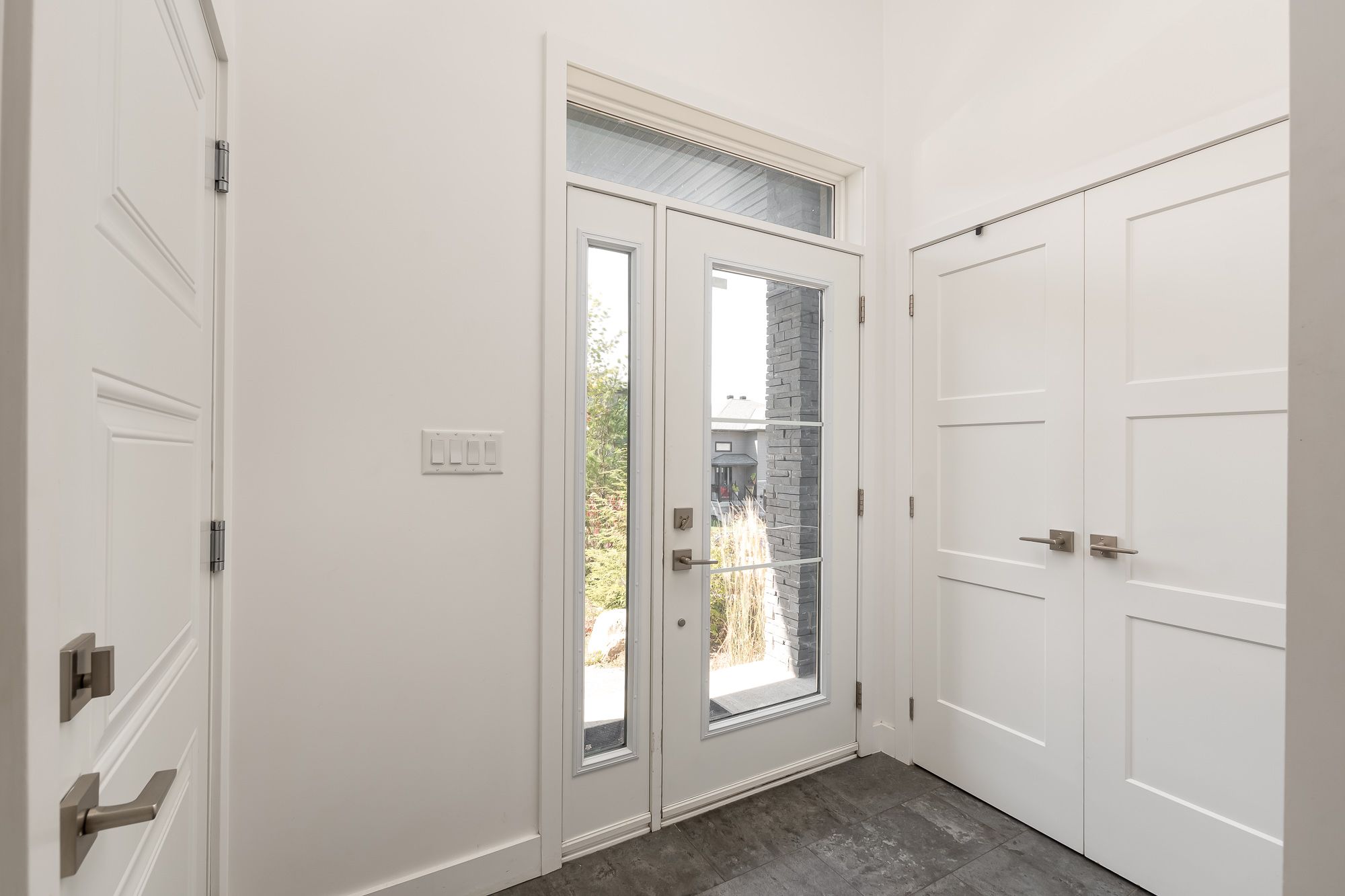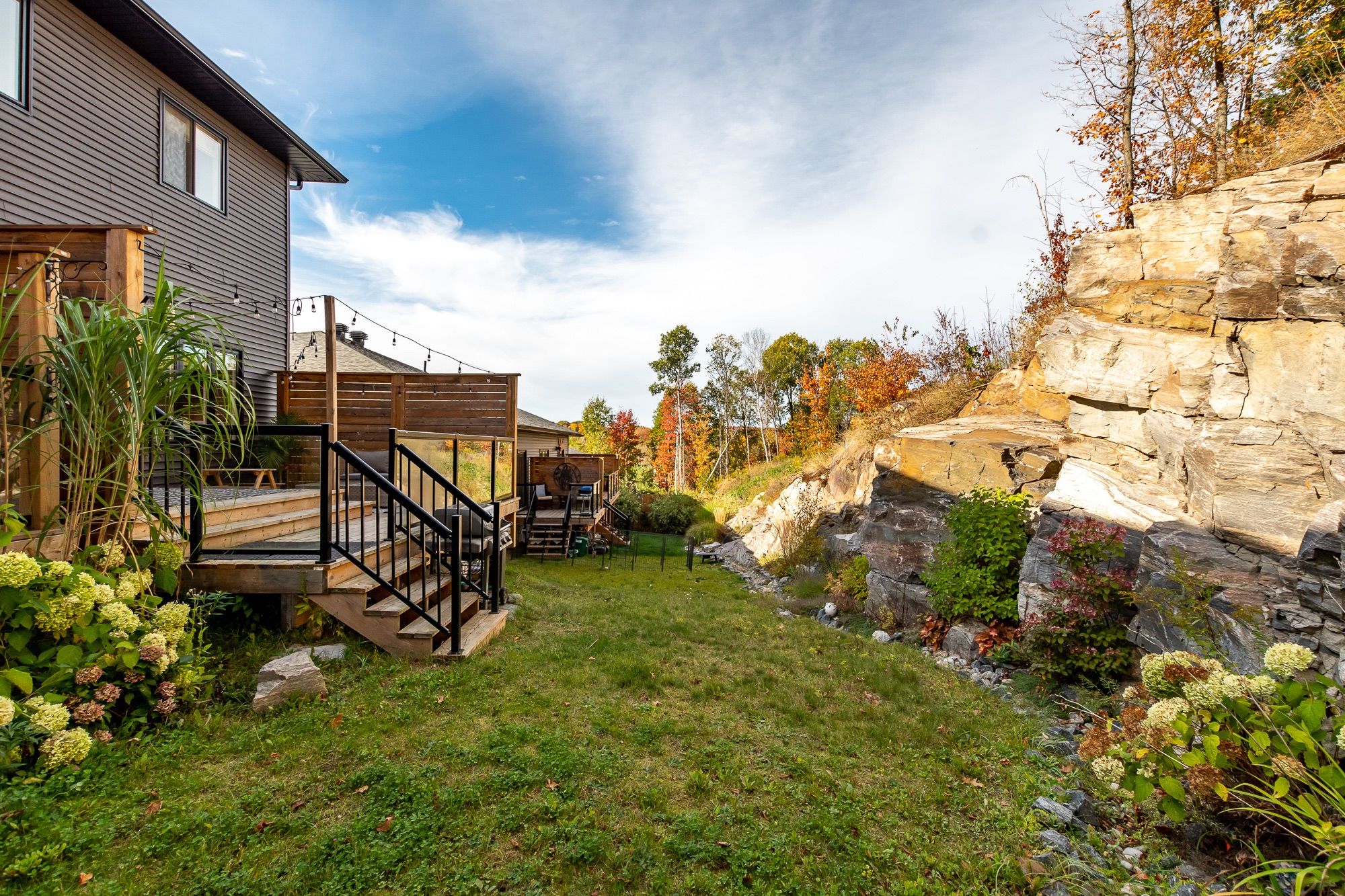 This end-unit townhouse combines comfort, style, and convenience in a sought-after location. A private paved driveway and covered porch entry welcome you, with the neutral exterior palette of stone and vinyl adding timeless curb appeal. Inside, a spacious foyer with a large closet and direct access from the single-car garage creates a practical entry point. The open-concept main floor blends living, dining, and kitchen spaces, designed for everyday living and entertaining. The kitchen features quartz countertops, a generous island with breakfast bar seating, floating shelves, and shiplap accents that continues in the living room for a modern touch. Sliding doors lead to a spacious deck overlooking the beautiful rockscape behind the home, offering a peaceful and private outdoor retreat. Upstairs are three bedrooms, including a primary suite with walk-in closet and a 4-piece ensuite complete with a soaker tub and separate glass shower. Two additional bedrooms share a well-appointed 4-piece bathroom, while the laundry is conveniently located on this level. The lower level provides great storage options for your needs. On full municipal services including natural gas, water, sewer, and high-speed internet, this home ensures convenience and efficiency. With quick access to highway 11 for commuting and just minutes to downtown for shops, and amenities, this property is an ideal blend of modern living and prime location.