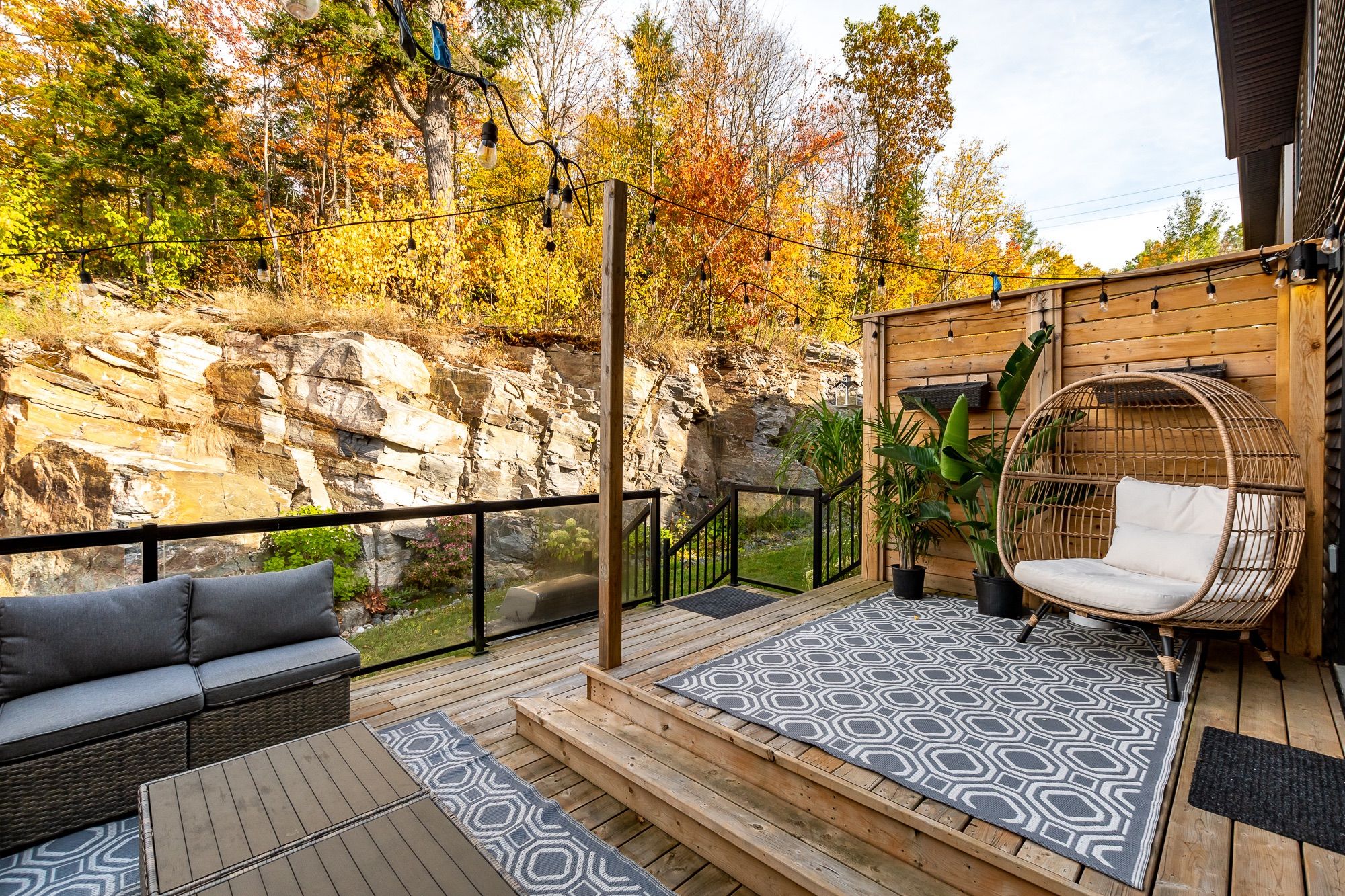 • Private deck overlooking a tranquil rockscape, ideal for relaxation.