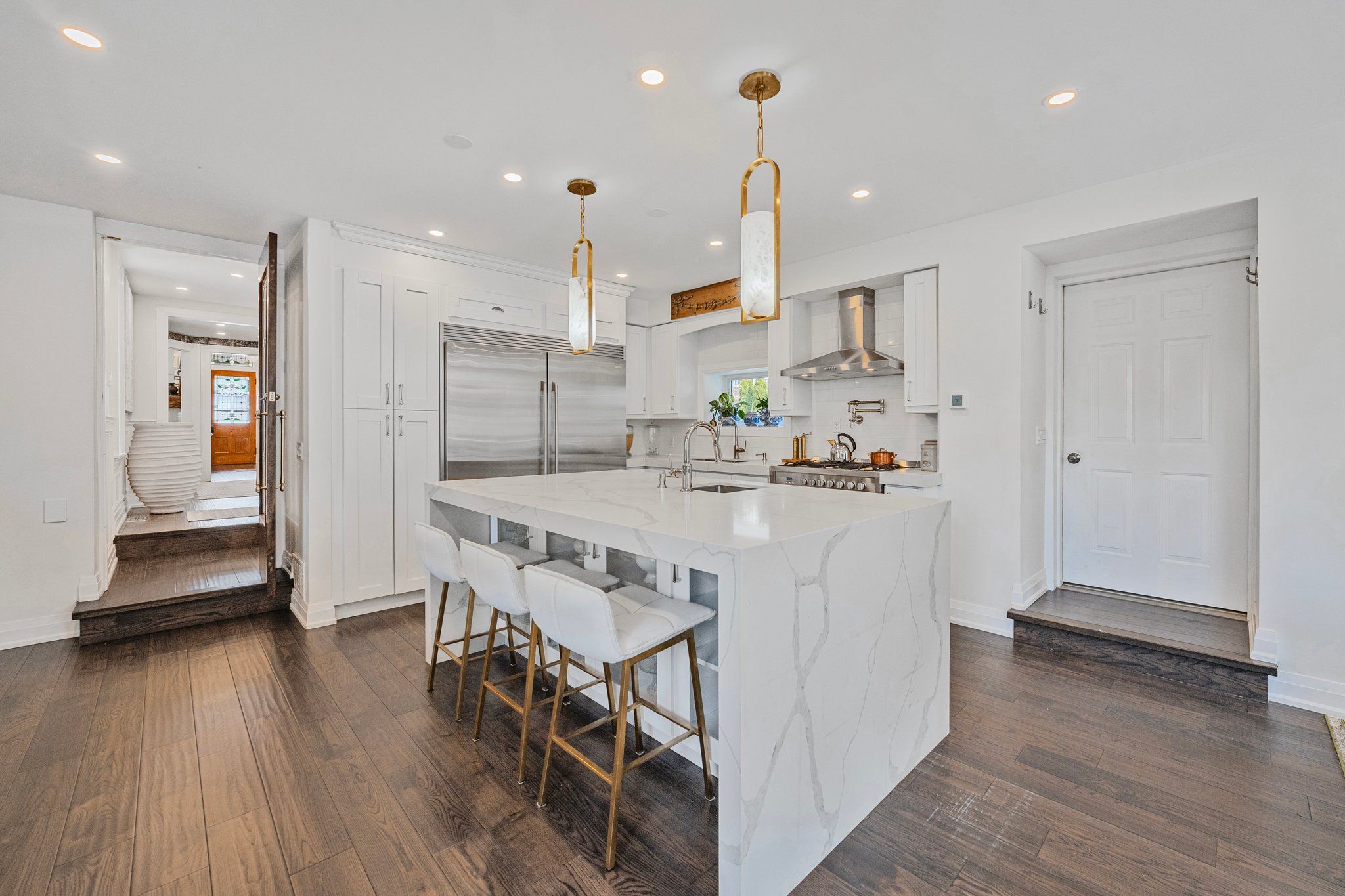 • Chef's kitchen equipped with top-notch appliances and a huge island.