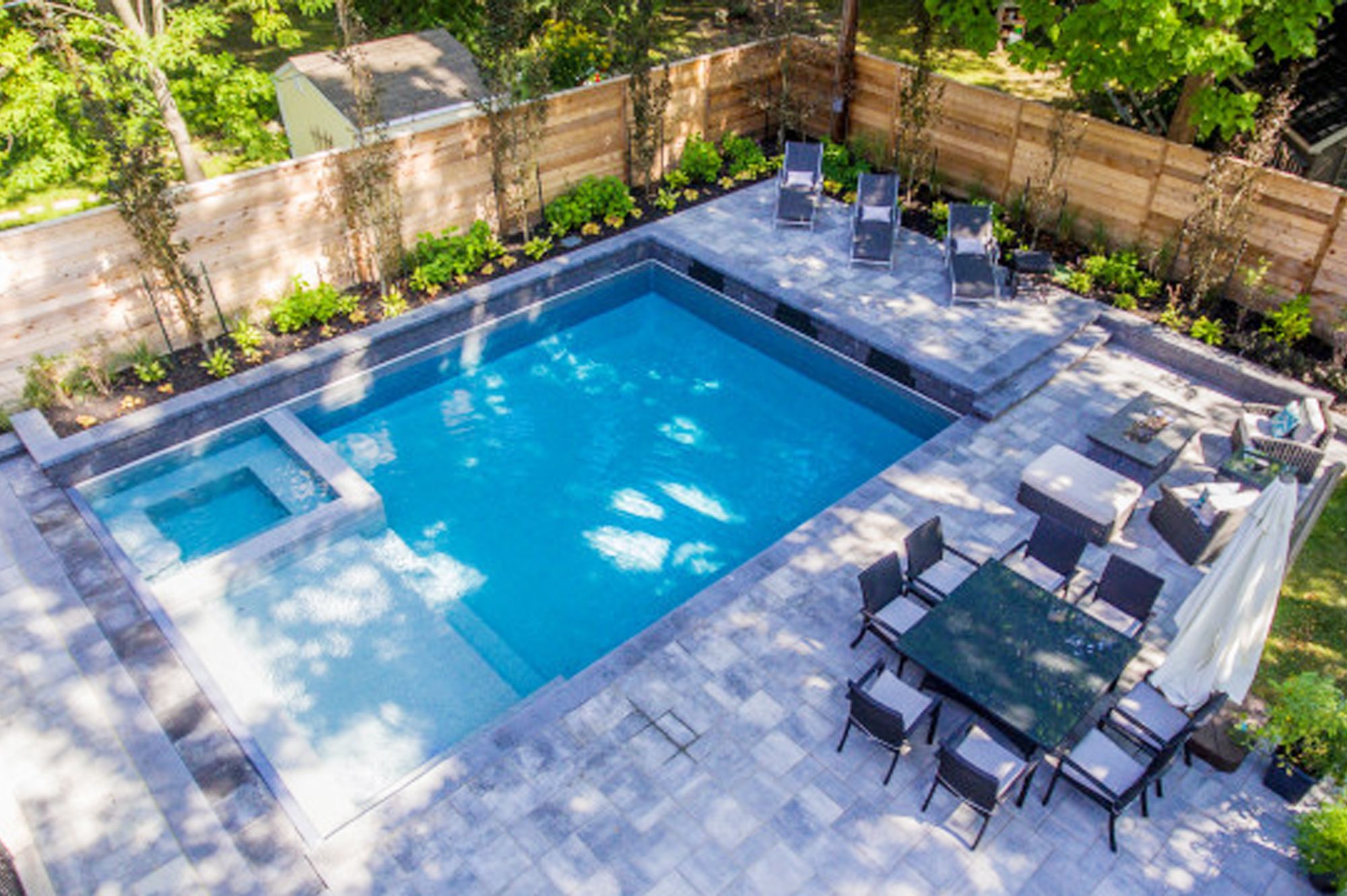 • Private backyard oasis with outdoor kitchen, saltwater pool, and hot tub.