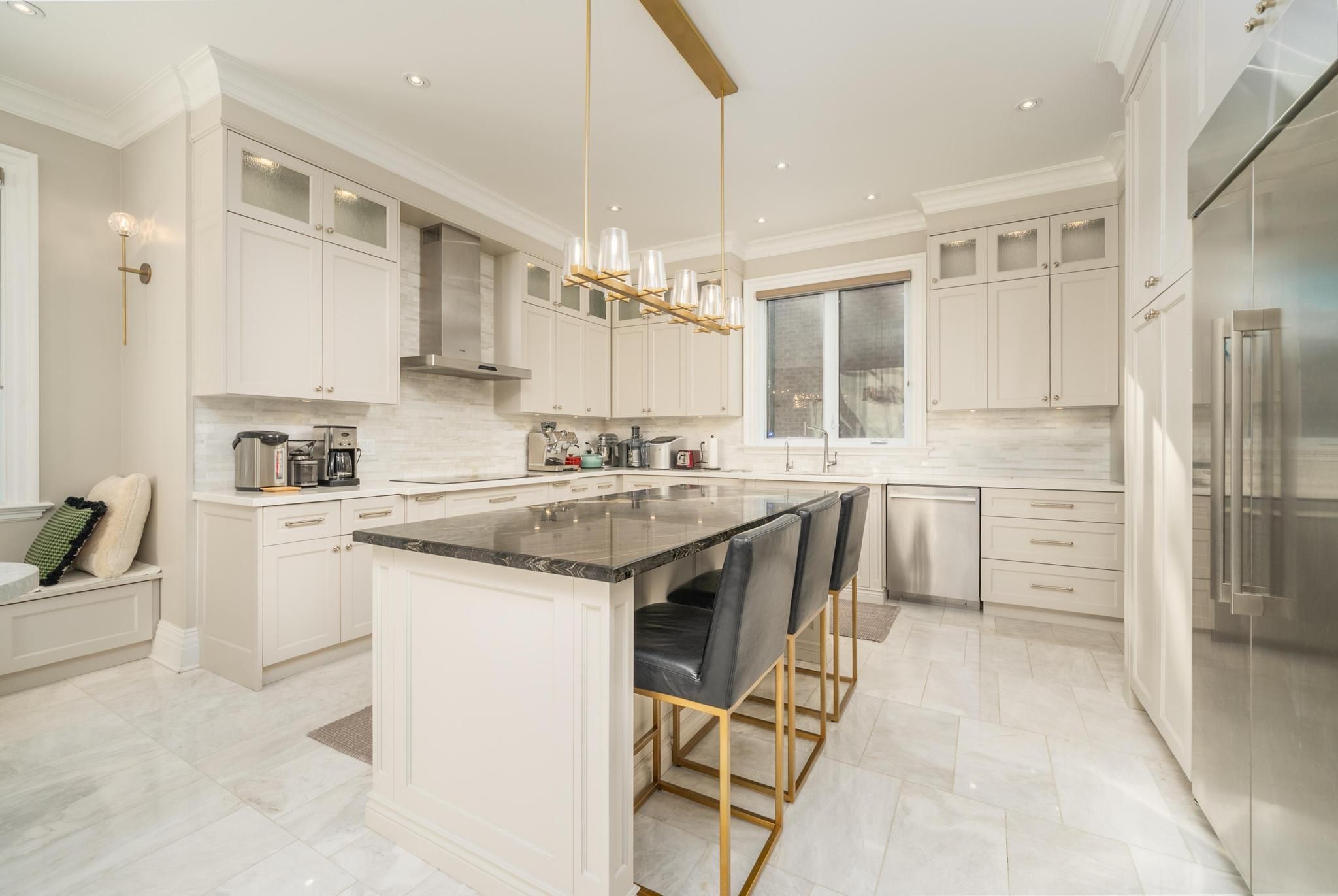 • Chef's kitchen featuring high-end appliances and an oversized island.