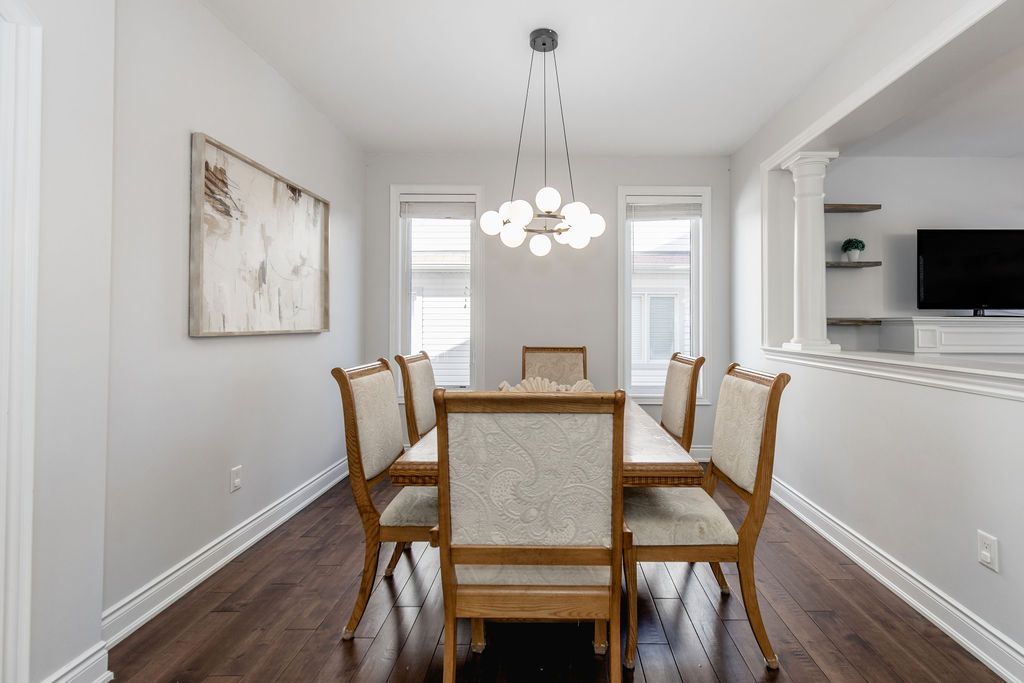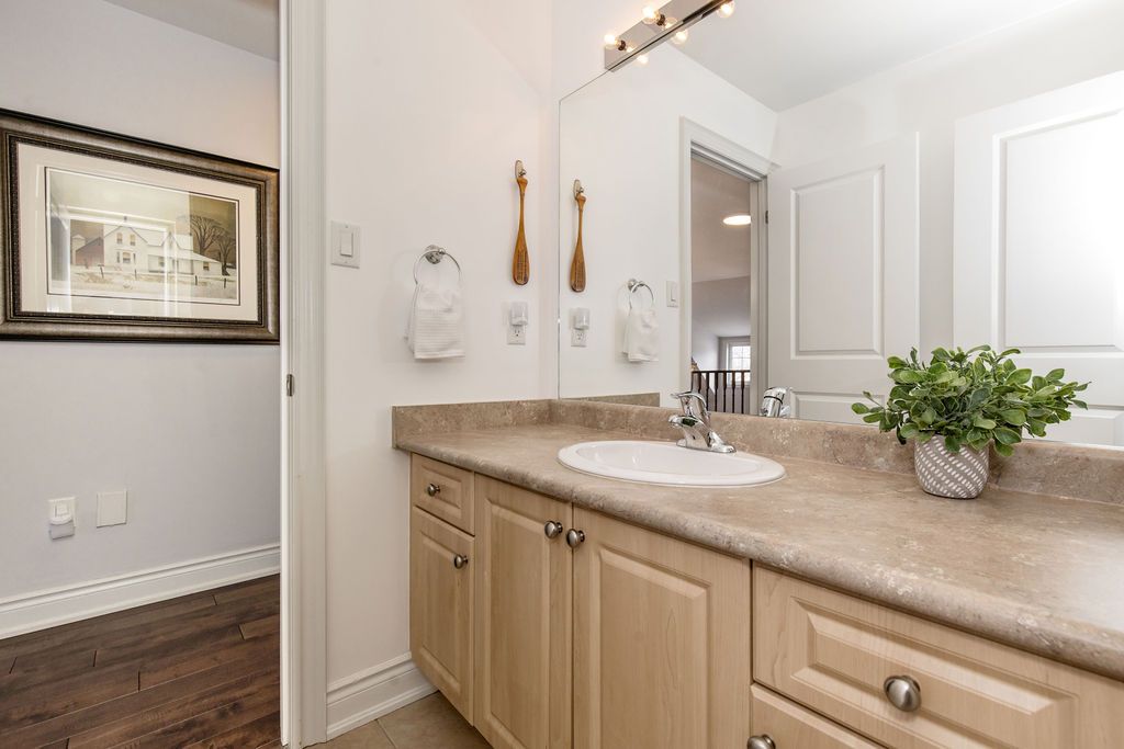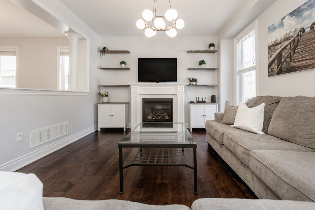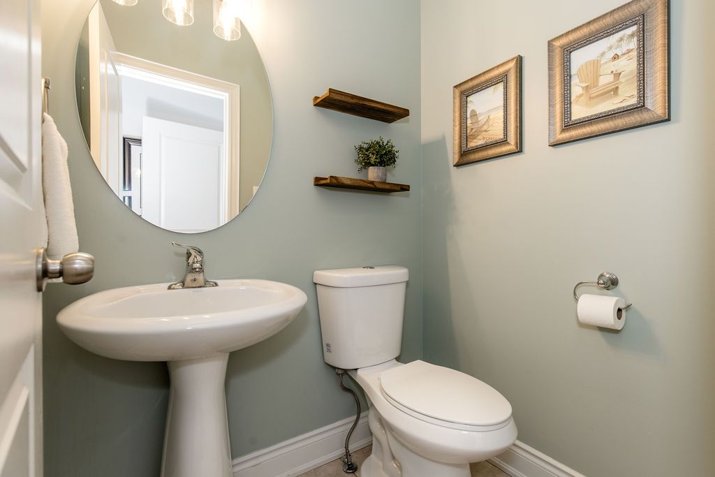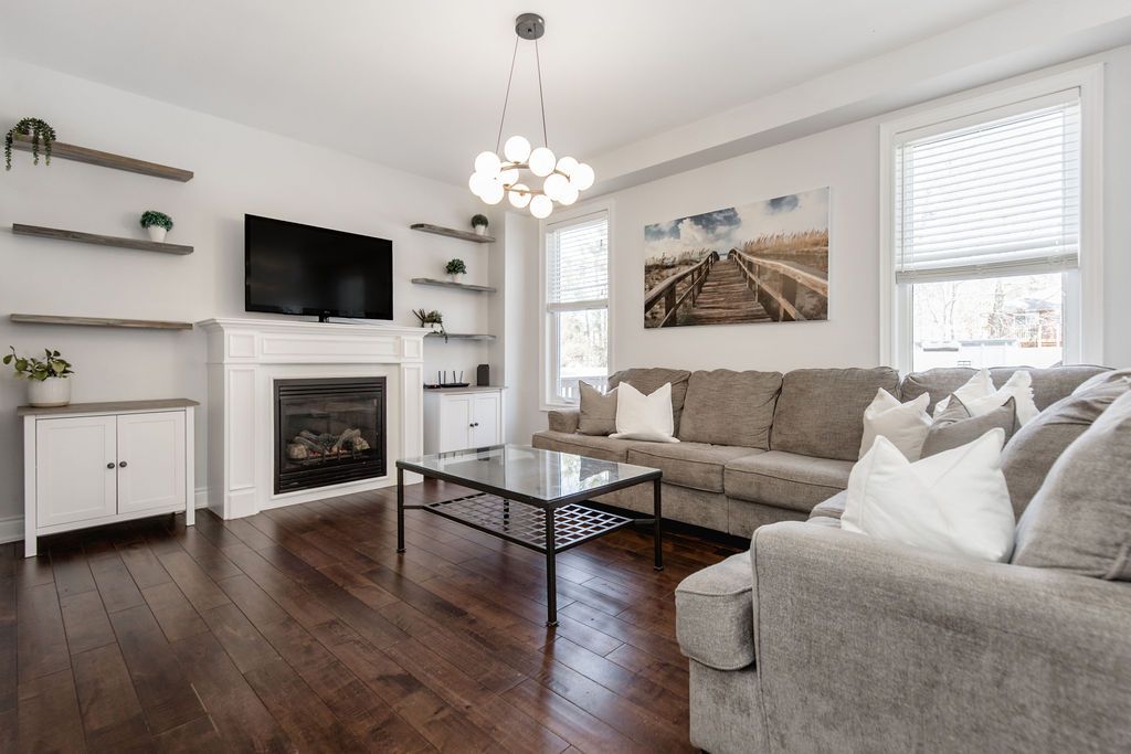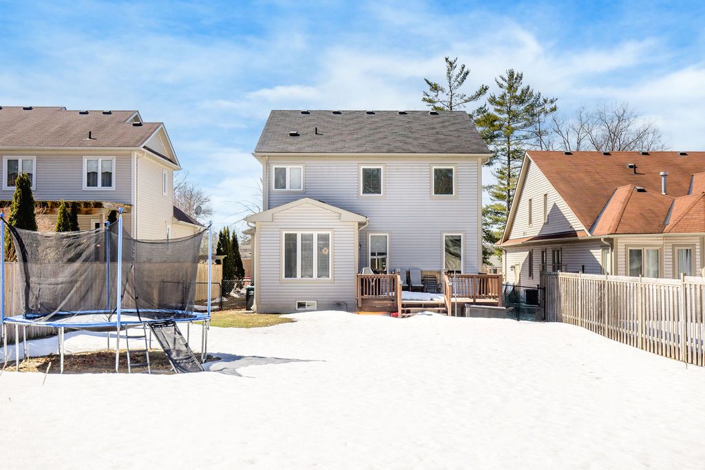 Welcome to this well-maintained 4 bedroom, 5 bathroom, 3,000+ sqft home located on a quiet cul-de-sac in a sought-after wasaga beach neighbourhood, just 5 minutes to the beach and marlwood golf course, walking distance to the library, and upcoming k-12 school and community hub as well as easy access to barrie. The main floor features a grand 18-ft ceiling entry with a sitting area and staircase to the upper balcony, a formal dining room, and an open concept living room and kitchen. The kitchen offers granite countertops, updated cabinet doors, a new gas stove and hood, and a great sized island perfect for hosting with plenty of space for cooking and baking. Engineered hardwood flooring runs throughout the main level, complemented by upgraded baseboards, upgraded mouldings, and fresh paint (2022), giving the home an upscale feel. Inside entry to a double car garage and a convenient powder room complete this level. Upstairs offers 3 large bedrooms, including an oversized primary suite with walk-in closet and ensuite featuring a glass shower, double sinks, and a soaker tub. A second bedroom also includes its own ensuite and walk-in closet, plus an additional 4-piece bathroom. With spacious bedrooms and two ensuites, this is a rare find for growing families. The finished basement adds a 4th bedroom, full bathroom with walk-in shower, and the perfect cozy rec room or man cave, also ideal as a theatre room. An unfinished area with plumbing rough-in offers potential for a kitchenette or in-law suite. Major updates include furnace (2023) and a/c (2023) with transferable 10-year parts and labour warranty. Additional features include 200 amp service, wired security system, gas bbq line, garage door openers, and a fully fenced oversized yard.