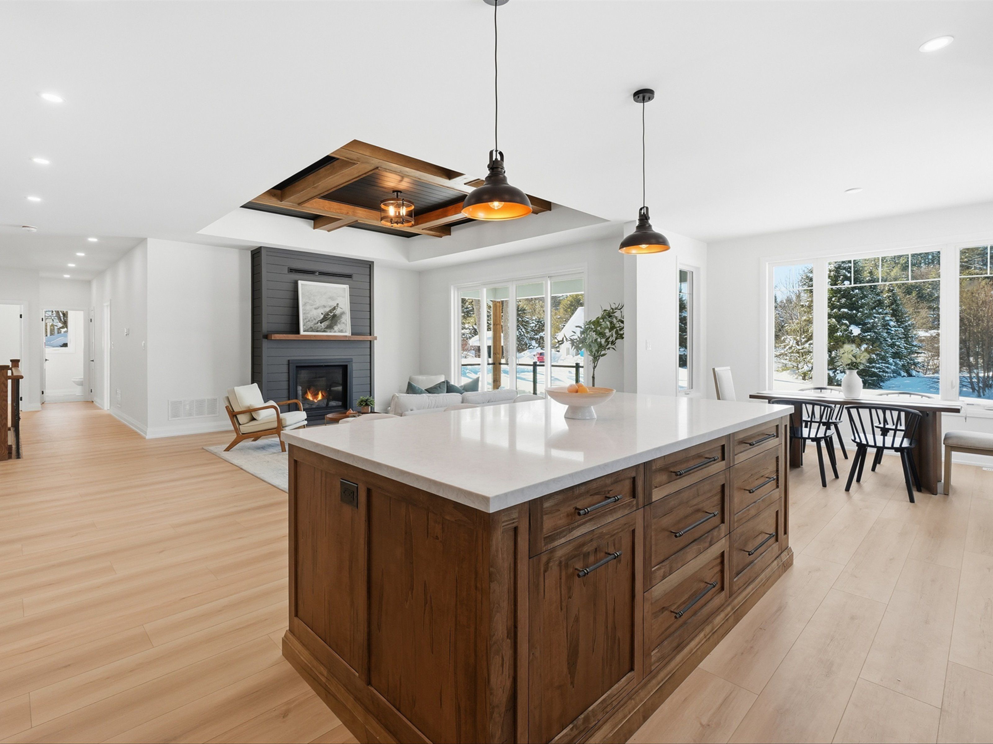 Set among neighbouring homes yet offering a strong sense of privacy, this property's prime location puts you minutes from lakes, beaches, golfing, hiking trails and many of huntsville and bracebridge attractions. V. K. Greer memorial public school is a 4 minute drive. Situated near the utterson community hall including a playground, baseball diamond, soccer field, and tennis/basketball courts. Featuring 3 spacious bedrooms and 2 beautifully appointed bathrooms, this home showcases thoughtful design throughout-highlighted by elegant coffered ceiling details, a cozy gas fireplace, and a striking wood-detailed island and custom range hood that anchor the open-concept living space. Large windows flood the home with natural light, creating a warm and inviting atmosphere ideal for both everyday living and entertaining. The functional layout includes a mudroom off a 2-car garage, convenient main-level laundry, and a butler's pantry that offers flexible use as additional storage or a stylish coffee bar. The private primary suite is a true retreat, complete with a generous walk-in closet and a spa-inspired ensuite featuring beautiful finishes, a separate shower, and a relaxing tub. Two additional bedrooms are equally bright and welcoming, each filled with natural light. Downstairs, the large unfinished basement offers endless potential, enhanced by oversized windows that bring in exceptional light-perfect for future living space, gym, or recreation area. A thoughtfully designed home where comfort, style, and location come together seamlessly. Bright, open living, and refined craftsmanship! You are invited to come have a look!