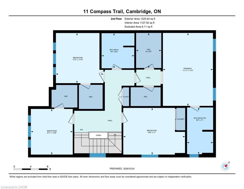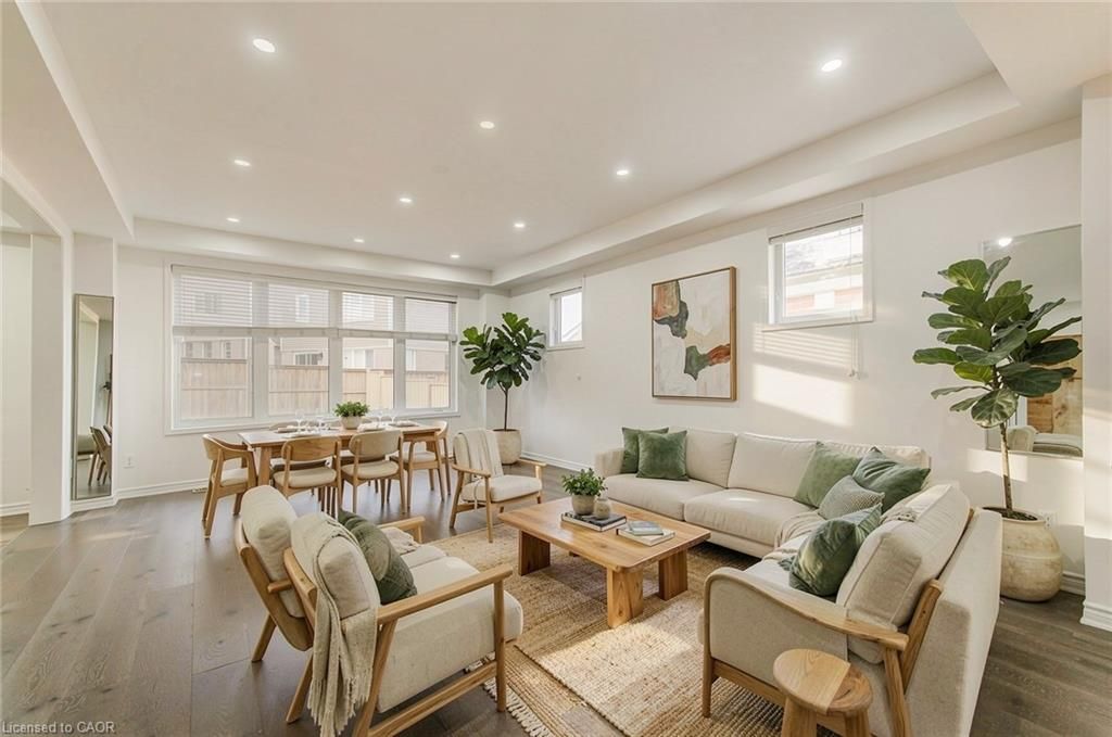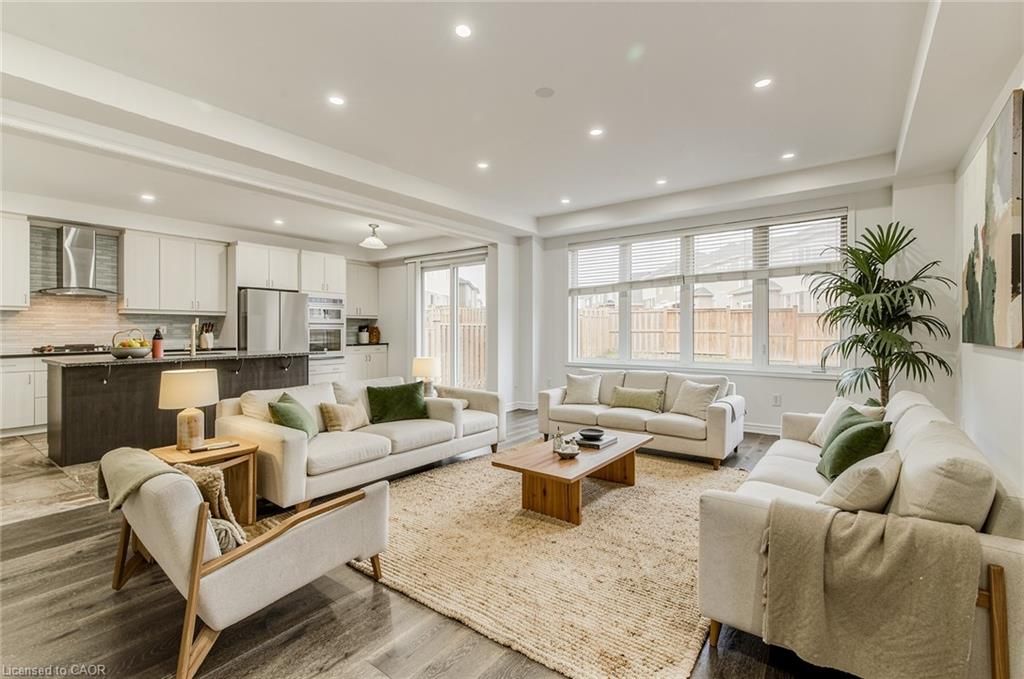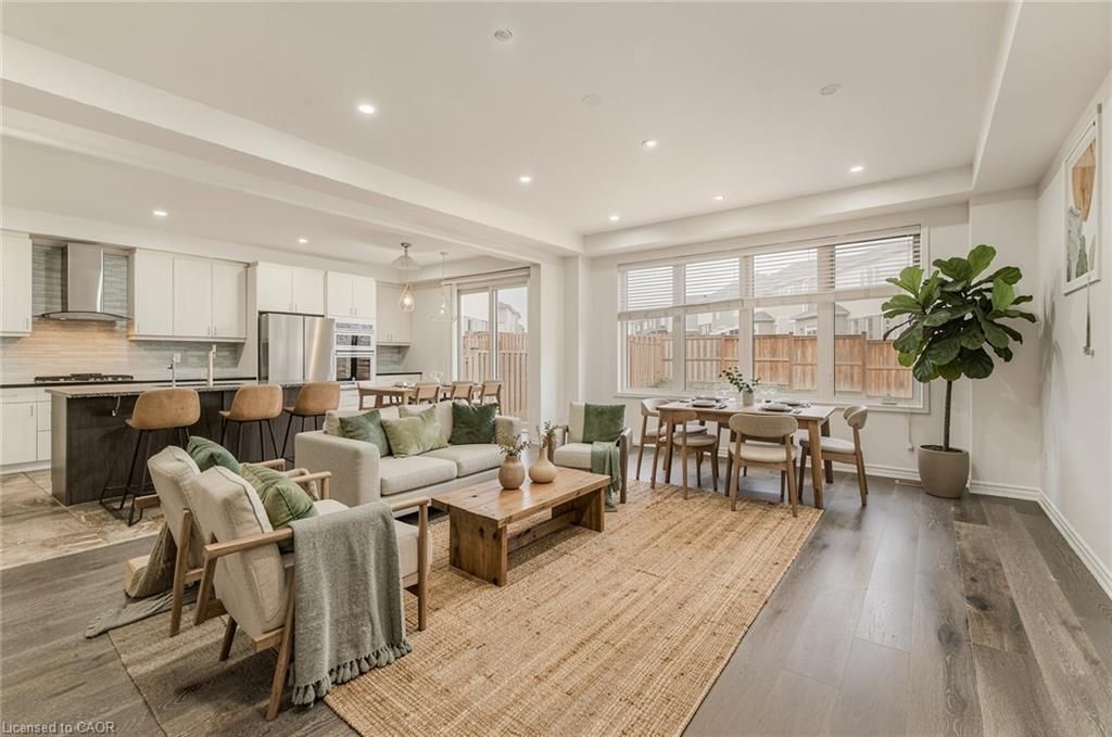 Welcome to 11 compass trail, a beautifully upgraded detached home offering exceptional interior finishes and a thoughtfully designed layout for modern living. The bright open-concept main floor features spacious living and dining areas, 9-foot ceilings, hardwood flooring, interior and exterior pot lights, and a convenient 2 piece bathroom. The upgraded chef's kitchen is complemented by a walk-in pantry, ideal for everyday living and entertaining. Elegant wood stairs with iron railings lead to the second level, where you'll find four generously sized bedrooms and two well-appointed bathrooms with cultured marble counters. The primary bedroom retreat boasts a luxurious ensuite and multiple walk-in closets. Situated on a premium 36 x 108 ft lot, this home features a fully fenced backyard, double car garage, and parking for four vehicles. Enjoy a rare setting fronting onto protected green space with a flowing river stream, scenic views, nearby pond, nature trails, and parks, all while being ideally located in a prime cambridge neighborhood close to major amenities and highways. A perfect blend of luxury, nature, and convenience. The home is freshly painted and ready to move in, book your showing today!