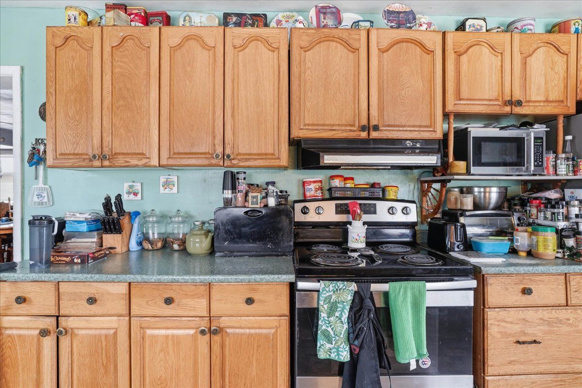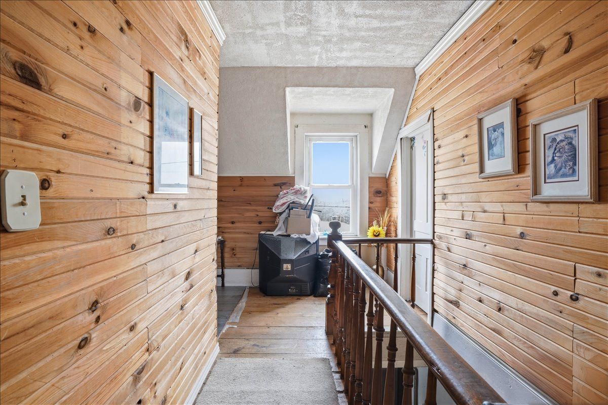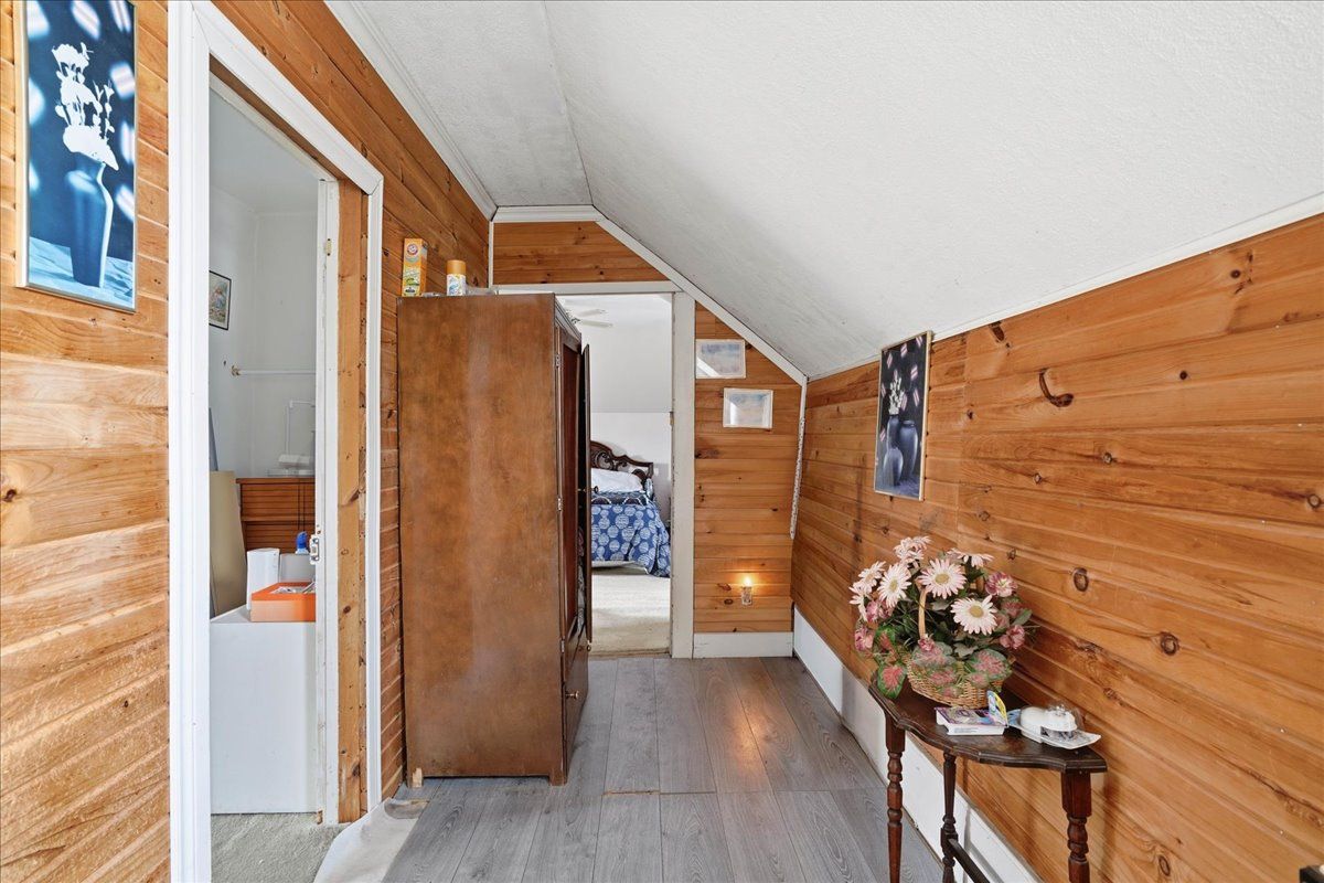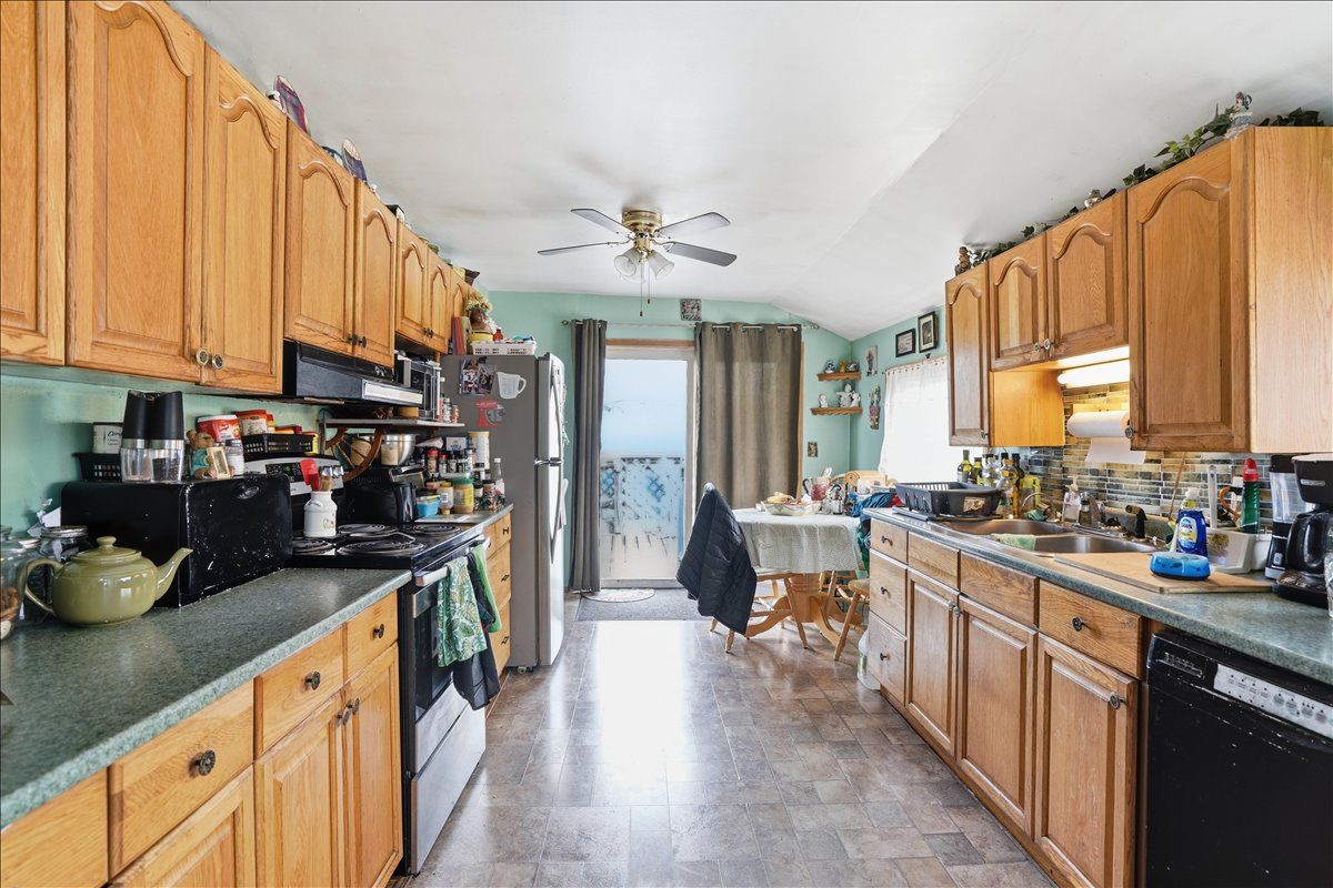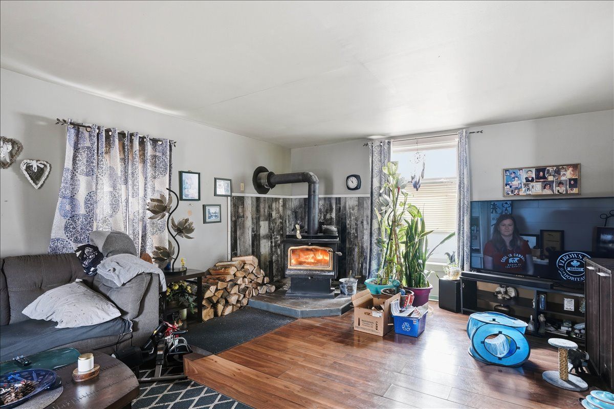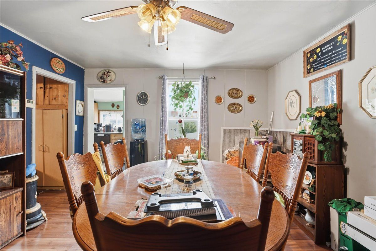 This 3-bed plus den, 2-bath, 1. 5-storey home situated on a corner lot presents a fantastic opportunity for those looking to build equity through a bit of tlc. Featuring a durable asphalt shingle roof and a functional layout, the main level provides a cozy atmosphere with a wood stove in the living room and a pellet stove in the dining area, complemented by a galley kitchen with glass doors leading to a private side deck. A main floor bedroom or den, a convenient laundry room, and a four-piece bathroom with a soaker tub offer the added benefit of single-level living. Upstairs, you will find two additional bedrooms and a two-piece bathroom. With its classic charm, this home is a diamond in the rough just waiting for your personal touch and creative vision to shine.