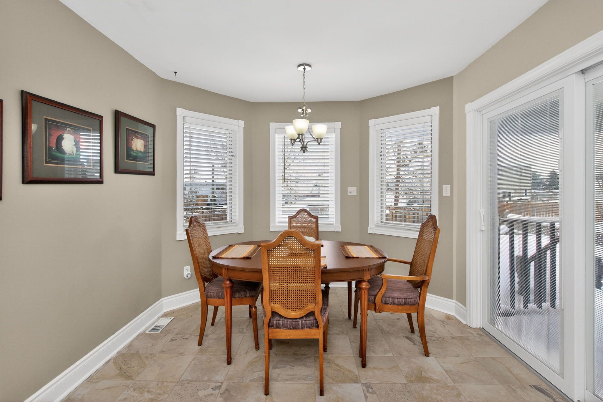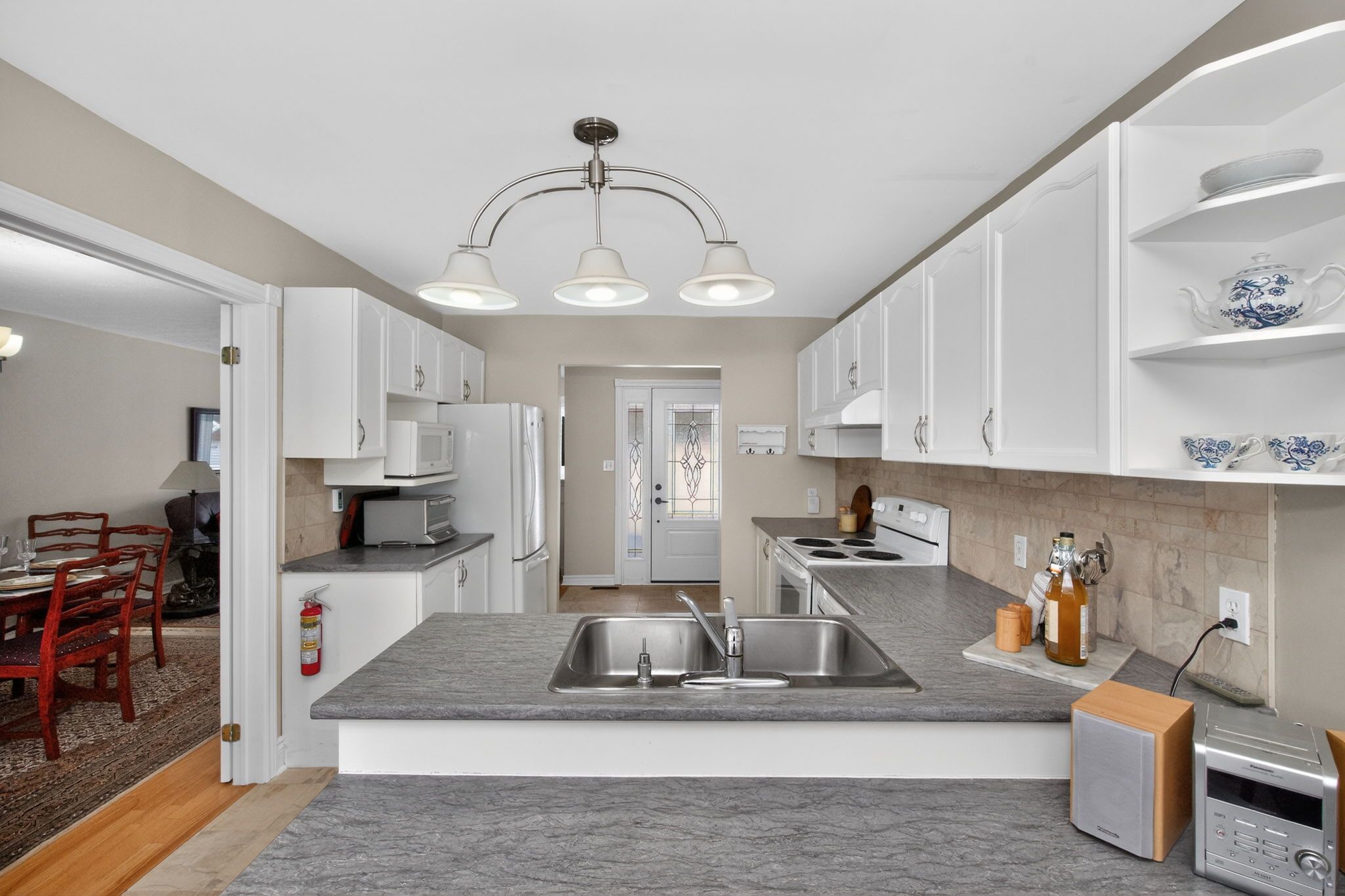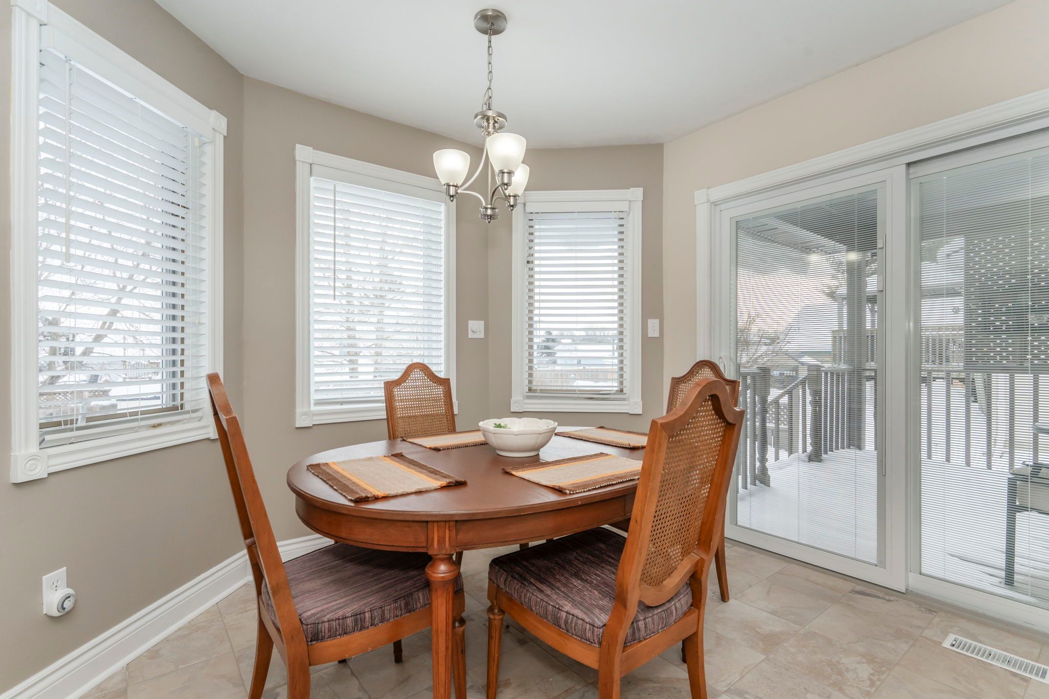 • Covered deck overlooking a private, landscaped backyard for outdoor enjoyment.