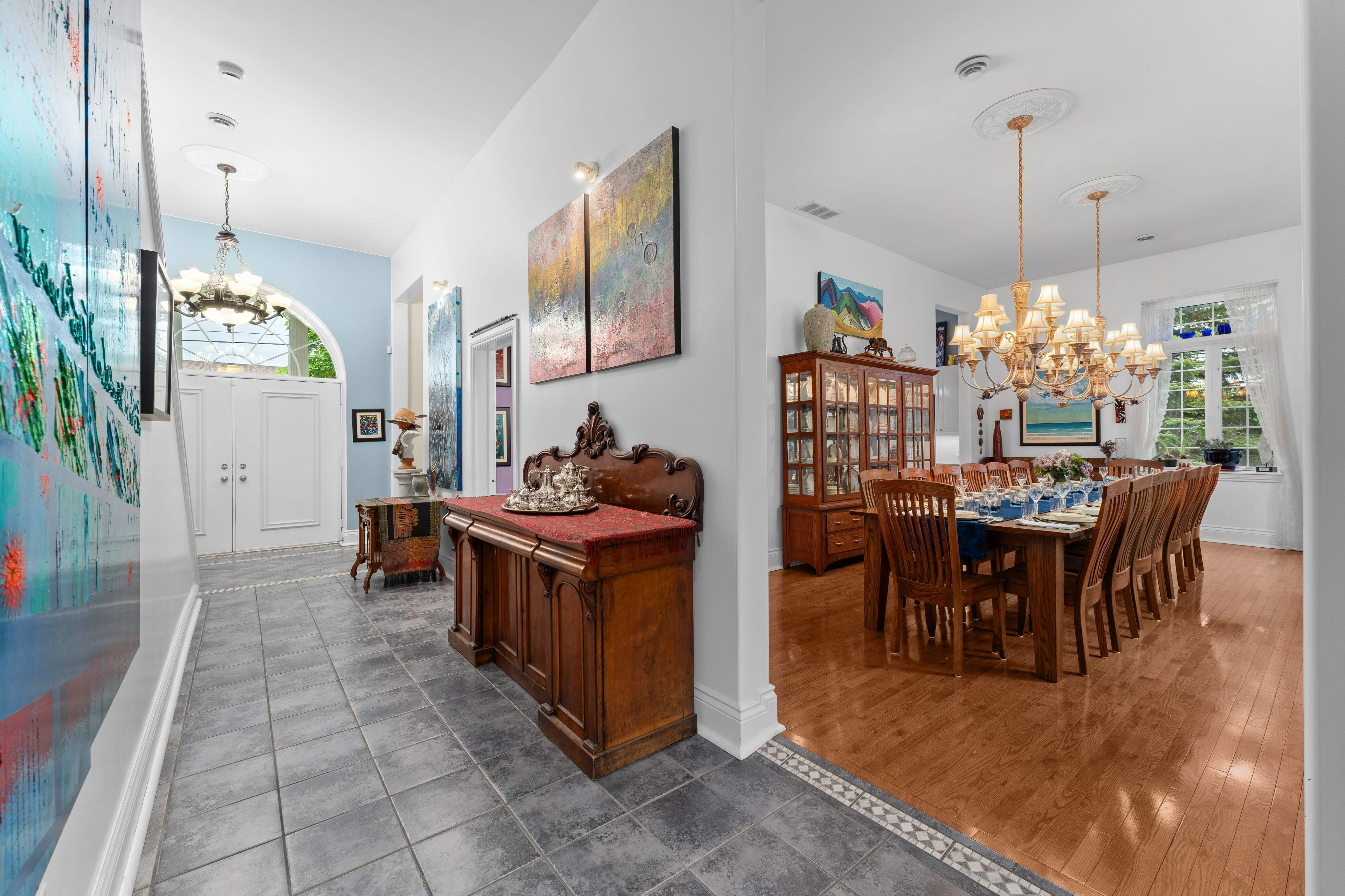 • Majestic home combines old world charm with modern updates throughout.